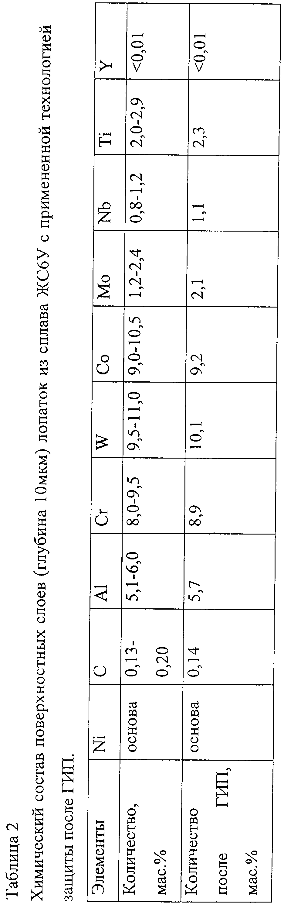 прототипа. Технической задачей изобретения является осуществление эффективной защиты от окисления в процессе ГИП лопатки, в том числе предварительно механически обработанной. Эта задача решается тем, что в предлагаемом способе защиты поверхности лопатки газотурбинного двигателя в процессе горячего изостатического прессования лопатку помещают в контейнер с