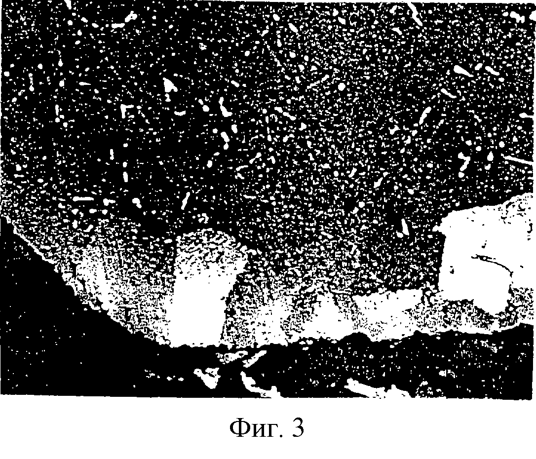 слоя незащищенной лопатки из сплава ЖС6У после проведения ГИП. На фиг.3 показана структура поверхностного слоя лопатки из сплава ЖС6У, защищенной в соответствии со способом, после