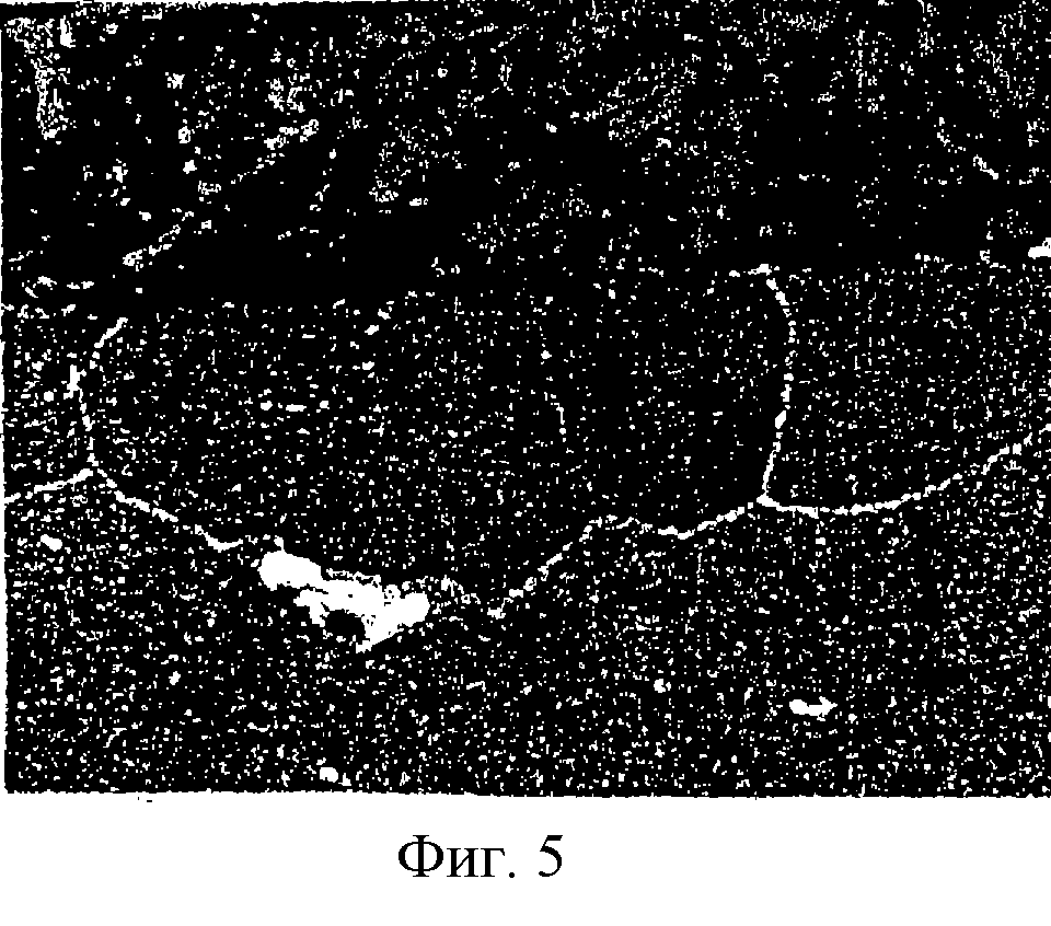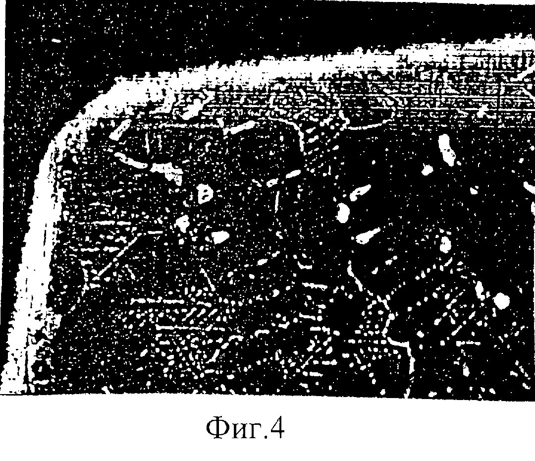 проведения ГИП. На фиг.4 показана структура поверхностного слоя незащищенной лопатки из сплава ЖС32 после проведения ГИП. На фиг.5 показана структура поверхностного слоя