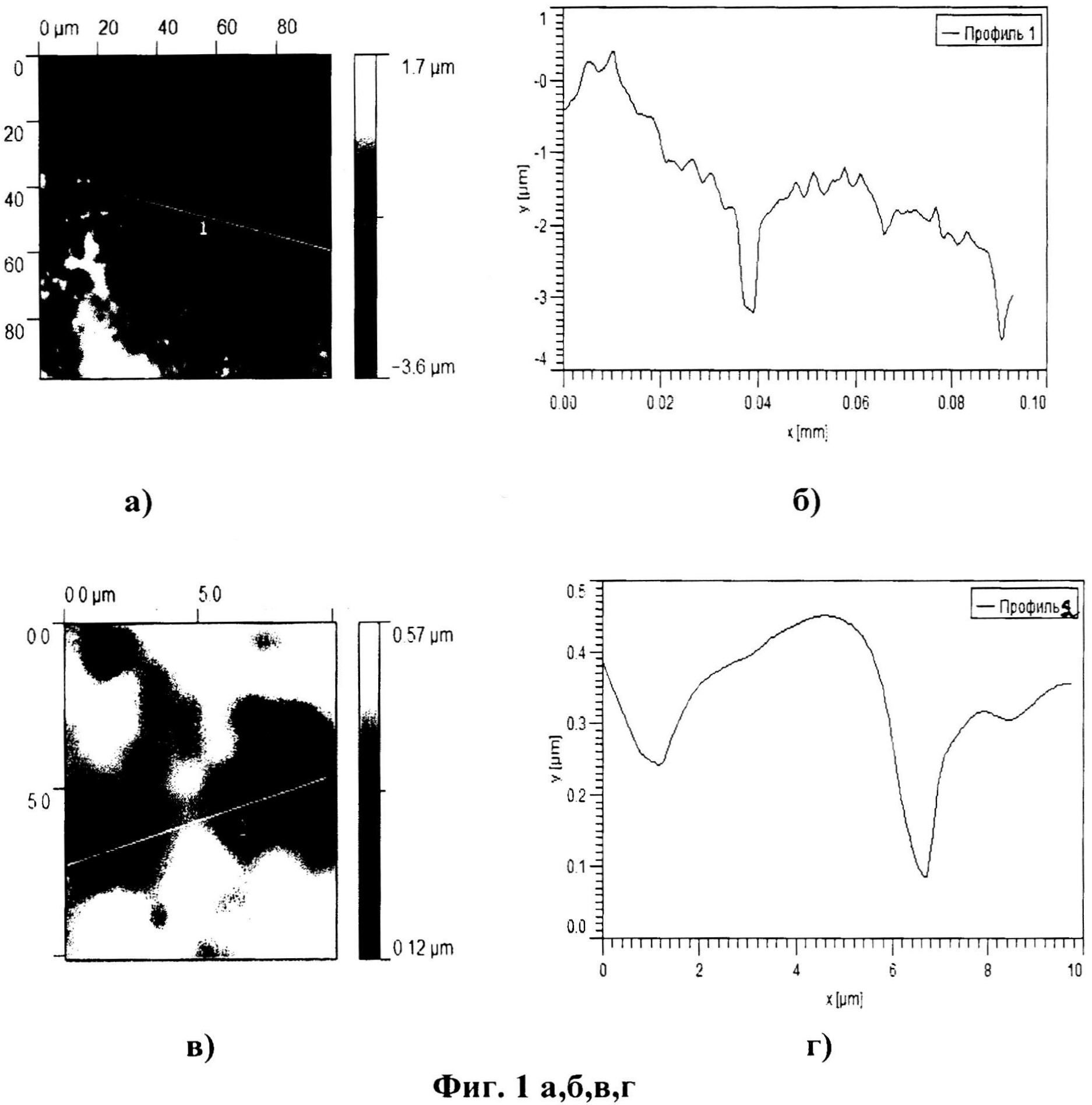 Изобретение относится к различным технологическим процессам и может быть использовано в электронной технике и прежде всего микроэлектронной технике СВЧ. Материал алмаз благодаря уникальным свойствам - высокой твердости, высокой теплопроводности, химической инертности - находит все более широкое применение в технике, в том числе электронной технике СВЧ. Последнее сдерживает не столько стоимость самого материала алмаза, сколько высокая трудоемкость его обработки. Широко известен ряд способов обработки алмаза, предполагающих комплексное, многоэтапное воздействие на алмаз различными физико-химическими методами, например методом автоклавной обработки [1, 2], либо путем облучения потоком электронов и последующего отжига в вакууме [3, 4], либо посредством ионно-лучевой обработки [5]. Данные способы предназначены в основном для улучшения декоративных свойств алмаза, отличаются значительной трудоемкостью, неэкологичностью, требуют существенных материальных и энергетических затрат, сложной аппаратуры. Более того, данные способы за исключением последнего практически непригодны для задач электронной техники СВЧ. Известен способ обработки алмаза, включающий обработку поверхности поликристаллических пластин алмаза трением путем взаимодействия поверхности поликристаллических пластин алмаза с вращающимся контртелом, в котором с целью улучшения чистоты обрабатываемой поверхности, повышения скорости и удешевления, последний изготавливают из материала, не вступающего в реакцию с поверхностью пластин, например керамики или кварца, при этом используют ультрадисперсный порошок меди или оксида меди, нанесенный на поверхность контртела, в качестве вещества, инициирующего обработку алмаза, а обработку ведут на воздухе или в атмосфере с содержанием кислорода не менее 10% при температуре, превышающей 400°C, и с частотой вращения контртела от 1000 до 3000 об/мин [6]. Известен способ полирования поверхности поликристаллического алмаза, полученного методом осаждения из газовой фазы, заключающийся, как и предыдущий способ, в обработке поверхности алмаза трением путем взаимодействия поверхности алмаза с вращающимся контртелом, в котором прежде всего с целью уменьшения шероховатости поверхности обработку осуществляют контртелом, выполненным из упорядочивающегося сплава на основе титана, с частотой вращения контртела от 3000 до 5000 об/мин при нагрузке от 8 до 12 Н [7]. Данные способы обработки алмаза отличаются: во-первых, низкой чистотой обработки, во-вторых, высокой шероховатостью обработанной поверхности алмаза, в-третьих, ограниченными функциональными возможностями. Известен способ обработки поверхности алмаза, включающий взаимное расположение на металлической поверхности из стали обрабатываемой исходной поверхности алмаза с обеспечением контакта упомянутых поверхностей, термическую обработку исходной поверхности алмаза на заданную глубину, обеспечивающую заданную конечную поверхность алмаза, при этом предусматривающую нагрев упомянутых поверхностей до температуры образования эвтектического сплава железо - углерод, выдержку при этой температуре и охлаждение [8] - прототип. Данный способ обработки поверхности алмаза обеспечивает шероховатость поверхности алмаза порядка 2-4 мкм. Однако указанная шероховатость поверхности а