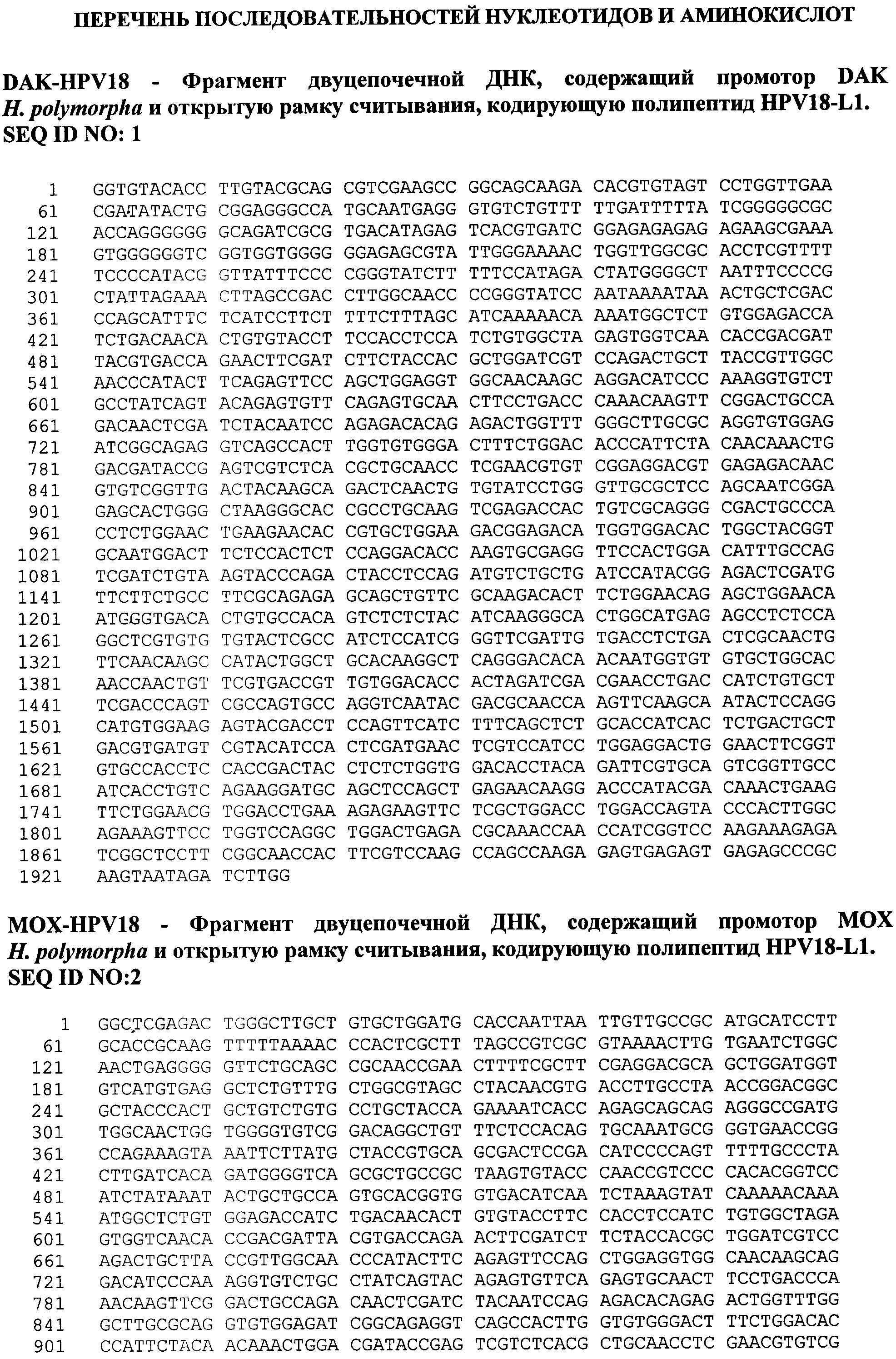 Рекомбинантный штамм дрожжей Hansenula polymorpha KБT-11/pPV-182, содержащий интегрированный в геном фрагмент ДНК с рекомбинантным геном, кодирующим полипептид L1 HPV типа 18, под контролем промотора гена DAK H. polymorpha (SEQ ID NО:1) и фрагмент ДНК с рекомбинантным геном, кодирующим полипептид L1 HPV типа 18, под контролем промотора гена МОХ Н. polymorpha ( SEQ ID NО:2) - продуцент рекомбинантного капсидного белка L1 вируса папилломы человека (НРV) типа 18.
