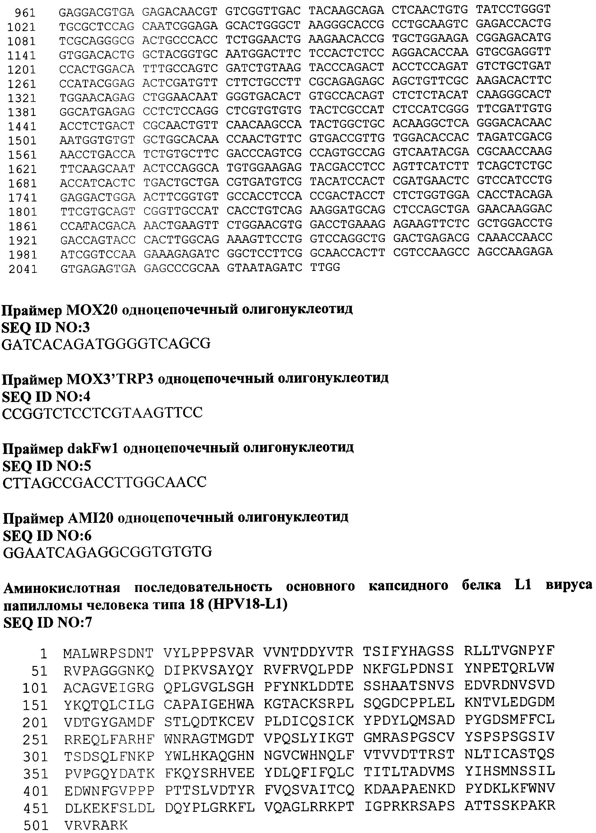 Изобретение относится к области биотехнологии, а именно генной инженерии, и может быть использовано для создания микробиологического дрожжевого продуцента капсидного белка L1 вируса папилломы человека типа 18. Вирус папилломы человека (HPV - Human Papilloma Virus), поражая эпителиальные клетки, вызывает различные заболевания у человека. В зависимости от типа инфицирующего вируса, который на основании данных о гомологии последовательности ДНК классифицирован более чем в 70 типов, папилломавирусная инфекция проявляется в виде образования доброкачественных бородавок, незлокачественных кондилом или папиллом на слизистой половых органов или дыхательных путей. Вирус папилломы человека типа 16 и 18 вызывает эпителиальную дисплазию слизистой половых органов, именно эти типы вируса папилломы ассоциированы с большей частью преинвазивных и инвазивных карцином аногенитальной сферы (рак шейки матки, влагалища, вульвы и анального канала), из которых рак шейки матки - один из самых распространенных и опасных видов новообразований у женщин. По данным ВОЗ ежегодно раком шейки матки заболевают около 500 тысяч женщин во всем мире, причем более половины этих случаев заканчиваются летальным исходом. Клинические проявления рака шейки матки не обнаруживаются длительное время, в то же время ранняя диагностика папилломавирусной инфекции довольно сложна. Именно поэтому в борьбе с распространением такого тяжелого заболевания предпочтение отдается профилактике папилломавирусной инфекции, в частности, путем индуцирования иммунного ответа у человека при вакцинации. Вирус папилломы относится к семейству паповирусов (Papoviridae), имеет диаметр 40-50 нм. Капсид вируса образован из 72 белковых капсомеров, состоящих из основного белка L1 и минорного белка L2. Геном вируса представлен в виде кольцевой двуцепочечной ДНК, которая содержит 8 ранних генов (Е1-Е7) и два поздних гена, кодирующих белки капсида L1 и L2. Главный белок L1 (55-60 кДа) способен сам собираться в вирусоподобные частицы (VLP - virus-like particle), сходные по строению с вирионами, но не содержащие вирусную ДНК. Белок L1 обладает высокой иммуногенностью и индуцирует образование антител, нейтрализующих инфекционный вирус. В настоящее время рекомбинантные белки LI HPV представляют собой перспективные иммуногенные компоненты для создания профилактических вакцин, направленных против опасных типов папилломавируса. Затруднения, препятствующие созданию эффективных папилломавирусных вакцин, прежде всего, связаны с разработкой оптимальных экспрессионных систем для продукции рекомбинантных белков HPV, обладающих иммуногенными свойствами природных белков HPV L1. Известно получение белков L1 и L2 HPV типа 16 путем культивирования клеток CV-1 млекопитающих, инфицированных рекомбинантным вектором вируса коровьей оспы [Zhou J et al., Virology v.185, p.251-257, 1991]. Известна экспрессия папилломавирусного белка L1, способного спонтанно собираться в вирусоподобные частицы и обладающего иммуногенностью, в эукариотической системе на основе культивируемых клеток насекомых (бакуловирусная система) [Kimbauer R. et al., Proc. Natl. Acad. Sci USA, v.89, р.12180-12184, 1992]. В научной и патентной литературе представлены примеры использования для получения рекомбинантных белков HPV системы экспрессии на основе дрожжей Saccharomyces cerevisiae, которым отдается предпочтение благодаря международно пр