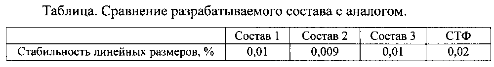 Изобретение относится к области получения стеклотекстолитов фольгированных, применяемых для изготовления печатных плат (ПП). Стеклотекстолит облицован с одной или двух сторон металлической фольгой, изготавливается прессованием фольги и стеклоткани. Стеклоткань пропитана эпоксидной композицией. Композиция содержит эпоксидную диановую смолу, 4,4′-диаминодифенилсульфон, ацетилацетонат никеля, кремнеорганическое соединение титана и наполнитель субмикронного размера - порошок сферических частиц сополимера бутадиена, нитрила акриловой кислоты, стирола, метакриловой кислоты. Изобретение позволяет повысить стабильность линейных размеров стеклотекстолита до 0,01%. 1 табл.