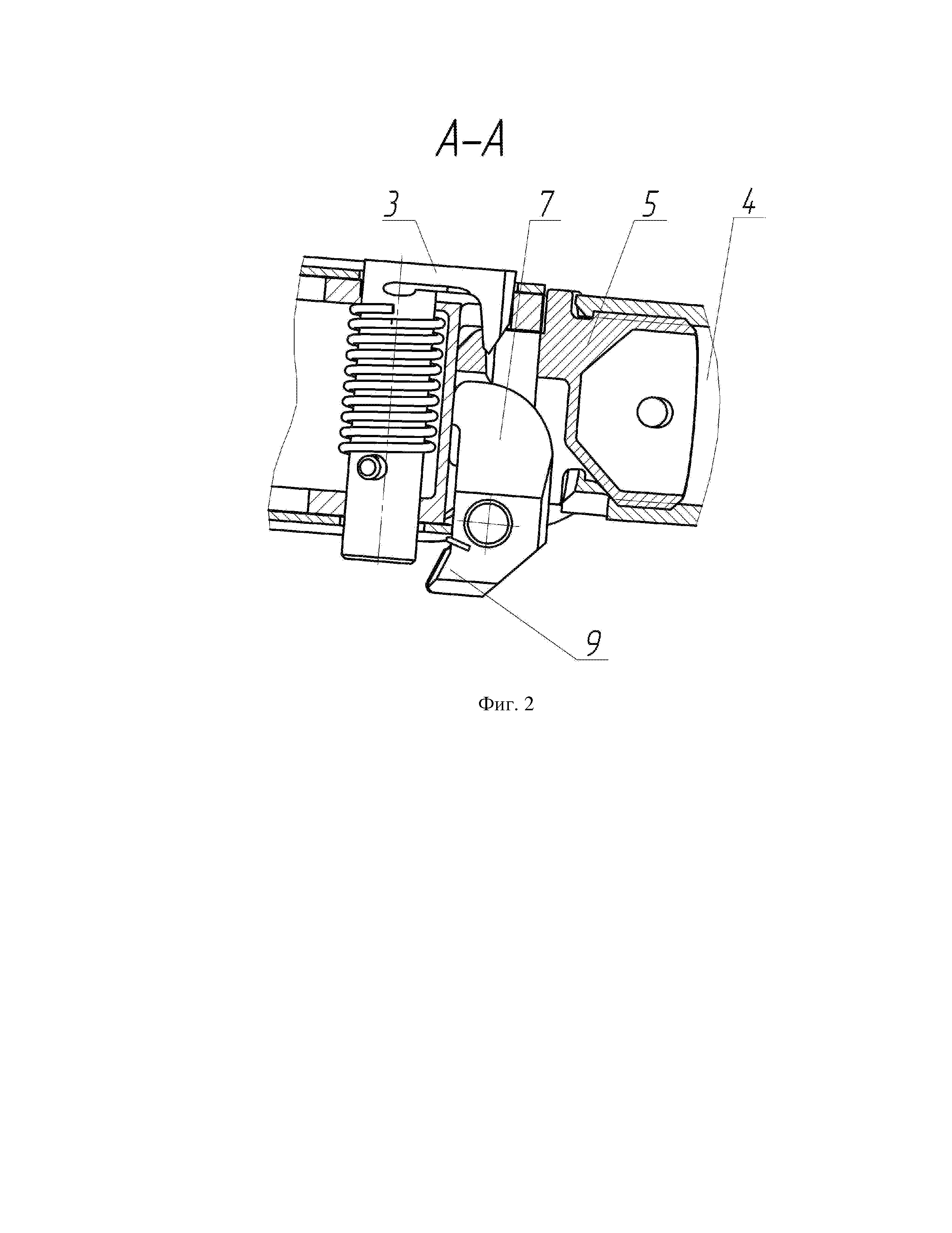 Изобретение относится к стрелковому оружию и может быть использовано в автоматическом стрелковом оружии, устройствах, конструктивно сходных со стрелковым оружием. Известен 5,45 мм ручной пулемет Калашникова РПК-74М (см. https://topwar.ru/76782-ruchnoy-pulemet-rpk-74-i-ego-modifikacii.html), содержащий ствольную коробку со стволом, шарнирно установленный приклад с затыльником и зацепом приклада, подпружиненный фиксатор приклада, подпружиненную защелку. Недостатком указанного аналога является необходимость применения принадлежности для перевода приклада в походное (сложенное) положение. Известен 5,45 мм автомат Калашникова АК74М (см. М. Попенкер «Штурмовые винтовки мира». М.: ACT «Полигон», 2004 г.), выбранный в качестве ближайшего аналога, содержащий ствольную коробку со стволом, шарнирно установленный приклад постоянной длины, подпружиненный фиксатор приклада, подпружиненную защелку. Фиксатор приклада удерживает приклад в боевом положении, а расположенная в передней части ствольной коробки защелка удерживает приклад в походном (сложенном) положении. Недостатком данной конструкции узла фиксации приклада в походном (сложенном) положении является ограничение функциональных возможностей, так как в случае установки регулируемого по длине (телескопического) приклада фиксация возможна только в одном из нескольких положений по длине, что приводит к нарушению регулировки приклада при переводе его в походное положение. Технической задачей заявляемого изобретения является повышение эксплуатационных характеристик оружия, расширение функциональных возможностей. Технический результат заключается в обеспечении фиксации в походном положении любого приклада, в том числе и регулируемого по длине (телескопического) приклада при любой длине приклада. Поставленная задача достигается тем, что в стрелковом оружии со складным прикладом, содержащем ствольную коробку со стволом и с затыльником, подпружиненный фиксатор приклада, шарнирно установленный на оси приклад с наконечником, в котором фиксация складного приклада осуществляется подпружиненным зацепом приклада, расположенным на оси вращения приклада. Зацеп приклада выполнен в виде двуплечего рычага с возможностью поступательного движения по оси, одно плечо зацепа взаимодействует с наконечником приклада, а второе плечо зацепа взаимодействует с затыльником. Зацеп приклада имеет отверстие для его установки на изделии и цилиндрический выступ для установки пружины зацепа. Зацеп приклада взаимодействует с выступом на наконечнике приклада. Плечо зацепа приклада, взаимодействующее с наконечником, выполнено с уклоном для облегчения захода зацепа приклада на выступ наконечника, оно взаимодействует с горизонтальной площадкой наконечника, когда приклад находится в боевом положении и при повороте приклада до момента поднятия зацепа приклада пружиной зацепа. Наконечник предназначен для присоединения приклада к оружию и имеет выступы с отверстием для крепления к затыльнику ствольной коробки и выступ с горизонтальной и вертикальной площадками для взаимодействия с зацепом приклада. Горизонтальная площадка удерживает зацеп приклада в нерабочем положении, когда приклад находится в боевом положении и при повороте приклада до момента поднятия зацепа приклада пружиной зацепа. Вертикальная площадка ограничив