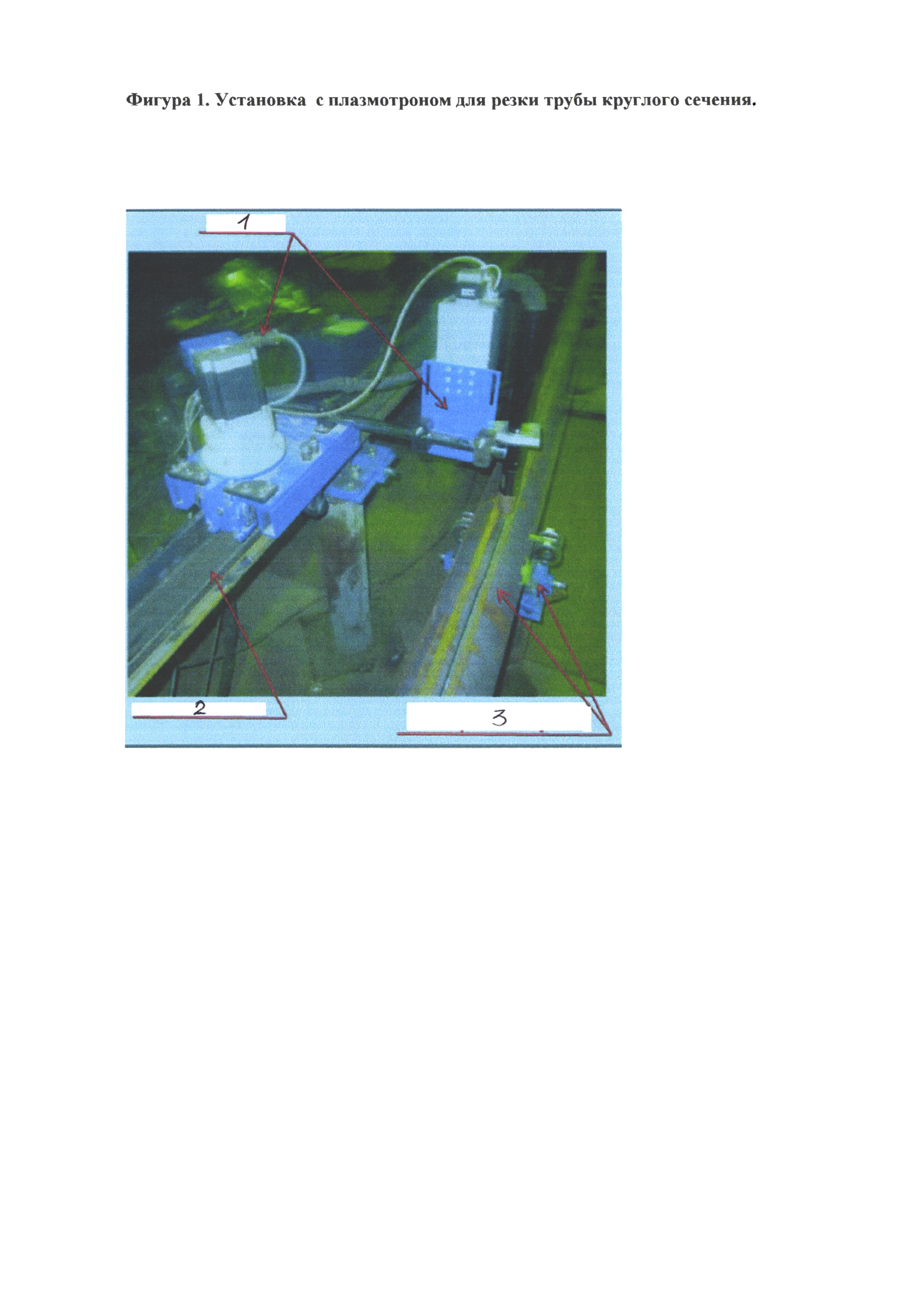 Изобретение относится к способу разрезания плазморезом стальной круглой трубы длиной до 12 м вдоль продольной оси для получения продольного сегмента трубы, обеспечивающей геометрическую неизменяемость и отсутствие деформации полученных после окончания процесса резки сегментов трубы. Способ заключается в том, что трубу укладывают на роликовые вращатели, имеющие систему регулировки по высоте для разных диаметров труб, а торец трубы закрепляют в трехкулачковом патроне. Затем производят разрезание трубы на продольные сегменты плазморезом воздушного охлаждения на токах от 90 до 120А. В плазморезе в качестве плазмообразующего газа используют воздух с давлением от 0,5 до 0,6 МПа. Плазморез состоит из двух частей, жестко фиксированных друг с другом по горизонтали. Одна из частей плазмореза установлена на горизонтальной направляющей, расположенной параллельно стальной круглой трубе, что позволяет двигать вторую часть плазмореза, разрезающую стальную круглую трубу, вдоль продольной оси стальной круглой трубы на фиксированном расстоянии, обеспечивая ровный продольный рез трубы по всей длине. 4 н.п. ф-лы, 5 ил.