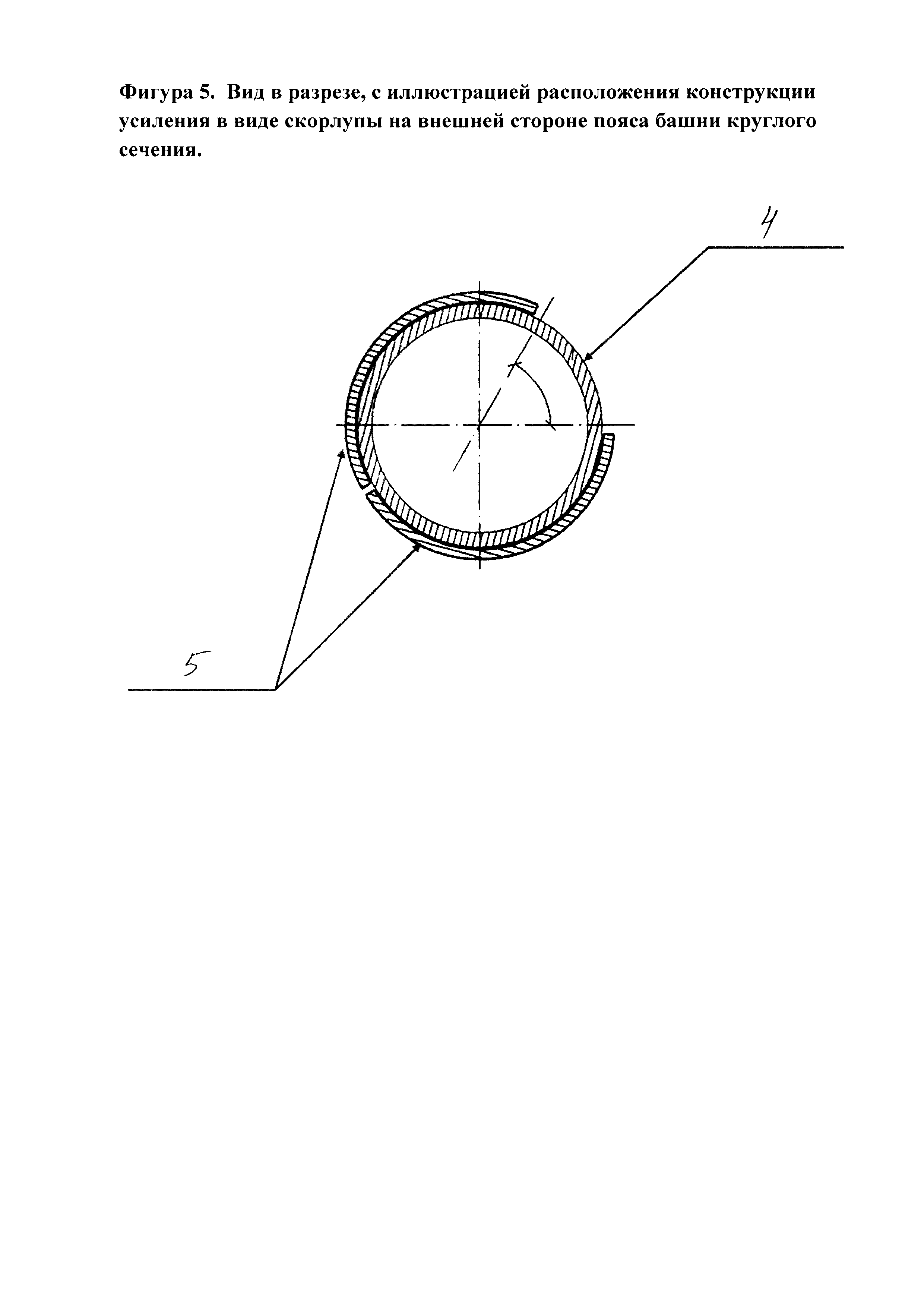 Способ разрезания плазморезом стальной круглой трубы вдоль продольной оси, конструкция усиления башни круглого сечения и элемент усиления. Изобретение относится к области строительства, а именно к капитальному ремонту и реконструкции стальных строительных конструкций зданий и сооружений трубчатого сечения. Уровень техники Аналогами изобретения являются способы разрезания стальных труб вдоль продольной оси для изготовления прорезей (например, под установку на трубах приборов и креплений). При выполнении прорезей (длиной до 1000 мм) могут быть применены: фреза, шлифовальная машинка с отрезным диском, газопламенная резка, плазменная резка и т.п.Технология резки труб вдоль продольной оси на части длиной до 12 м не применялась и в литературе не описана. Например, из уровня техники ((http://umdplus.ru/informacziya/plazmennaya-rezka-trub) известен нашедший широкое потребление способ плазменной резки труб квадратного сечения с максимальной длиной до 3,3 метра, которые в процессе резки не подвержены деформации настолько, насколько этому подвержены трубы круглого сечения. Из уровня техники известен способ резки труб круглого сечения лазером. Однако в этом случае потребитель сталкивается с рядом ограничений, а именно: 1. Максимальная длина обрабатываемых труб должна составлять 6000 мм (6 метров). 2. Максимальная длина готового изделия должна быть не более 3000 мм (3 метров). 3. Максимальная длина готового изделия при увеличенном варианте исполнения может быть до 6000 мм (6 метров). Сущность изобретения. Усиление несущих металлоконструкций трубчатого сечения с использованием в качестве элементов усиления частей стальных труб, полученных при их разрезании вдоль продольной оси на сегменты сталкивается с проблемой изготовления элементов усиления. Основная задача состояла в определении технологии разрезания стальных труб вдоль продольной оси, которая обеспечивает геометрическую неизменяемость частей трубы после окончания процесса резки. Техническим результатом является отсутствие деформации и геометрической неизменяемости полученного в процессе изготовления сегмента трубы длиной до 12 метров, полученного при разрезании плазморезом стальной круглой трубы вдоль продольной оси. Также техническим результатом является то, использование полученных таким образом сегментов трубы как элементов усиления типа скорлупы для формирования составного сечения позволяет увеличить площадь сечения стержня укрепляемой конструкции, несущая способность которой в результате этого увеличивается не менее чем на 30%. Основным признаком изобретения, характеризующим способ решения проблемы разрезания стальных труб вдоль продольной оси (длиной до 12 м), является подбор технологических параметров выполнения плазменной резки, которые обеспечивают геометрическую неизменяемость частей трубы после процесса резки. Подбор технологических параметров (ток, скорость резания, длина реза) выполняется индивидуально для каждого диаметра и толщин стальных труб. Сущность изобретения состоит в разработке технологии выполнения резов вдоль продольной оси, обеспечивающей геометрическую неизменяемость частей трубы после процесса резки. Размеры прорезей определяются на опытном образце: подбор предельной длины продольных прорезей должен обеспечить изменение диаметра трубы в пределах д