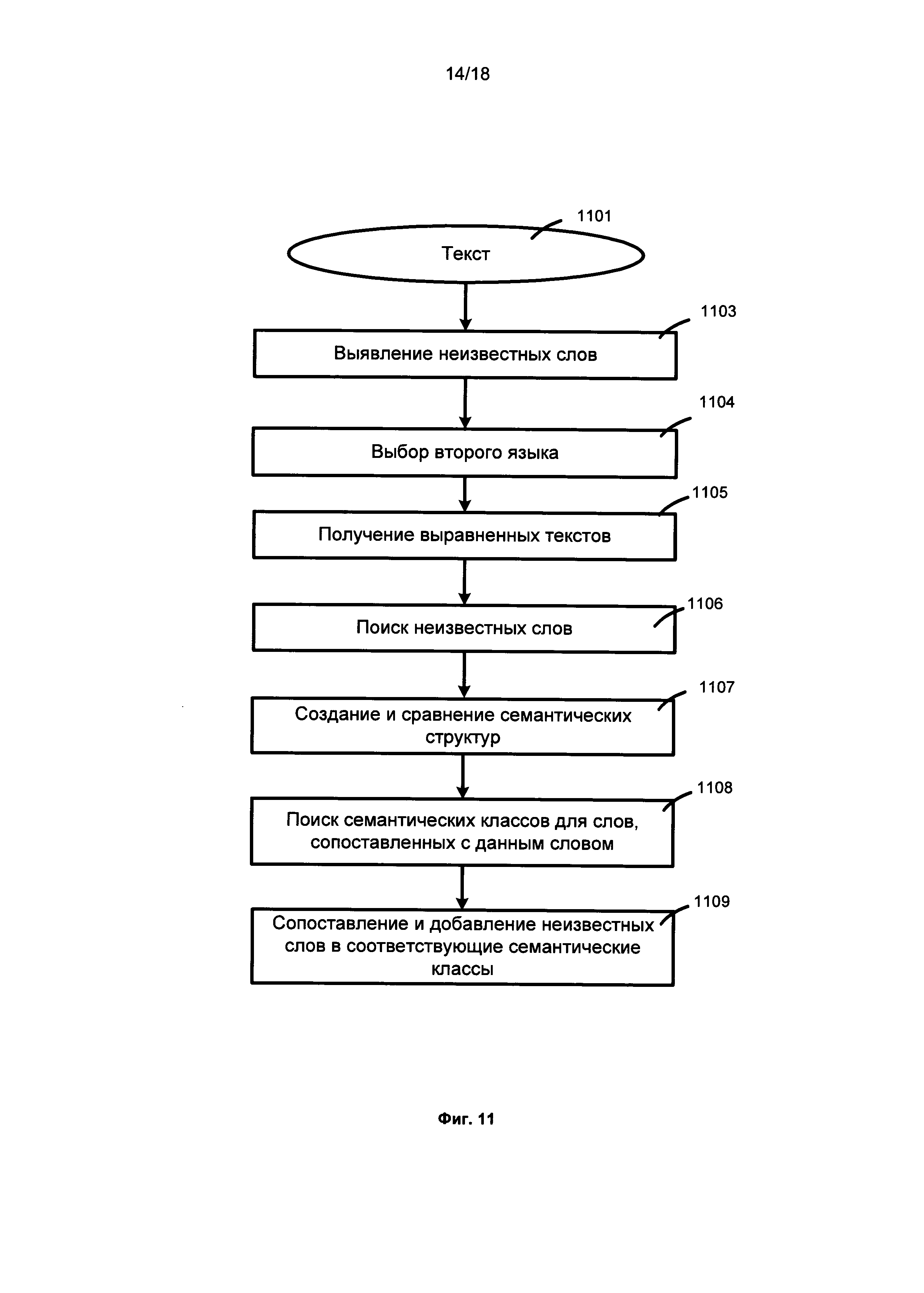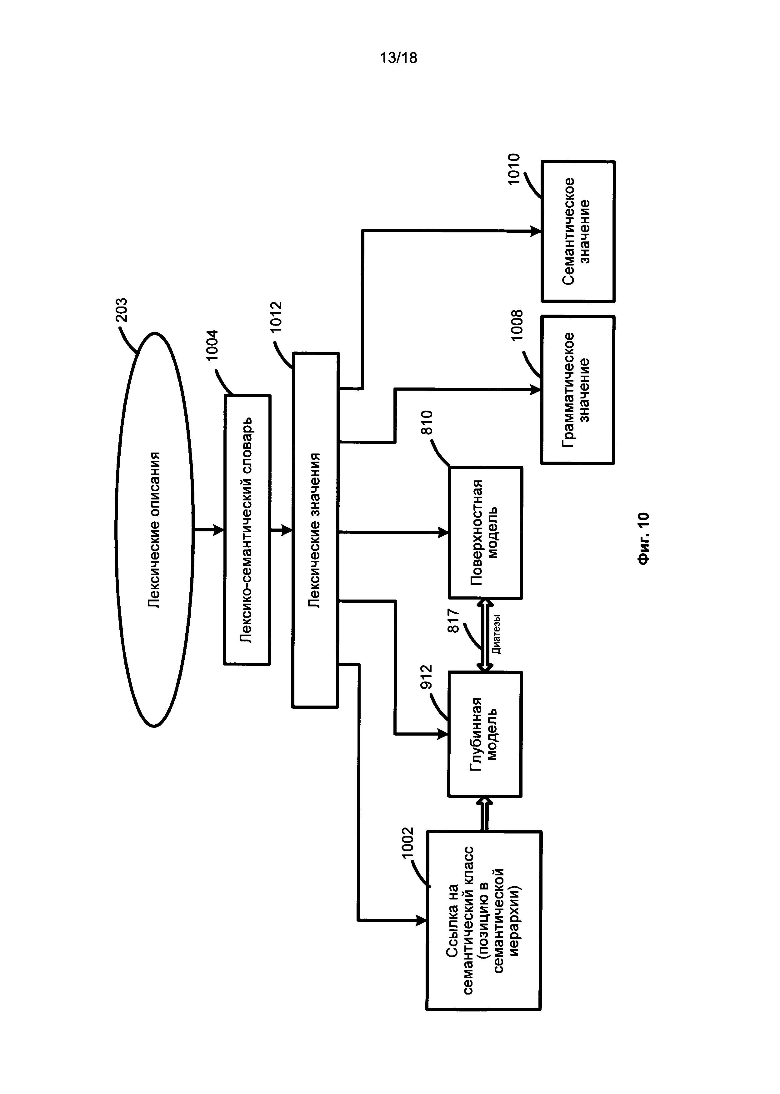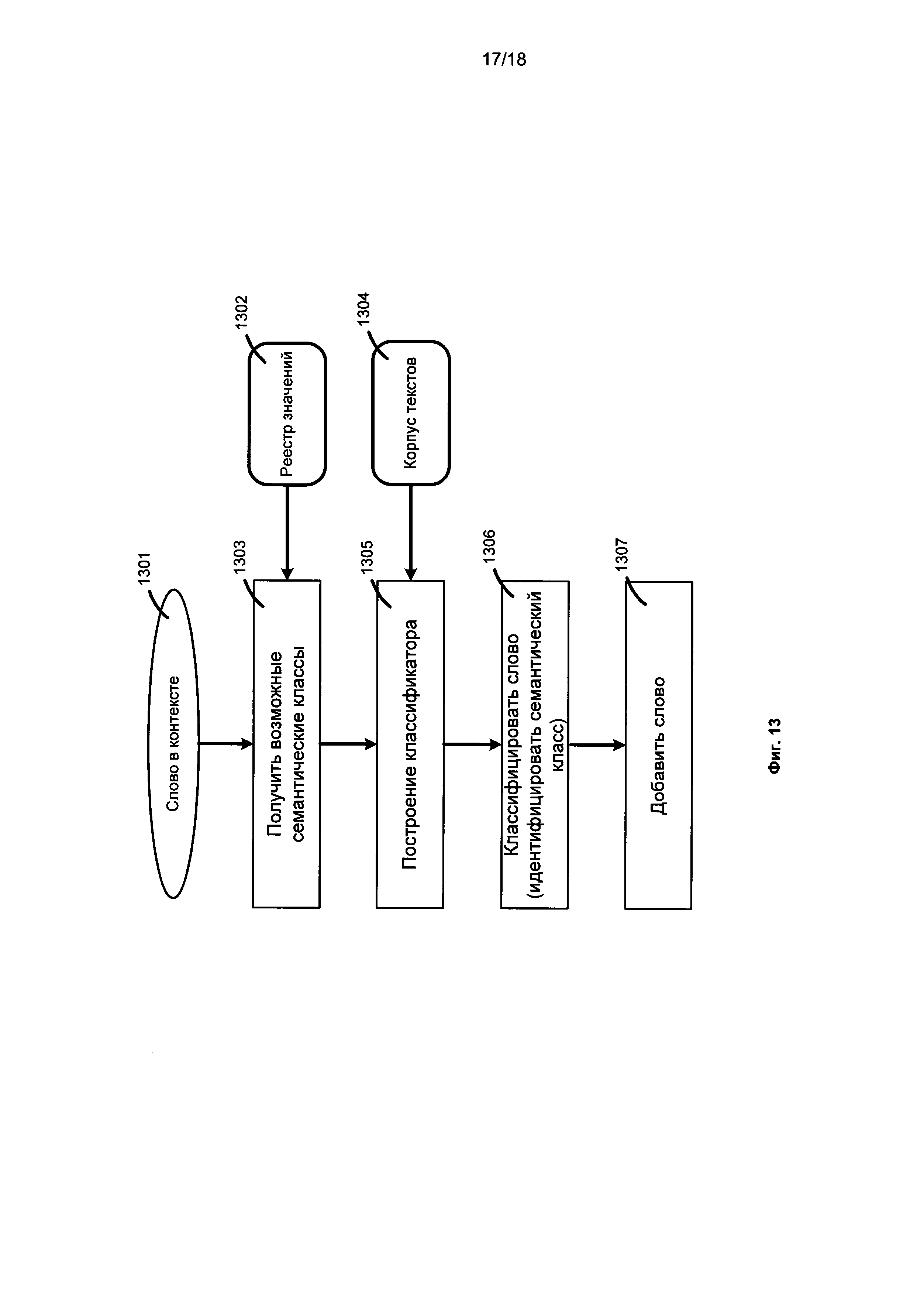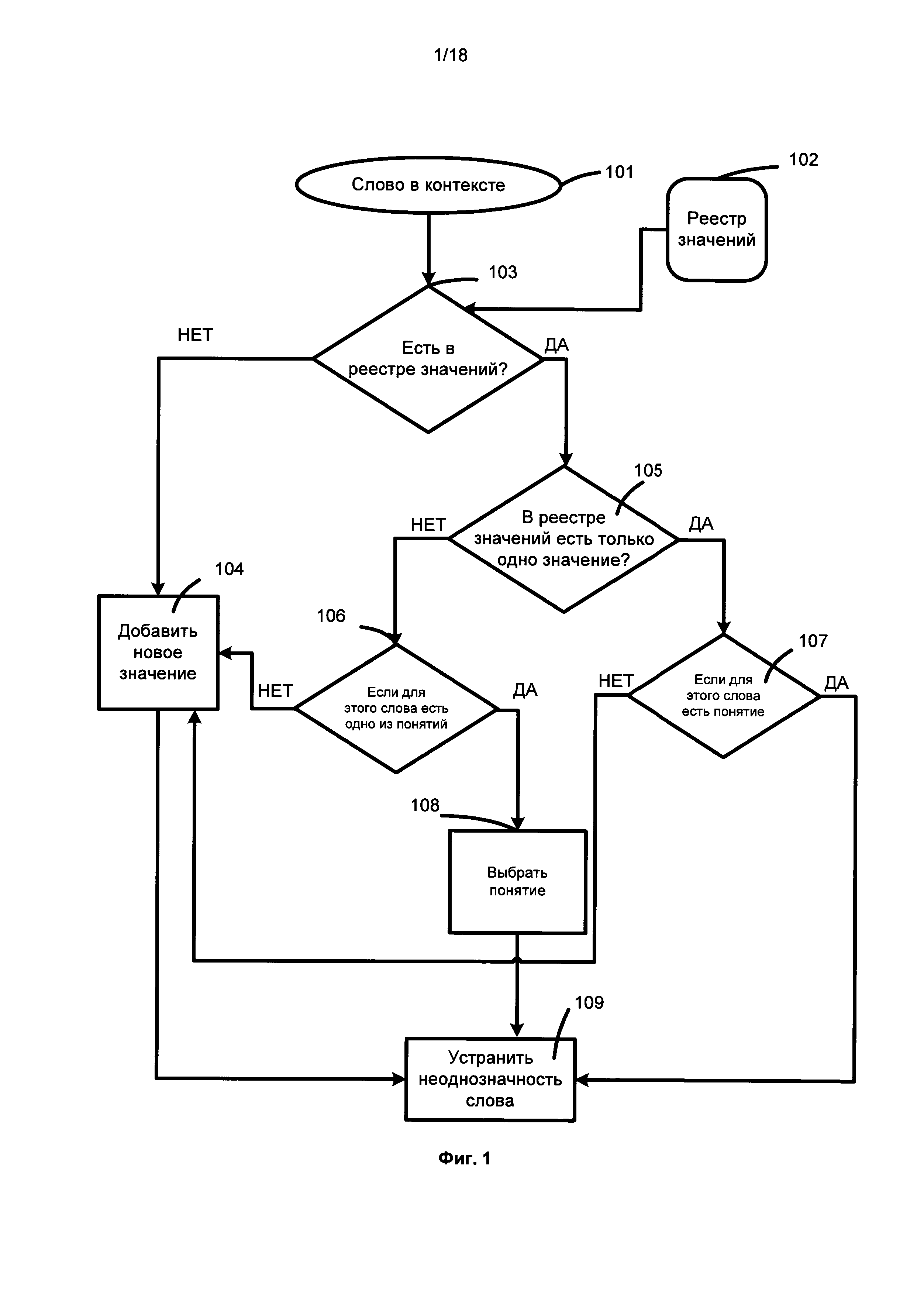 1. Осуществляемый на компьютере способ разрешения семантической неоднозначности в задачах автоматической обработки естественного языка, содержащий: 2. Способ по п. 1, дополнительно включающий предварительное выполнение статистического анализа слов и их контекстов в корпусах текстов. 3. Способ по п. 1, в котором выявление соответствующего понятия для слова состоит в сопоставлении контекста слова с контекстами слов, относящихся к этому понятию, в корпусах текстов. 4. Способ по п. 1, в котором реестр значений дополнительно содержит семантическую иерархию с отношениями «родительский объект - дочерний объект» между семантическими классами, и причем каждый семантический класс содержит глубинную модель, определяющую семантическое поведение объектов семантического класса и отношение между родительским семантическим классом и дочерним семантическим классом. 5. Способ по п. 4, в котором дочерний семантический класс наследует и уточняет глубинную модель своего непосредственного родительского семантического класса. 6. Способ по п. 1, в котором добавление в реестр значений нового понятия, соответствующего слову в реестре значений, включает статистический анализ каждого уровня семантической иерархии, связанного с реестром значений, начиная от корня иерархии, для определения вероятности наличия понятия для этого слова, и причем новое понятие содержит наиболее вероятное понятие. 7. Способ по п. 6, в котором вероятность наличия понятия для слова основана на анализе корпусов текстов. 8. Система разрешения семантической неоднозначности в задачах автоматической обработки естественного языка, содержащая: 9. Система по п. 8, дополнительно включающая предварительное выполнение статистического анализа слов и их контекстов в корпусах текстов. 10. Система по п. 8, в которой выявление соответствующего понятия для слова состоит в сопоставлении контекста слова с контекстами слов, относящихся к этому понятию, в корпусах текстов. 11. Система по п. 8, в которой реестр значений дополнительно содержит семантическую иерархию с отношениями «родительский объект - дочерний объект» между семантическими классами, и причем каждый семантический класс содержит глубинную модель, определяющую семантическое поведение объектов семантического класса и отношение между родительским семантическим классом и дочерним семантическим классом. 12. Система по п. 11, в которой дочерний семантический класс наследует и уточняет глубинную модель своего непосредственного родительского семантического класса. 13. Система по п. 8, в которой добавление в реестр значений нового понятия, соответствующего слову в реестре значений, включает статистический анализ каждого уровня семантической иерархии, связанного с реестром значений, начиная от корня иерархии, для определения вероятности наличия понятия для этого слова, и причем новое понятие содержит наиболее вероятное понятие. 14. Система по п. 13, в которой вероятность наличия понятия для слова основана на анализе корпусов текстов. 15. Машиночитаемый носитель данных для разрешения семантической неоднозначности в задачах автоматической обработки естественного языка, имеющий хранящиеся на нем машинные инструкции, причем процессор исполняет инструкции для выполнения операций, содержащих: 16. Машиночитаемый носитель данных по п. 15, 