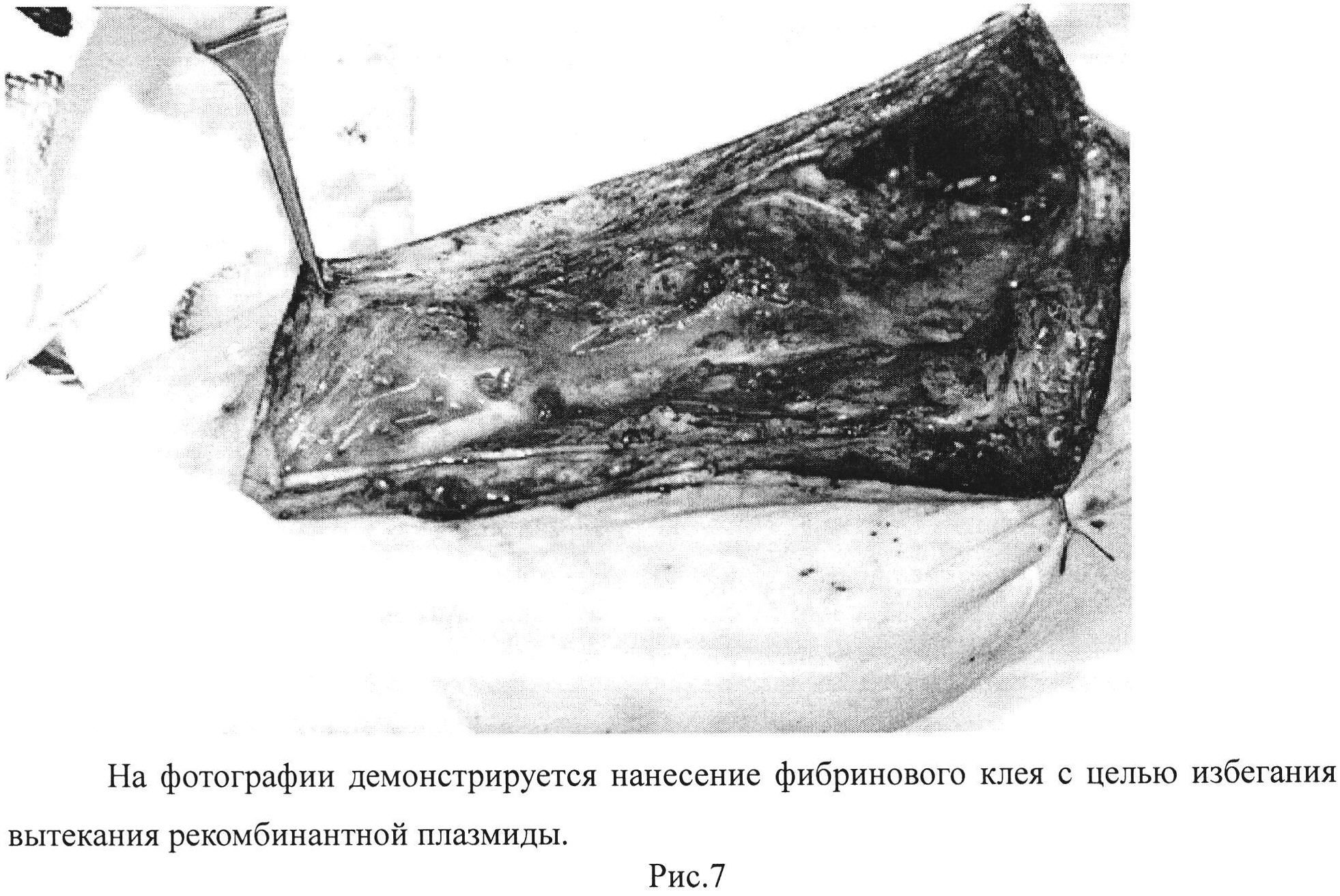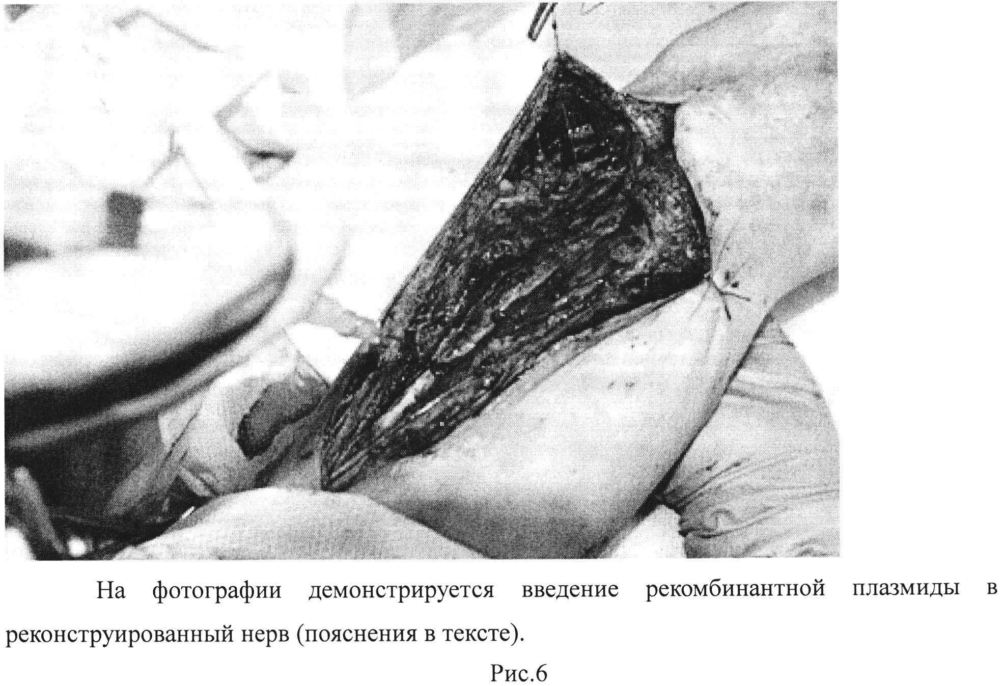 Изобретение относится к генной инженерии, а также к медицине, а именно к нейрохирургии и травматологии. Описана геннотерапевтическая конструкция, кодирующая эндотелиальный сосудистый фактор роста (VEGF) и фактор роста фибробластов (FGF-2). В основе геннотерапевтической конструкции, кодирующей оба фактора, используется кодон-оптимизированная рекомбинантная плазмида. Введение геннотерапевтической конструкции может осуществляться как непосредственно в поврежденный нерв, так и в параневральные ткани, как интраоперационно, так и в послеоперационном периоде. Изобретение может быть использовано для стимуляции регенерации нервов. Изобретение значительно улучшает результаты реконструктивного лечения повреждений периферических нервов. 3 н.п. ф-лы, 15 ил.