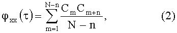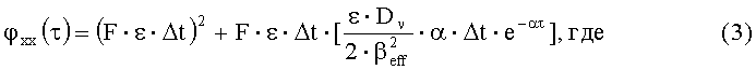 Изобретение относится к физике ядерных реакторов и может быть использовано для измерения F - нейтронной мощности реактора в абсолютных единицах. Задачи измерений F реактора требуется решать при проектировании защиты от излучения, при определении радиационной стойкости корпусов реакторов ВВЭР. Эта задача решается при пусках космических ядерных энергетических установок (КЯЭУ). Пуск КЯЭУ проводят строго по времени с учетом результатов измерений F. Медленный или излишне быстрый выход КЯЭУ на номинальную мощность может быть губительным для нее. Задача в этом случае осложняется тем, что F реактора КЯЭУ должна измеряться в абсолютных единицах на всех этапах пуска КЯЭУ. Принятые в тексте обозначения F - нейтронная мощность реактора в абсолютных единицах [деления/секунда или ватт] V - значение мощности реактора в относительных единицах [отсчеты/секунда или ампер] γ - число, коэффициент пропорциональности [ватт/ампер или деления/(секунда - ампер)] ε - эффективность детектора нейтронов [отсчет/деления]. t - время [секунда] τ - время [секунда] С - число отсчетов детектора [отсчет] φхх(τ) - автокорреляционная функция чисел отсчетов детектора [отсчет2] fxx(t) - автокорреляционная функция [ампер2] I(t) - ток [ампер] i(t) - флуктуирующие значения тока ионизационной камеры во времени [ампер] Y - параметр, определяемый в процессе обработки экспериментальных данных [ампер/деления или ампер/(ватт·секунда)] α - параметр, [1/секунда] Dν=0.795 - табличная безразмерная величина βeff - безразмерная величина Δt - интервал дискретности измерений [секунда] Задача измерений F решается в два этапа. На первом, относительно простом этапе, выбирается способ измерений мощности реактора в относительных единицах (скорость счета детекторов нейтронов, ток ионизационной камеры и т.п.). Важно, чтобы результат измерений мощности реактора в относительных единицах был пропорционален мощности реактора в абсолютных единицах. Этот коэффициент пропорциональности должен оставаться неизменным в заданном диапазоне изменений F, т.е. в этом диапазоне должно выполняться равенство: F - значение нейтронной мощности реактора в абсолютных единицах (в ваттах или в делениях в секунду) V - значение мощности реактора в относительных единицах (скорость счета детектора нейтронов, ток, протекающий через ионизационную камеру) γ - коэффициент пропорциональности. На втором этапе измеряется одновременно мощность реактора в абсолютных и относительных единицах. По результатам этих измерений вычисляется значение γ. Далее для определения F в диапазоне пропорциональности достаточно измерить мощность в относительных единицах и умножить этот результат измерений на γ. Номинальная мощность реакторов обычно на много порядков больше уровня мощности, который может быть измерен экспериментально. В практической работе более всего ценятся результаты вычислений γ на уровнях мощности реактора, сравнимых с номинальным уровнем. Предлагается измерять F статистическими методами. Известно несколько разновидностей статистических методов измерений F в критическом состоянии реактора. Различаются эти методы в деталях, все они основаны на изучении флуктуации числа нейтронов в реакторе. Характерным свойством флуктуации является уменьшение их амплитуд на уровнях средних значений чисел нейтронов по мере увеличения нейтронной 