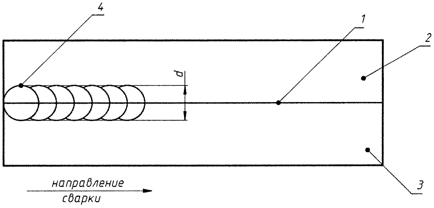 Изобретение относится к технологиям электронно-лучевой сварки и может быть использовано для сварки плоских стыков деталей из разнородных металлов, например приборных панелей, элементов крыльчаток, платформ нагревательных элементов, используемых в различных областях машиностроения, автомобильной промышленности, при изготовлении изделий ракетно-космической техники. Известен способ импульсной электронно-лучевой сварки разнородных материалов, при котором на свариваемом стыке с определенным шагом формируют сварные точки, промежутки между которыми последовательно с тем же шагом заполняют частично перекрывающими одна другую сварными точками, причем при формировании сварных точек, в конце каждого импульса электронный луч отклоняют перпендикулярно направлению сварки в сторону легкоплавкого материала на расстояние, равное 1,5-2,5 диаметра сварной точки, причем в процессе отклонения свариваемые детали вращают, а электронный луч в отклоненном положении колеблют с амплитудой, равной 0,8-1,0 диаметра сварной точки и частотой, равной 10-50 Гц. (см. а.с. СССР №1078760, МПК В23К 15/00, публ. 1985 г.). Использование данного способа позволяет повысить качество соединения путем снижения в нем содержания интерметаллидов. Однако осуществление постоянного отклонения луча в конце каждого импульса в сторону одной из деталей достаточно трудоемко и не обеспечивает равномерного расплавления материала обеих кромок деталей по причине различной жидкотекучести соединяемых материалов, что затрудняет их взаимное перемешивание в расплаве и повышает вероятность снижения качества сварного шва соединяемых деталей. Наиболее близким аналогом заявляемого изобретения является способ электронно-лучевой сварки разнородных металлов, при котором производят сборку деталей в стык, настройку электронного луча на стык и последующее перемещение луча по стыку деталей для сварки стыка, причем при перемещении электронного луча ему сообщают поперечные колебания относительно свариваемого стыка и под углом к нему. (см. а.с. СССР №937116, МПК В23К 15/00, публ. 1982 г.). Данный способ позволяет повысить качество соединяемых деталей за счет термической стабилизации зоны сварки, что обеспечивает тепловой баланс в зоне сварного соединения за счет устранения взаимного смещения зон нагрева свариваемых деталей. Однако характер перемещения луча по стыку деталей не обеспечивает необходимого равномерного расплавления материала обеих кромок деталей, поскольку не обеспечивает необходимого, для каждого материала, тепловложения, обуславливающего требуемое взаимное перемешивание соединяемых металлов в расплаве шва. Техническим результатом настоящего изобретения является повышение качества сварного соединения плоских стыков разнородных металлов за счет обеспечения необходимого, для каждого материала, тепловложения, обуславливающего требуемое взаимное перемешивание соединяемых металлов в расплаве шва. Указанный технический результат достигается тем, что в способе электронно-лучевой сварки стыков деталей, при котором детали собирают встык, электронный луч выставляют на стык и затем производят его перемещение по стыку, новым является то, что при перемещении луча по стыку деталей, производят его развертку с частотой, определяемой диапазоном 750…850 Гц по окружности диаметром, оп