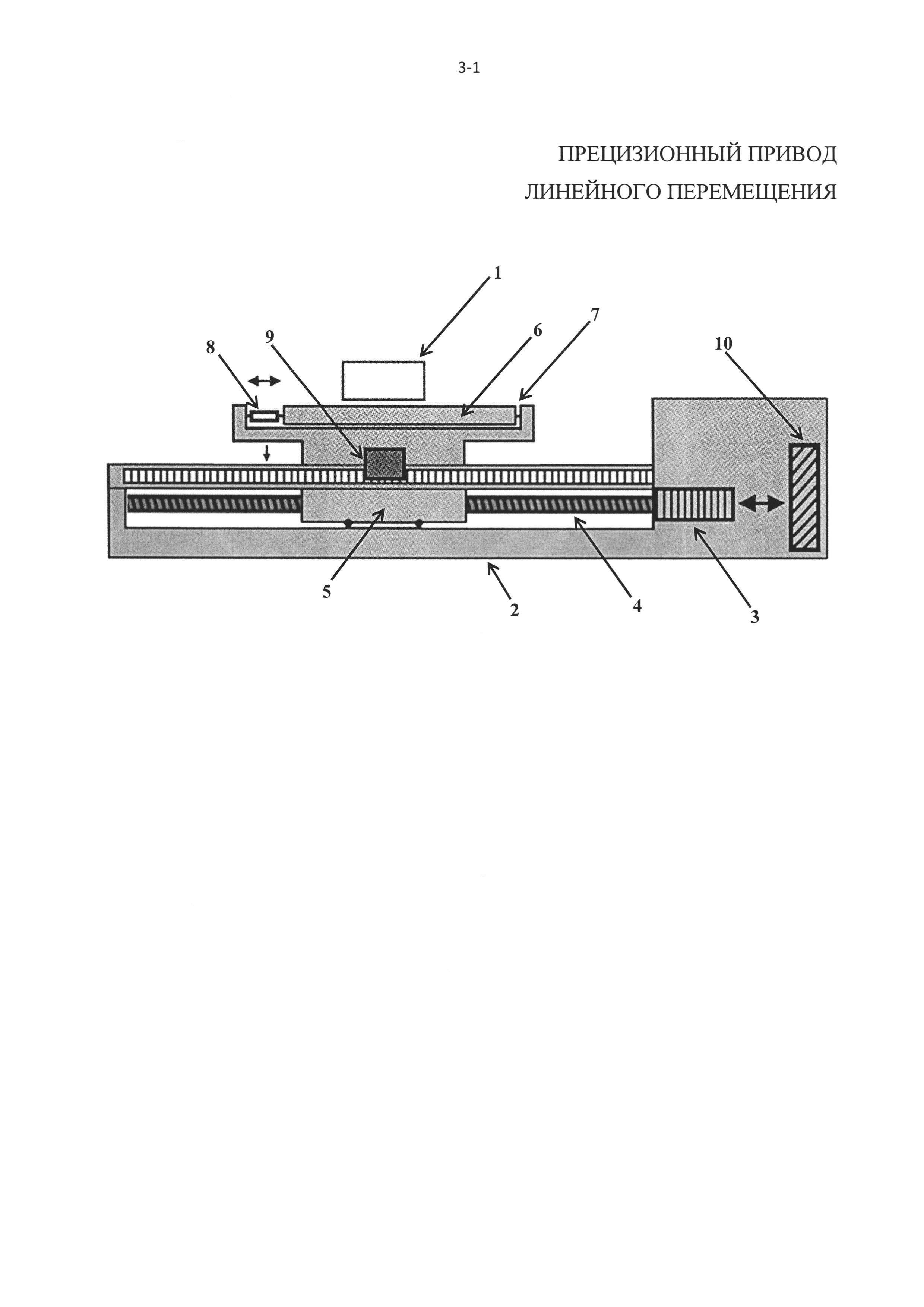 1. Прецизионный привод линейного перемещения, содержащий основание и механизм перемещения подвижной платформы с позиционируемым объектом с помощью пьезоактуатора, отличающийся тем, что подвижная платформа с позиционируемым объектом установлена на основной подвижной платформе посредством упругих подвесов, механизм перемещения основной подвижной платформы выполнен в виде связки шарико-винтовой передачи и вентильного двигателя, при этом шарико-винтовая передача выполнена в виде механического привода, преобразующего вращательное движение в линейное перемещение, а к ходовой гайке шарико-винтовой передачи жестко прикреплена основная подвижная платформа, прецизионный привод дополнен системой управления, использующейся для формирования и коррекции управляющих сигналов для вентильного двигателя и пьезоактуатора с целью достижения требуемой точности позиционирования и скорости перемещения позиционируемого объекта. 2. Прецизионный привод линейного перемещения по п. 1, отличающийся системой управления, включающей два датчика обратной связи, связанных с блоком управления, первый из которых - магнитный энкодер, установленный вдоль направления перемещения позиционируемого объекта и предназначенный для определения положения основной подвижной платформы с микрометровой точностью, и второй - встроенный в пьезоактуатор тензодатчик, определяющий параметры сжатия/растяжения пьезоактуатора для контроля положения подвижной платформы с позиционируемым объектом с нанометровой точностью.