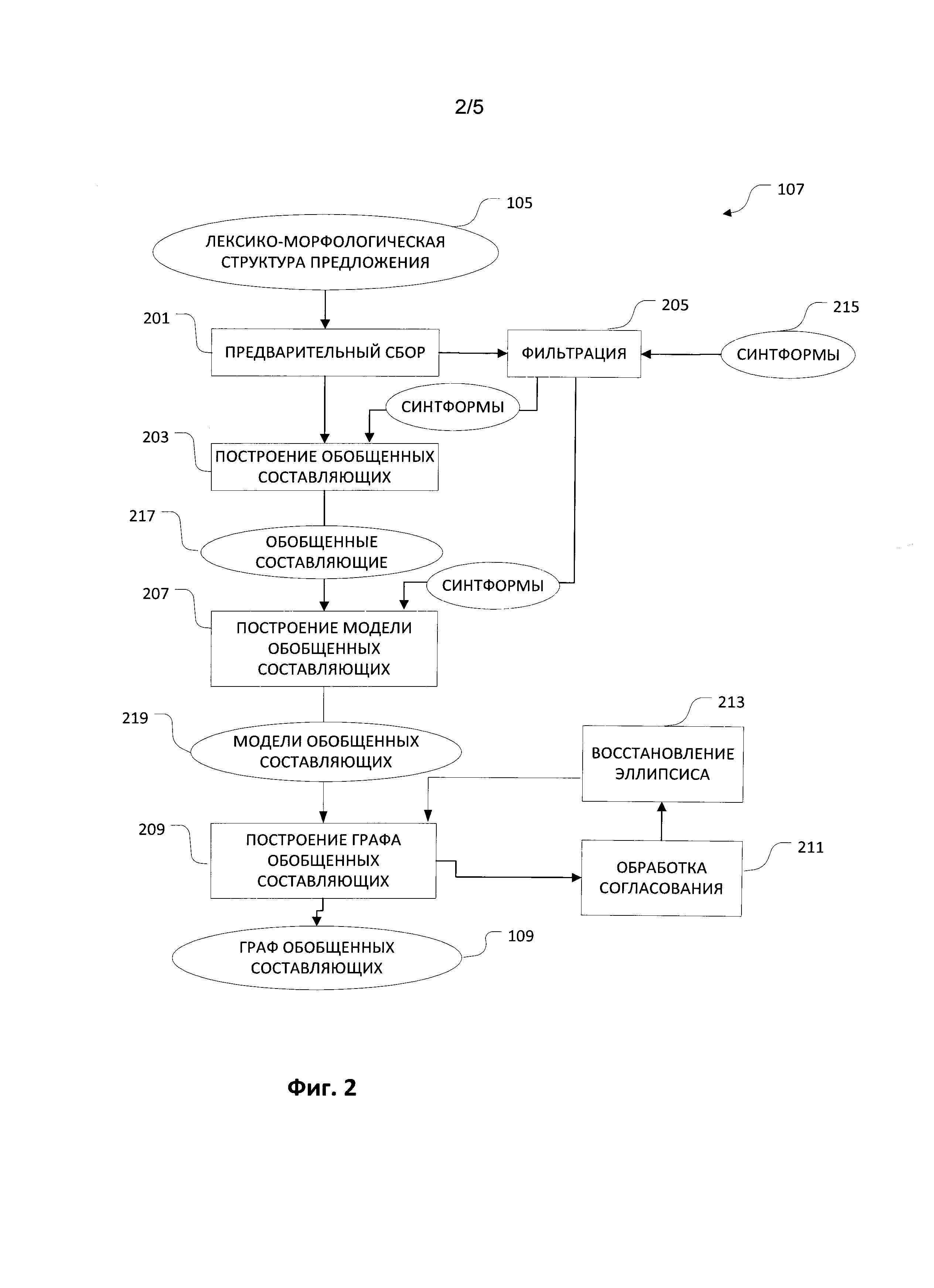 построение графа обобщенных составляющих для предложения на основе грубого синтаксического анализа лексико-морфологической структуры предложения, отличающегося тем, что этот граф обобщенных составляющих содержит дуги и узлы;