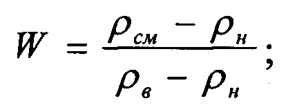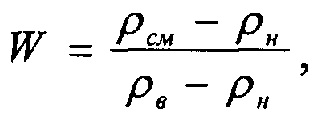 Способ определения обводненности продукции нефтедобывающей скважины, включающий обеспечение поступления продукции отдельной скважины в сепарационную и накопительную емкости замерной установки, осуществление сепарации газа и накопление отсепарированной жидкости с последующим измерением ее количества расходомером, передачи полученных значений замера по телемеханике, отличающийся тем, что в замерной установке осуществляют замер объемного и массового расхода отсепарированной продукции скважины при помощи последовательно установленных на измерительной жидкостной линии объемного и массового расходомеров, на основе полученных значений количества жидкости расходомерами за единицу времени составляют отношение массового к объемному расходу и при этом делают поправку на объемный расход через объемный коэффициент нефти, учитывающий наличие растворенного газа при давлении сепарации, а затем производят расчет плотности водонефтяной смеси замеряемой жидкости, далее, используя плотность смеси и известные значения плотностей нефти и воды, определяют долевое содержание воды в продукции скважины по формуле где ρн, ρв - соответственно плотность нефти и воды, кг/м3; ρсм - плотность смеси, кг/м3, и определяется из выражения где qM, qV - соответственно массовый и объемный расход замеряемой жидкости; bн - объемный коэффициент нефти при давлении сепарации в накопительной емкости, определяется из зависимости где Рсеп - давление в замерной установке, МПа; Рнас - давление насыщения нефти газом, МПа; bнас - объемный коэффициент пластовой нефти.