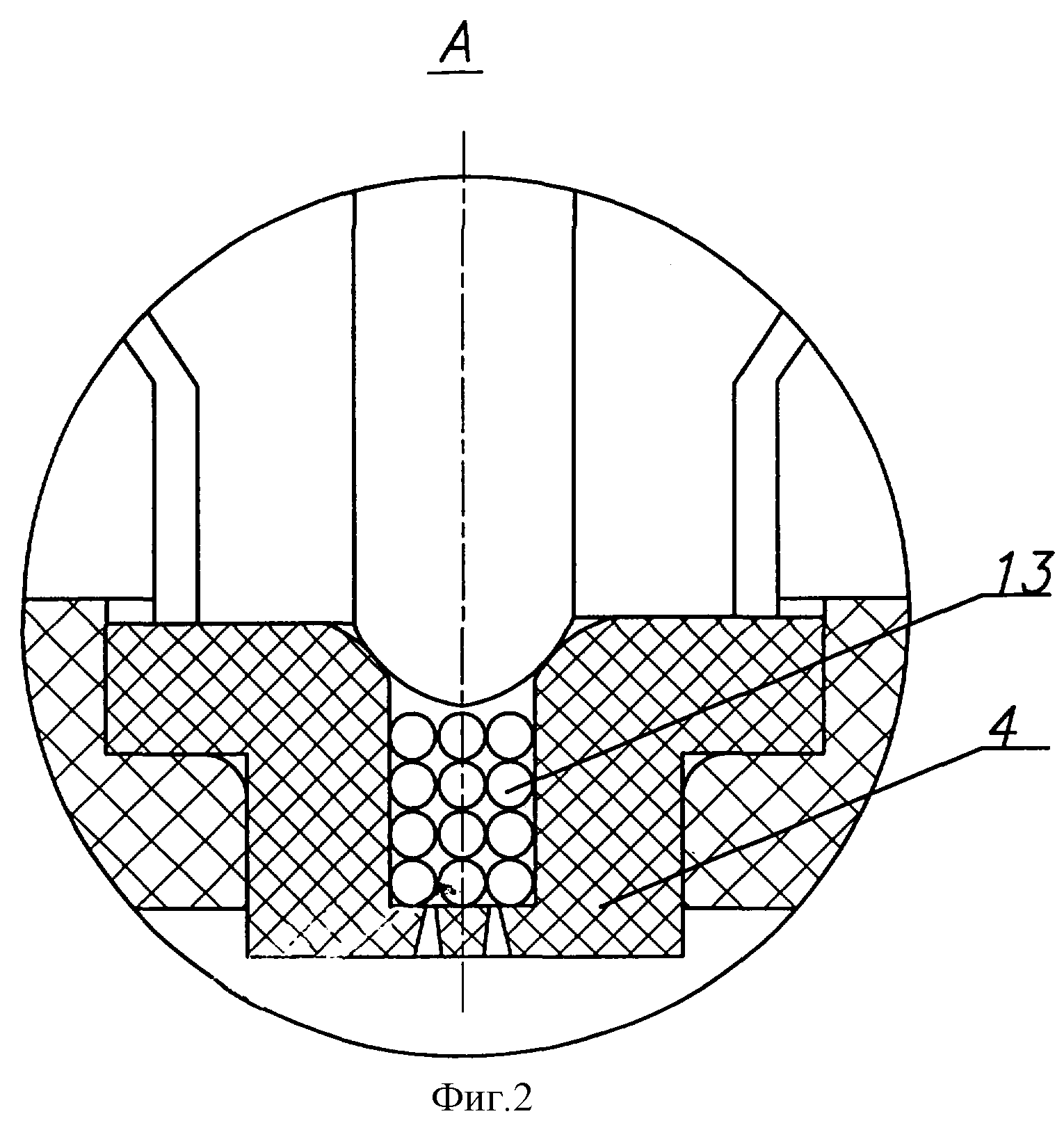 предложенного способа (в разрезе); на фиг.2 - увеличенный фрагмент А фиг.1 без фильтрующих элементов; на фиг.3 - увеличенный фрагмент А фиг.1 без втулки для слива
