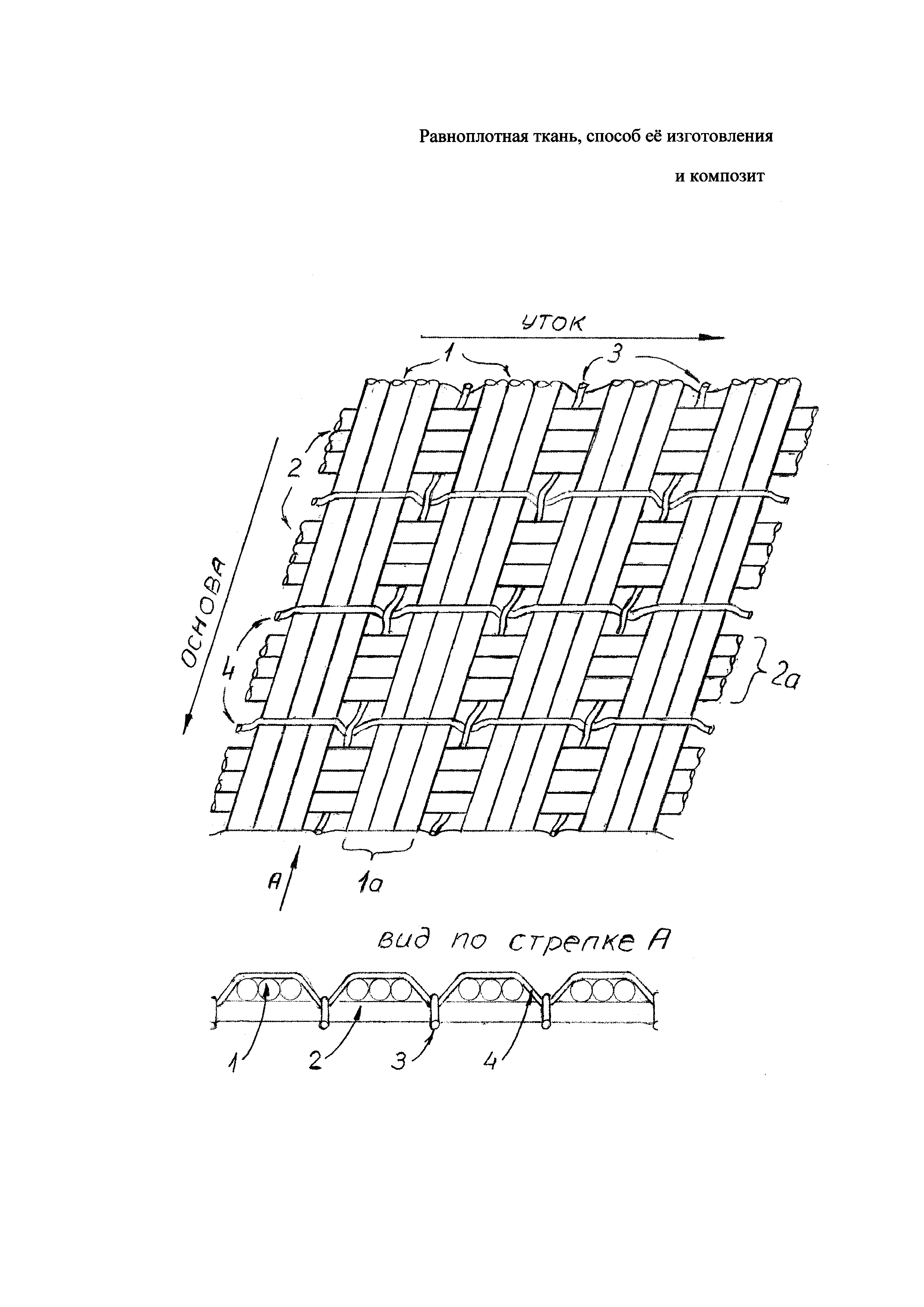 Группа изобретений относится к текстильной промышленности, в частности к тканям с особым расположением нитей, способу их изготовления и может использоваться при производстве композиционных материалов и баллистических защитных панелей для средств индивидуальной бронезащиты (СИБ). Известно, что высокопрочные высокомодульные синтетические нити (Кевлар, Тварон, Херакрон, Тапаран, СВМ, Русар, Армос, Руслан и др.) являются основой текстильной брони и композиционных материалов. Обладающие комплексом уникальных свойств нити из сверхвысокомолекулярного полиэтилена (СВМПЭ) также являются перспективным материалом для изготовления защитных систем. Но традиционный подход к изготовлению баллистических тканей из этих нитей на ткацком оборудовании приводит к существенному снижению физико-механических характеристик исходного полимера. Чтобы сохранить разрывную нагрузку нити из СВМПЭ была разработана технология, при которой нити с нулевой круткой тем или иным способом укладывают рядом, полученную однонаправленную ткань покрывают полиэтиленовой пленкой или смазывают клеем, разворачивают в плоскости на 90°, производят поперечную укладку таких же нитей и затем подпрессовывают изделие, получая гибкую двухслойную однонаправленную (UD) композицию. («Легкие баллистические материалы». Серия: Мир материалов и технологий под. ред. А. Бхатнагара, М.:Техносфера, 2011 г. 392 с). Помимо двухслойных композиций, подобным образом получают четырех-, шести - и восьмислойные композиции. Такие композиции не обладают гибкостью традиционных тканей, но способны обеспечить надежную баллистическую защиту от большинства поражающих элементов при соответствующей поверхностной плотности бронепанели, которая определяется количеством однонаправленных слоев. Наряду с гибкими и полугибкими бронепанелями путем прессования можно изготавливать жесткие бронепанели и каски. Для этих целей применяют однонаправленные ткани из СВМПЭ, производимые под брендом SPECTRASHIELD, SPECTRAFLEX, SPEKTRASHIELDPLUS. По аналогии с успешно используемыми для баллистической защиты однонаправленными тканями на основе СВМПЭ был создан ряд однонаправленных тканей на основе других высокопрочных нитей, в частности, арамидных -GOLDFLEX и Зайлона -ZYLONSHIELD. Производство однонаправленных материалов позволило снизить вес некоторых систем бронирования, тем не менее, этим материалам присущ ряд недостатков. Прежде всего, это двухстадийное изготовление ткани при поперечном наложении второго ее слоя. Наличие в ткани соединяющей пленки или клея препятствует изготовлению органокомпозитов определенного состава с заданными свойствами. И, наконец, присутствие адгезива (пленки или клея) препятствует продольному перемещению составных элементов ткани - нитей при баллистическом воздействии, которое переводит в тепло кинетическую энергию баллистического снаряда и способствует эффективному его задержанию. Исключению этих недостатков способствует технология изготовления однонаправленных тканей на текстильном оборудовании, описанная в пат.US №8017532 (2011 г. Barrday Inc.,CA). Согласно патенту, однонаправленные структурные нити основы и утка, лежащие в распрямленном состоянии под углом 90° друг к другу, удерживаются вместе системой переплетающих нитей меньшей прочности и малой линейной плотности, которые также состоят из ни