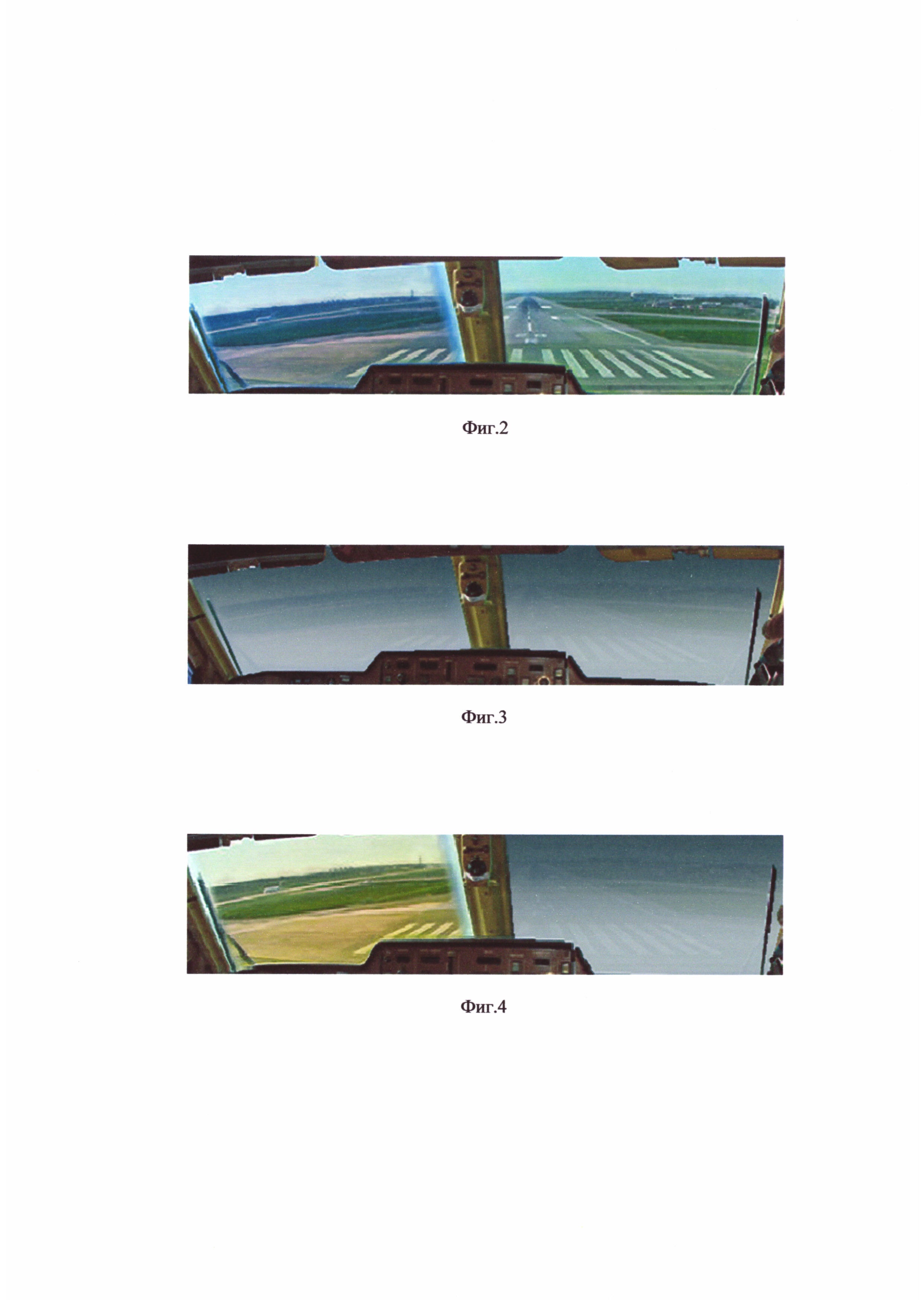 Изобретение относится к области авиационной техники и может быть использовано в составе бортового оборудования летательных аппаратов, на которых в составе пилотажно-навигационного комплекса установлены многофункциональные индикаторы (МФК) отображения навигационной, пилотажной информации и выдачи информации о параметрах и состояния силовой установки и общесамолетных систем. Технический результат – расширение функциональных возможностей на основе повышения информативности системы в поле зрения командира экипажа при неблагоприятных погодных условиях видимости аэродромной обстановки и безопасности выполнения полетного задания. Для этого в устройство, содержащее блоки вычисления и формирования индикации, пульты системы индикации, блоки электронных индикаторов, дополнительно введен индикатор, выполненный в виде цифрового прозрачного монитора со встроенным компьютером и элементами крепления, при помощи которых индикатор крепится на козырек приборной доски пилотов, при этом индикатор электрически соединен с блоками вычисления и формирования индикации. При неблагоприятных погодных условиях по согласованию с командой пункта управления воздушным движением аэропорта, командир кнопками монитора индикатора включает устройство в работу, при этом на монитор индикатора выводится рассчитанное по реальным параметрам положения летательного аппарата (ЛА) синтезированное пространственное изображение ландшафта аэродрома и осуществляется его дальнейшее динамическое сопровождение в реальном масштабе времени. 4 ил.