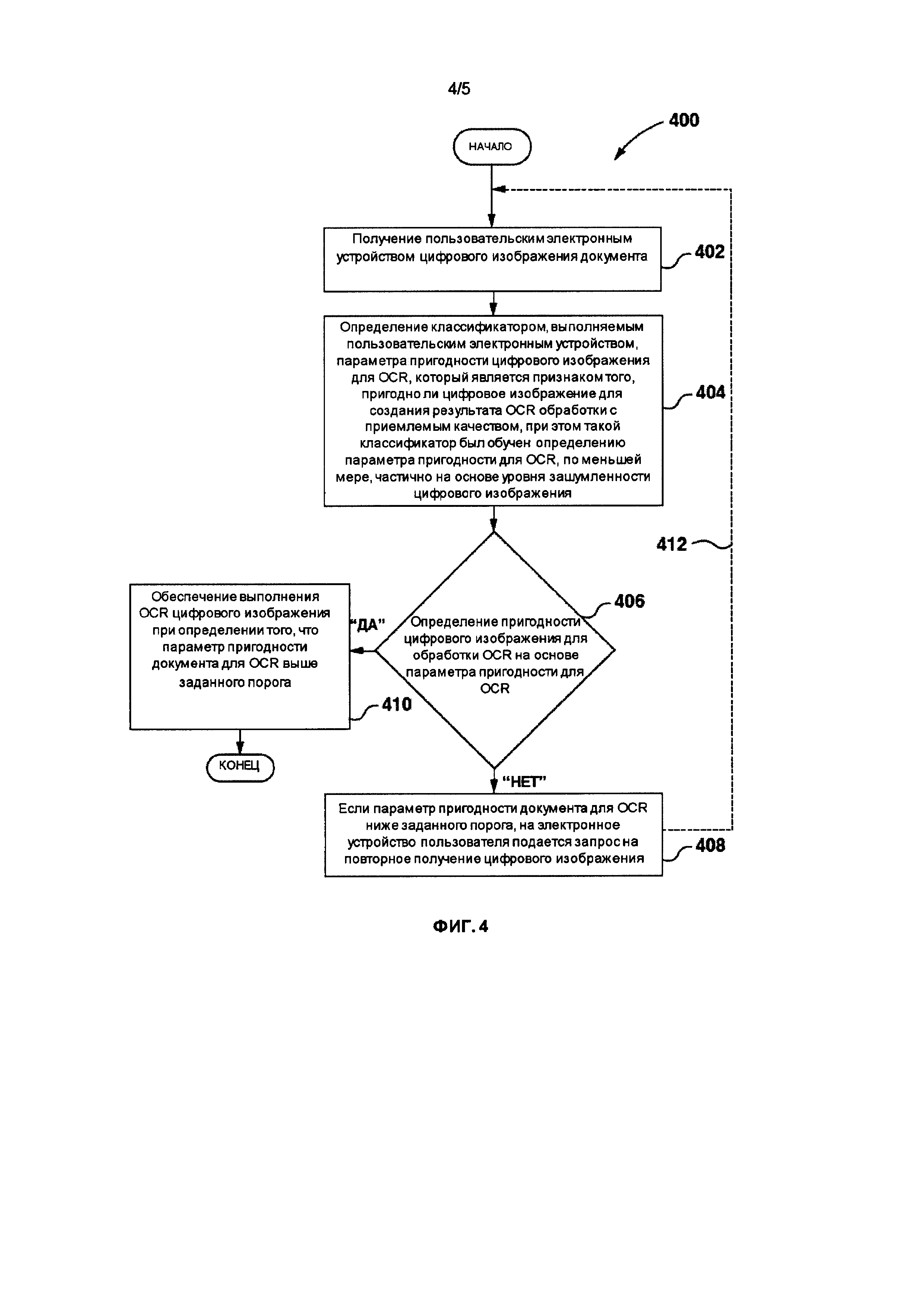 ОБЛАСТЬ ТЕХНИКИ [0001] Настоящая технология относится к осуществляемым на компьютере способам и системам обработки документов в целом и, в частности, к способу и устройству для определения пригодности документа для оптического распознавания символов (OCR). УРОВЕНЬ ТЕХНИКИ [0002] Печатные документы на естественном языке до сих пор являются широко распространенным средством, используемым для коммуникации между людьми в рамках организаций, а также для распространения информации среди ее потребителей. С появлением повсеместно используемых мощных вычислительных ресурсов, включая персональные вычислительные ресурсы, реализованные в смартфонах, планшетах, ноутбуках и персональных компьютерах, а также с распространением более мощных вычислительных ресурсов облачных вычислительных сервисов, центров обработки данных и корпоративных серверов организаций и предприятий, шифрование и обмен информацией на естественном языке все чаще выполняется в виде электронных документов. [0003] В отличие от печатных документов, которые по своей сути представляют собой изображения, электронные документы содержат последовательности цифровых кодов символов и знаков естественного языка. Поскольку электронные документы имеют перед печатными документами преимущества по стоимости, возможностям передачи и рассылки, простоте редактирования и изменения, а также по надежности хранения, за последние 50 лет развилась целая отрасль, поддерживающая способы и системы преобразования печатных документов в электронные. [0004] Вычислительные способы и системы оптического распознавания символов, совместно с электронными сканерами, являются надежными и экономичными средствами получения изображений печатных документов и компьютерной обработки получаемых цифровых изображений, содержащих текст документов с целью создания электронных документов, соответствующих печатным. [0005] С появлением смартфонов, оснащенных камерами, а также других мобильных устройств формирования изображения с процессорным управлением, появилась возможность получения цифровых изображений, содержащих текст документов, с помощью широкого диапазона различных типов широко распространенных портативных устройств, включая смартфоны, недорогие цифровые камеры, недорогие камеры видеонаблюдения, а также устройства получения изображений, встроенные в мобильные вычислительные приборы, включая планшетные компьютеры и ноутбуки. [0006] Получаемые при помощи таких портативных устройств и приборов цифровые изображения содержащих текст документов могут обрабатываться вычислительными системами оптического распознавания символов, в том числе приложениями оптического распознавания символов (также именуемыми обработкой OCR), установленными в смартфонах или реализованными на серверах, для создания соответствующих электронных документов. [0007] При реализации функции обработки OCR в локальном режиме эта функция может быть реализована на портативном устройстве, и цифровое изображение может обрабатываться с целью создания распознанного текстового документа. Как вариант, цифровое изображение, полученное электронным устройством пользователя (в сжатой форме или в фактическом размере), передается через сеть связи на сервер систем оптического распознавания символов для выполнения функции OCR на