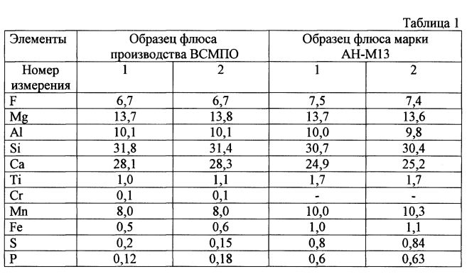 Изобретение относится к области изготовления стекловидных (аморфных) кислых флюсов, которые могут быть использованы при сварке плавящимся электродом плит толщиной до 60 мм и более из медных сплавов, в частности из хромистой бронзы. Автоматическая сварка медных сплавов под флюсом позволяет получать стабильно высокие механические свойства крупногабаритных сварных конструкций больших толщин без предварительного подогрева. Поэтому при изготовлении крупногабаритных сварных конструкций из медных сплавов больших толщин технологический процесс достаточно прост. Основным назначением флюса является защита расплавленного металла от вредного воздействия окружающей среды. Кроме того, флюс должен обеспечивать устойчивость горения дуги, хорошее формирование шва, надлежащий химический состав металла шва, высокие механические свойства сварного соединения, отсутствие пор и трещин в наплавленном металле, легкую удаляемость шлаковой корки с поверхности шва. По структуре плавленые флюсы делятся на стекловидные (аморфная структура), пемзовидные (пористые) и кристаллические. Лучшей защитной способностью обладают флюсы с плотным строением частиц мелкой грануляции (стекловидный флюс). Одной из серьезных проблем, возникающих в процессе сварки меди и ее сплавов, является образование пор в металле шва и околошовной зоне. Поры в швах на меди возникают вследствие значительного перепада растворимости водорода при ее затвердевании, а также взаимодействие растворенного водорода с содержащимся в металле сварочной ванны кислородом с образованием паров воды. Кроме того, в зоне горения дуги водород диффундирует в основной металл под оплавленные поверхности и, вступая в реакцию с включениями закиси меди, образует поры на месте этих включений, что приводит к возникновению у линии сплавления рыхлых прослоек. Следовательно, связывание водорода в атмосфере дуги и снижение тем самым его парциального давления является важнейшим фактором обеспечения условий повышения стойкости сварных соединений против пористости. Следует также по возможности ограничить присутствие воды во флюсе, которая может конденсироваться на поверхности флюса, а также в порах при наличии пористой структуры. Необходимо максимально понизить количество водорода, абсорбирующегося во флюсе во время его производства. Известен флюс для сварки меди и ее сплавов, преимущественно низколегированных медных сплавов, содержащий окись кремния, окись алюминия, окись марганца, окись магния, окись кальция, фтористый кальций, в котором с целью повышения стойкости сварных швов против пористости при сохранении равнозначной с основным металлом электропроводности металла швов флюс дополнительно содержит двуокись марганца при следующем соотношении компонентов, вес. %: - (А.И. №538869, МПК B23K 35/362, опубл. 15.12.1976 г.). Недостатком данного флюса является то, что при промышленном производстве используется марганцевая руда, представляющая собой MnO2 с сопутствующими примесями, содержащими окисел железа, фосфор, серу и прочие элементы. При изготовлении ответственных изделий наблюдались случаи недопустимого снижения качества сварного шва. Известен способ производства сварочного флюса, который имеет следующий состав, % по массе: флюса (32-36)%SiO2-(8-12)%Al2O3-(8-12)%MnO-(0.2-1)%Mn2O3-(12-18)%MgO-(0.7-1.5)%TiO2-(0,5-6)%CaO-(22-30)%CaF2 (флюс 