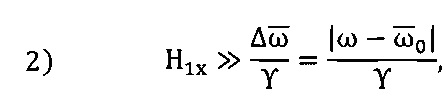 равно 0,8. При этом амплитуда радиоимпульса поперечного магнитного поля возбуждения материала активной среды H1max, заведомо обеспечивающая этот коэффициент усиления и заметно ослабляющая его частотную зависимость, равна