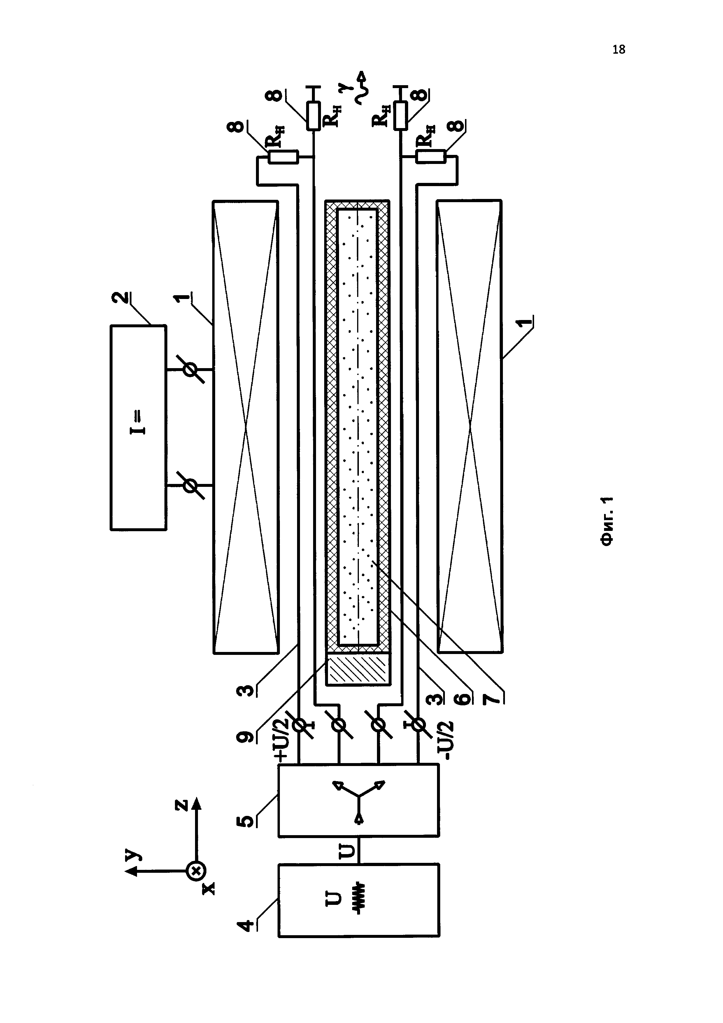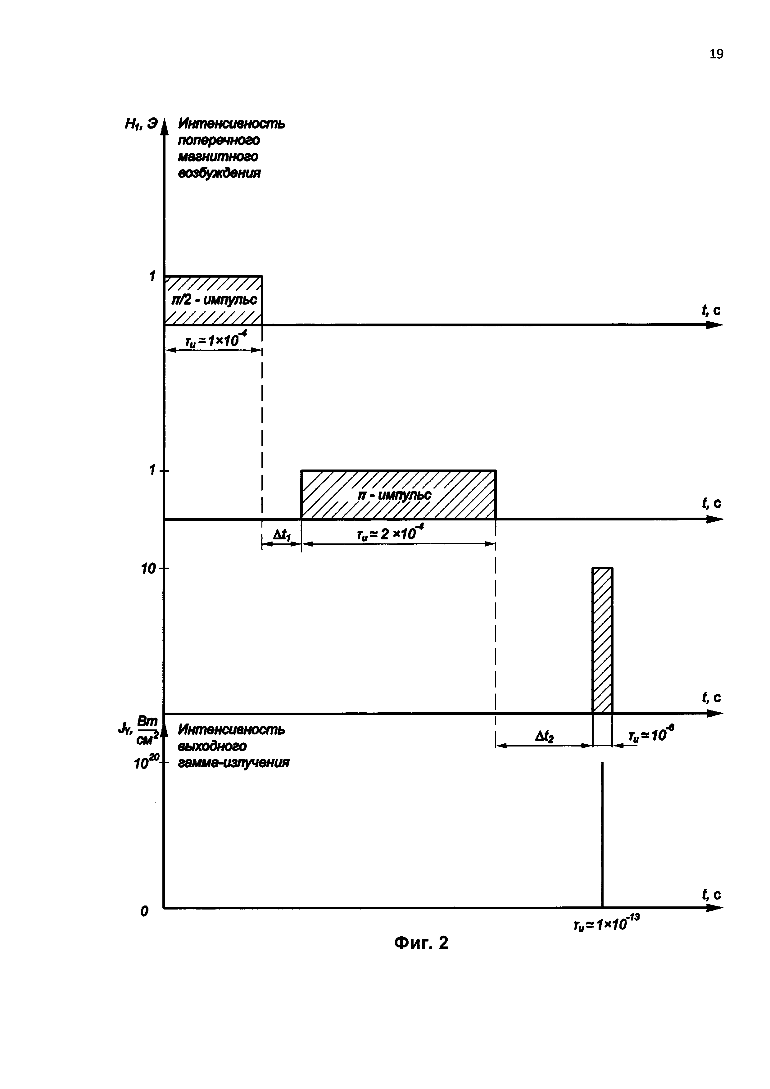дочерних ядер; при этом магнитные моменты дочерних ядер верхних и нижних подуровней рабочего уровня энергии к концу действия этого импульса окажутся в плоскостях, компланарных поперечной плоскости xy, прецессируя вокруг продольной оси z; причем в то время, когда магнитные моменты ядер находятся в плоскости xy, ядра имеют минимальную энергетическую связь с продольным силовым магнитным полем H0, направленным по оси z, и их магнитное квантовое число m равно нулю;