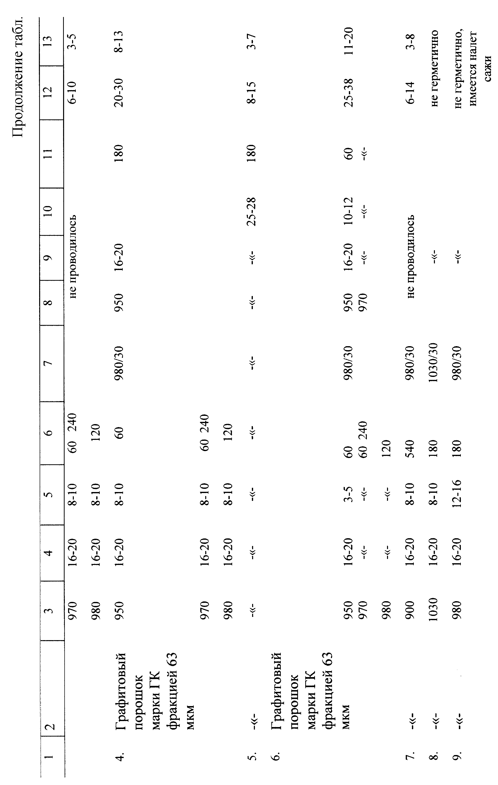 940-990oС. В качестве мелкодисперсного углеродного наполнителя в шликерном покрытии можно использовать коллоидный графит или сажу фракцией не более 1,5 мкм, а насыщение