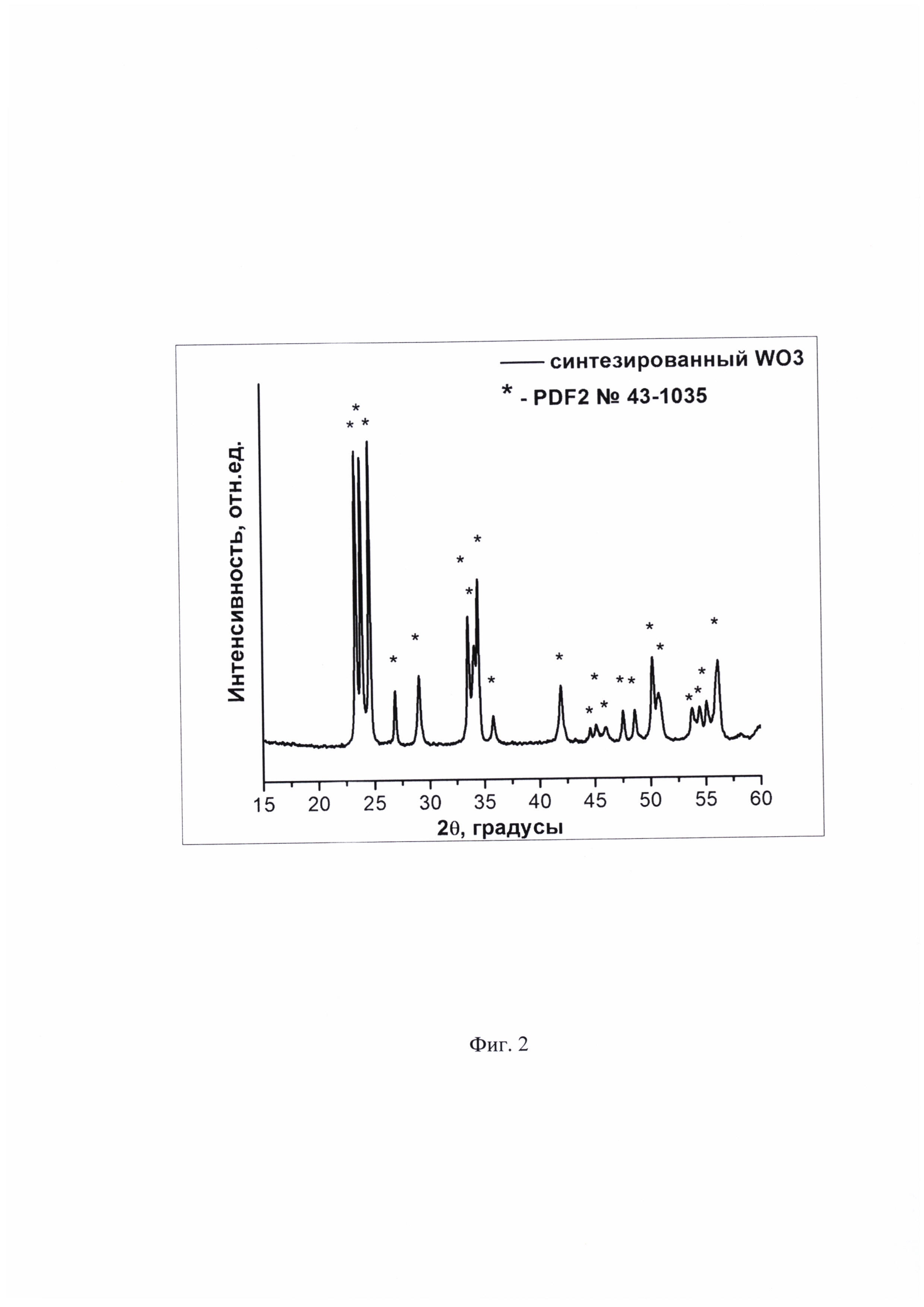 Изобретение относится к области химической технологии, а именно к способам получения водных коллоидных растворов (золей) наночастиц соединений переходных металлов, а именно коллоидных растворов триоксида вольфрама, которые могут быть использованы для получения защитных покрытий, катализаторов, красителей, композитов и применяться в других областях, где есть потребность в таких растворах. Нанодисперсный триоксид вольфрама - перспективный материал для химической промышленности. При переходе в нанокристаллическое состояние у этого оксида появляются необычные для крупнокристаллического состояния свойства, например, газохромные, электрохромные, фотохромные, сверхпроводниковые [С. Santato, М. Odziemkowski, М. Ulmann, and J. Augustynski. Crystallographically Oriented Mesoporous WO3 Films: Synthesis, Characterization, and Applications // J. Am. Chem. Soc. 2001, 123, 10639-10649]. В настоящее время известны методы получения триоксида вольфрама в порошкообразном состоянии, например, в [P.J. Hwan, K.Y. Jin, P.S. Min, L.J. Won, K.R. Kwon. Manufacturing method of high purity tungsten trioxide powder using waste hard metal and tungsten trioxide manufactured by the method. KR 20100024032, Publication Date: 05.03.2010] описывается способ получения триоксида вольфрама путем обезуглероживания карбида вольфрама, в [Chang-Hoon Shin, et. al. A Study on the Preparation of Tungsten Oxide powders Using Emulsion Evaporation Methods // J. of the Korean Cer. Soc., 1998, V. 35, №.6, 543] раскрывается способ изготовления триоксида вольфрама методом испарения эмульсии. Также используют золь-гель метод, гидротермальный, электрохимическое анодирование, электрохимическое осаждение [Н. Zheng, J.Z. Ou, M.S. Strano, R.B. Kaner, A. Mitchell, and K. Kalantar-zadeh. Nanostructured Tungsten Oxide - Properties, Synthesis, and Applications Adv. Fund. Mater. 2011, 21, 2175-2196]. Недостатками предлагаемых методов является низкая чистота получаемого продукта, гидратированность поверхности, присутствие аморфной фазы, а также необходимость использования специального оборудования. Таким образом, существует много методов получения триоксида вольфрама в порошкообразном виде, но практически отсутствуют данные о методах синтеза коллоидных растворов кристаллических наночастиц WO3, которые востребованы в химической технологии, в частности, необходимы для нанесения на поверхность разнообразных носителей для применения в газовых сенсорах, электрохромных устройствах, катализаторах [А.В. Александров, Н.Н. Гаврилова. Влияние условий синтеза на коллоидно-химические свойства гидрозолей триоксида вольфрама // Успехи в химии и химической технологии. 2013, Т. XXVII, №2, 47-55]. На данный момент известно несколько методов получения коллоидных растворов, включающих триоксид вольфрама и другие оксиды металлов. Например, в патенте [С. Wen, Z. Quanrao, Y. Ying, Z. Jing, J. Aiping, V. Volkove, G. Zahanawa. Method for preparing stable sol of composite oxides of vanadium and tungsten. CN 101049970, Publication Date: 10.10.2007] описывается технология получения золей V2O5-WO3 в гидротермальной установке, а в патенте [I. Hiroyuki. Tungsten oxide-containing titanium oxide sol, method of manufacturing the same, coating material and optical functional body. JP 4507066, Publication Date: 21.07.2010] раскрывается способ получения золя триоксида вольфрама, содержащего диоксид титана, путем термической обработки раствора, состоящего из геля титановой кислоты, аммиака и соединения вольфрама. Основным недостатком предложенных методов является то, что в системе присутствуют посторонние элементы и примеси. В качестве еще одного способа получения коллоидных растворов триоксида вольфрама используют метод пептизации. Так, известен способ получения коллоидного раствора нанокристаллического три