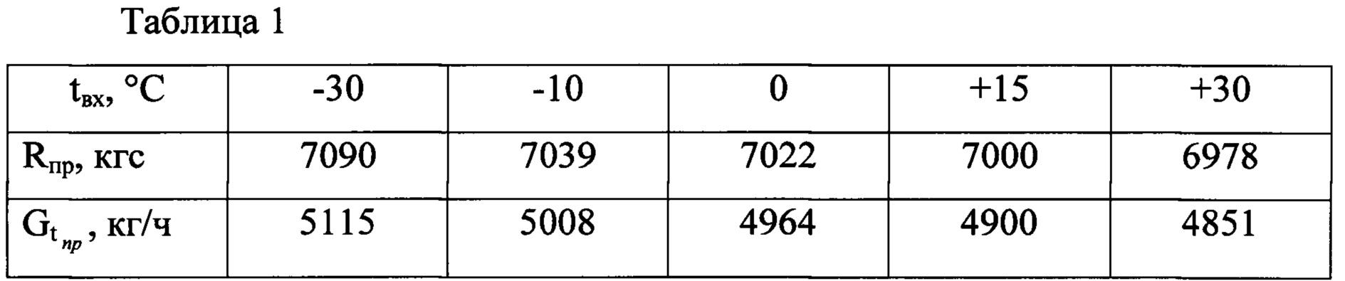 Изобретение относится к авиадвигателестроению, а именно к способам испытаний газотурбинных двигателей (ГТД). Способ испытания ГТД включает приведение значений параметров к стандартным атмосферным условиям с учетом изменения свойств рабочего тела и геометрических характеристик проточной части газотурбинного двигателя при изменении атмосферных условий. Согласно изобретению проводят испытания двигателя на выбранном режиме работы двигателя при одинаковых барометрических давлениях и одинаковой влажности воздуха с различной температурой воздуха на входе в двигатель, измеряют параметры на ряде температур воздуха на входе в двигатель, включая температуру t=+15°С, приводят их к стандартным атмосферным условиям известным способом, вычисляют поправочные коэффициенты, учитывающие изменения характеристик конкретного типа двигателя при изменении температуры окружающего воздуха, где A- значение параметра, измеренное при температуре воздуха на входе в двигатель t=+15°С, A- значение параметра, измеренное при температуре воздуха на входе, отличающейся от t=+15°С, и приведенное к стандартным атмосферным условиям, формируют зависимости поправочных коэффициентов на измеряемые параметры от температуры воздуха на входе в двигатель Ki=f(t), а при приведении параметров на других двигателях дополнительно умножают приведенные значения параметров на коэффициенты Ki. Технический результат - обеспечение возможности более корректного приведения результатов испытаний к стандартным условиям атмосферы и повышение репрезентативности результатов испытаний. 2 ил., 2 табл.