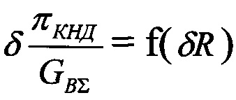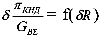 и δπTΣ =f(δR), затем по предварительно заданной величине кратковременного повышения запасов газодинамической устойчивости и/или величине кратковременного снижения тяги при увеличении неравномерности воздушного потока на входе в двигатель определяют величину изменения δπTΣ и вводят ее дополнительно в электронный регулятор двигателя как программу поддержания степени расширения на турбинах при увеличении неравномерности воздушного потока на входе в двигатель.