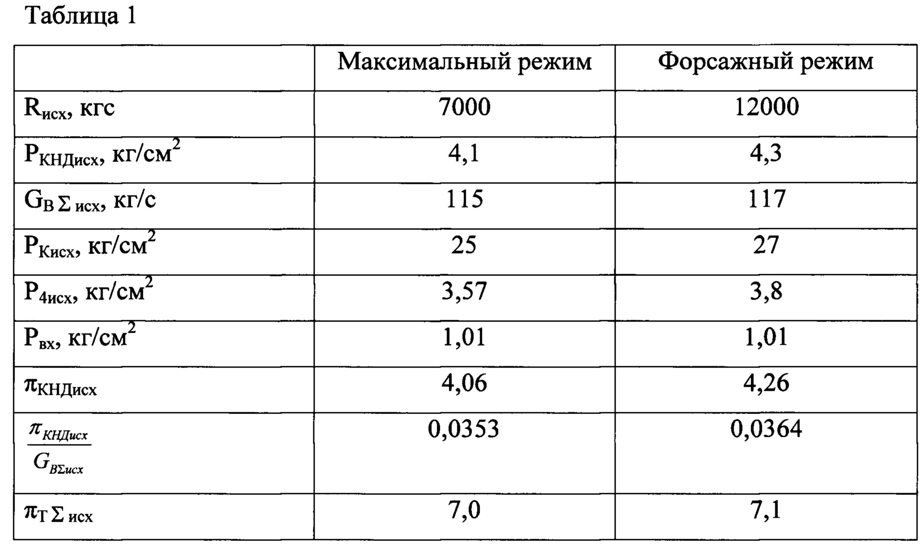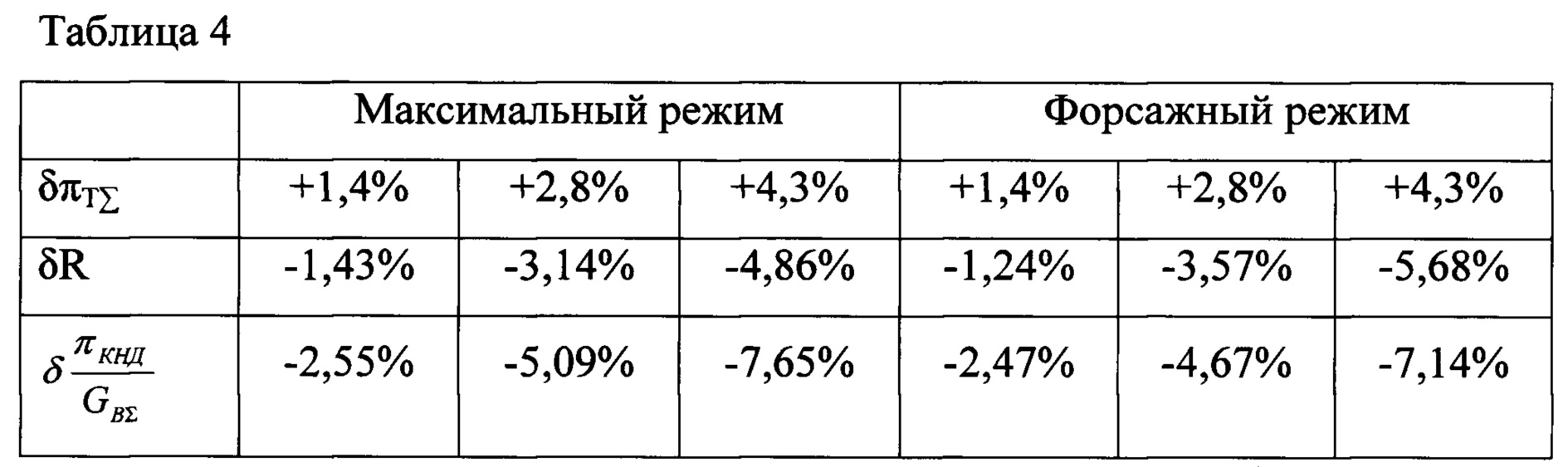 на максимальном режиме и форсажном режиме (таблица 4).