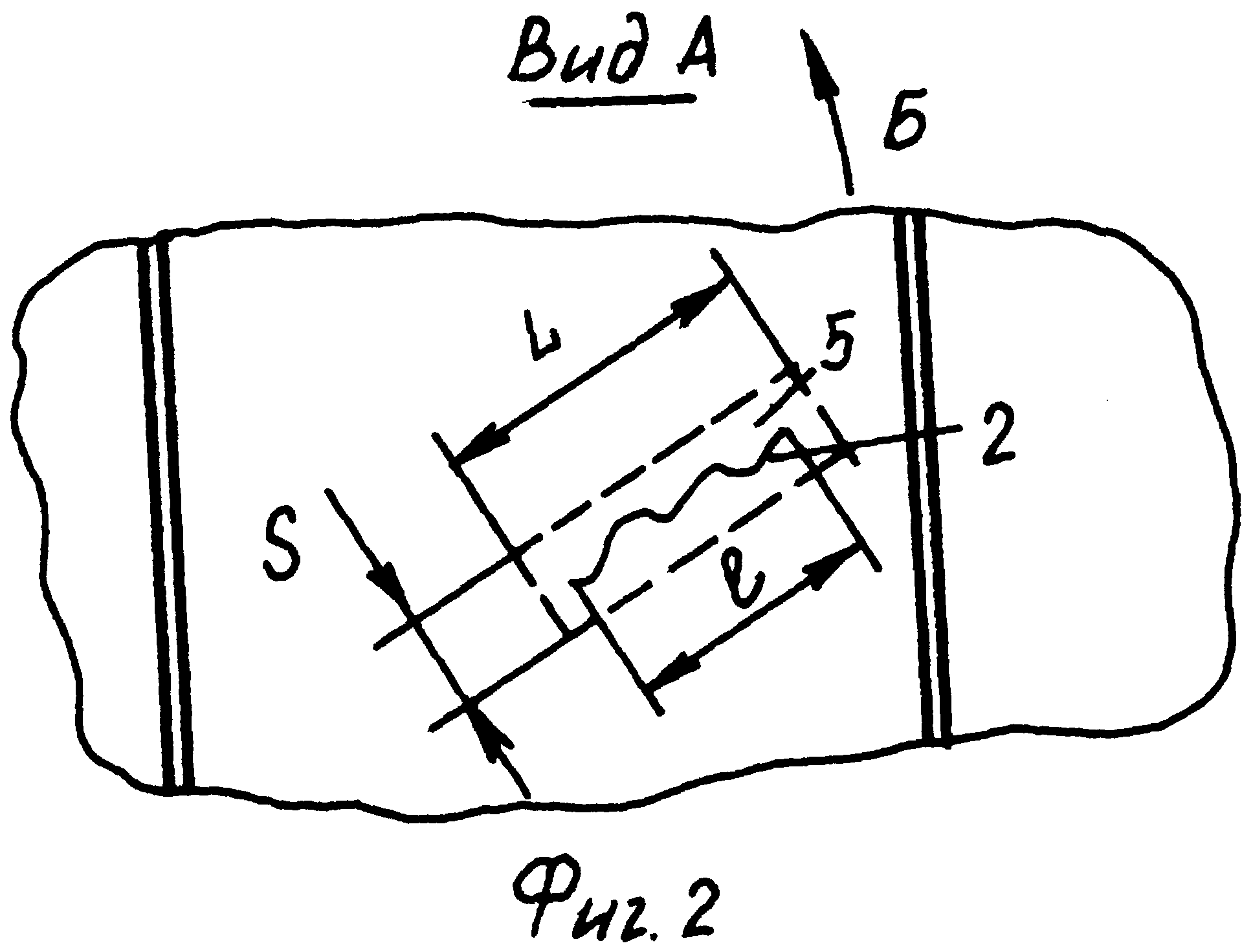 S - ширина паза, L - длина паза, l - длина трещины, h - глубина паза, δ - толщина участка с дефектом (трещиной). Способ ремонта осуществляется следующим образом. Способ