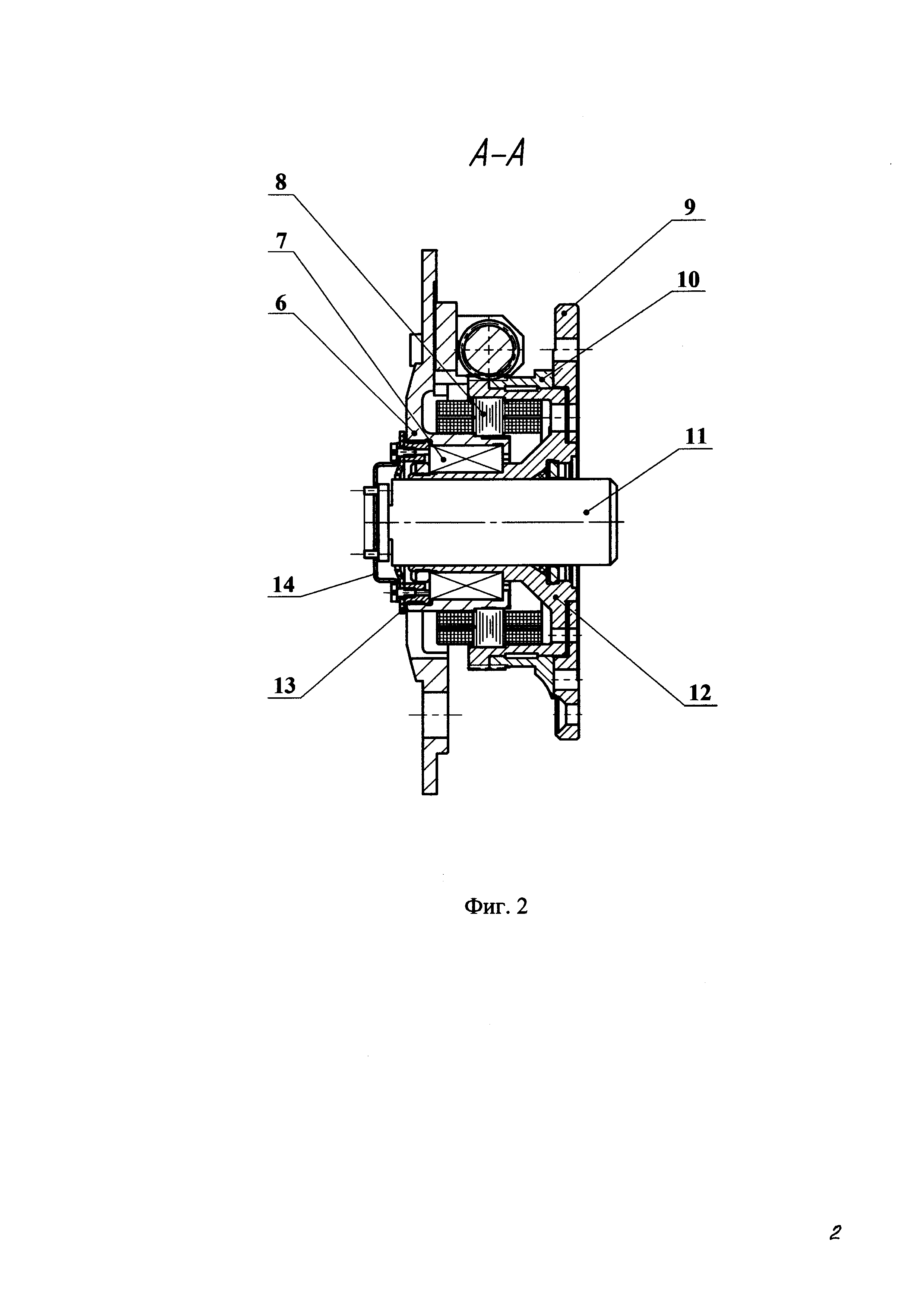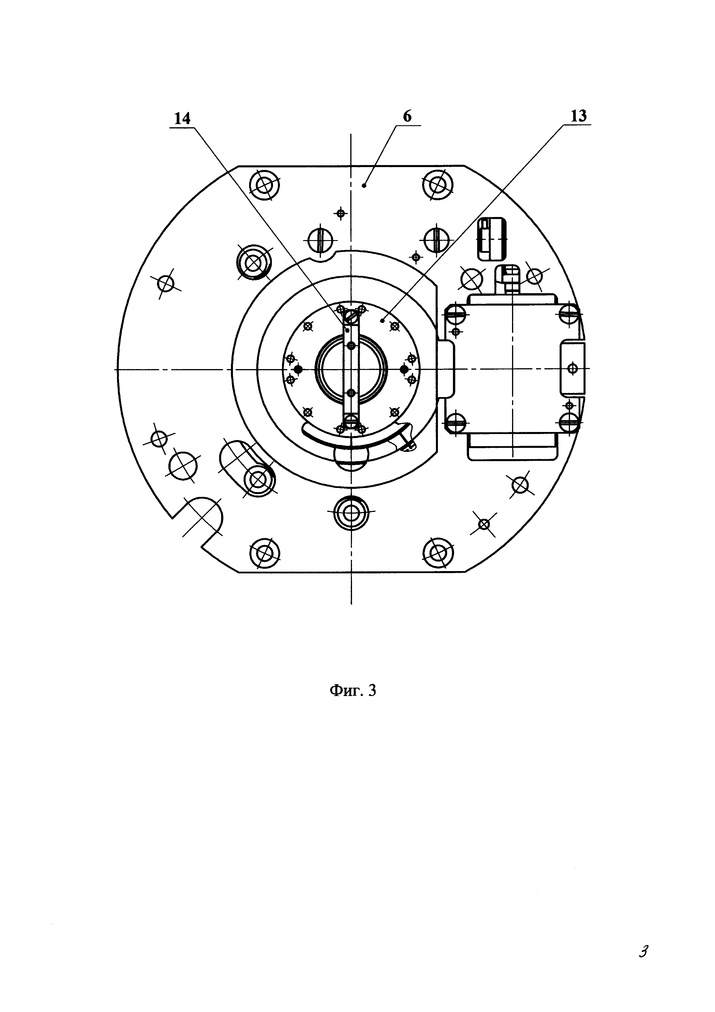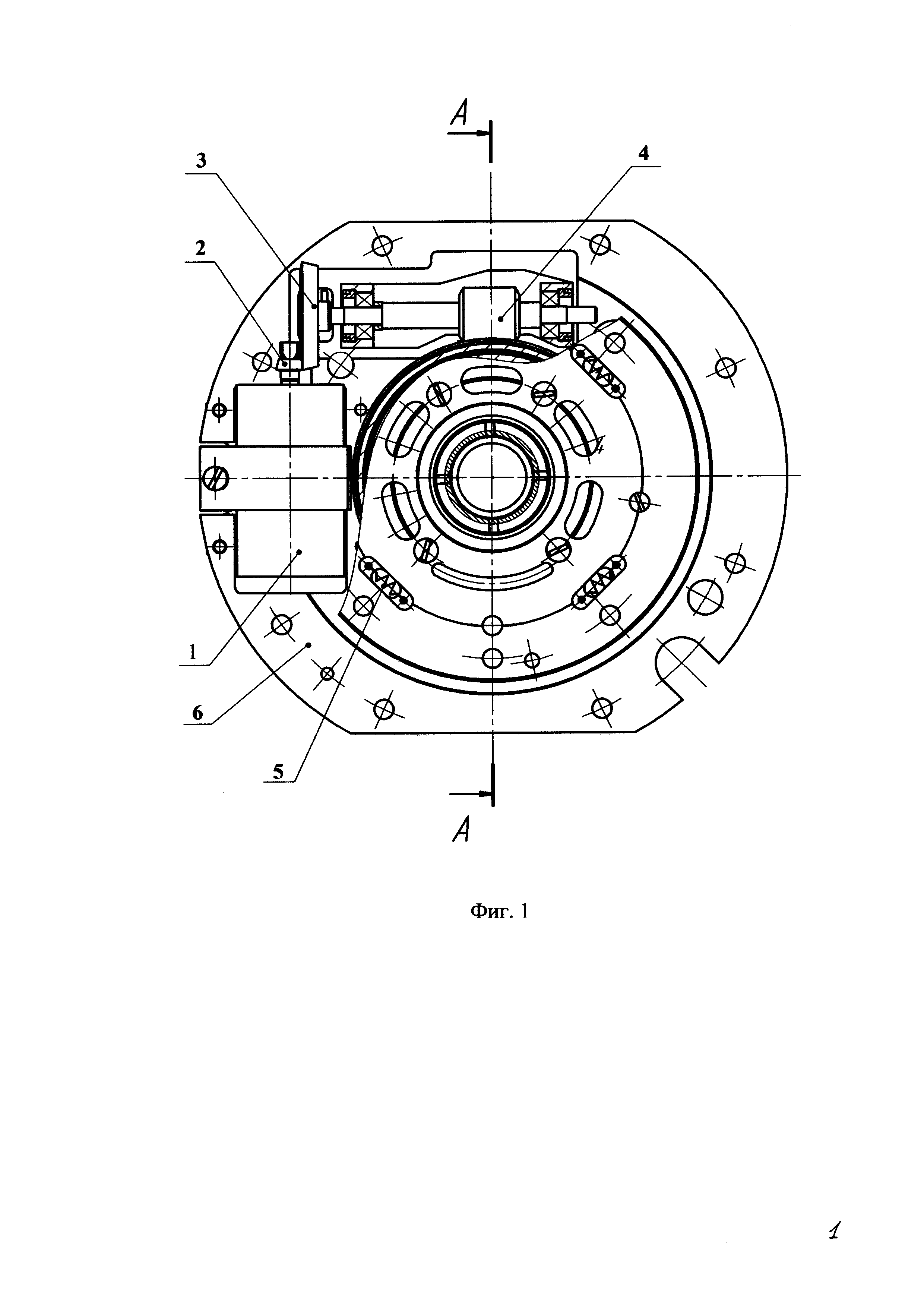 Изобретение относится к области навигационного приборостроения и может быть использовано для создания прецизионных систем инерциальной навигации подвижных объектов. Одной из составляющих инерциальных навигационных систем является гиростабилизатор, имеющий стабилизированную платформу с выставленными на ней гироскопами и акселерометрами. Стабилизированная платформа установлена в карданов подвес с расположенными на его осях датчиками угла и датчиками момента, имеющий одну, две или более рамок в зависимости от количества степеней свободы гиростабилизатора. Необходимая точность вращения, надежность и долговечность гироскопических устройств достигается с помощью опор карданова подвеса, качество изготовления которых влияет на инструментальные погрешности гиростабилизатора. Наибольшее распространение в гиростабилизаторах получили шарикоподшипниковые опоры карданова подвеса. Конструктивные схемы опор описаны в общедоступном литературном источнике: Гироскопические системы (элементы гироскопических приборов) Никитин Е.А., Шестов С.А., Матвеев В.А. Под ред. Пельпора Д.С. М., Высшая школа, 1988 г., с. 180-187. Недостатком этих опор является низкая точность разворота карданова подвеса. Известна типовая конструкция узла сочленения подвеса, описанная в общедоступном литературном источнике: Гиростабилизаторы ракет. Назаров Б.И., Хлебников Г.А., М., Воениздат, 1975 г., рис. 1.25, с. 59, принятая за прототип. Она представляет собой шарикоподшипниковую опору, содержащую стабилизирующий двигатель, коллекторный токоподвод, цапфу оси подвеса, шарикоподшипник, датчик команд (преобразователь сигналов), корпус прибора. Недостатками данной конструкции являются: - отсутствие устройства для выборки люфтов в редукторе, что приводит к недостаточной точности разворота рамок карданова подвеса; - невозможность производить выставку зацепления и регулировку опоры в собранном состоянии до установки в карданов подвес. Задачей настоящего изобретения является повышение точности разворота рамок карданова подвеса, уменьшение массы и габаритов конструкции опоры, улучшение технологичности конструкции, заключающееся в том, что опора может дополнительно регулироваться в собранном состоянии до установки в карданов подвес. Поставленная задача достигается тем, что в конструкцию опоры карданова подвеса гиростабилизатора, содержащую стабилизирующий двигатель, преобразователь координат, цапфу оси подвеса, шарикоподшипник, редуктор, корпус, токоподвод коллекторного типа, согласно изобретению введены: косозубое люфтовыбирающее колесо с фланцем, четыре люфтовыбирающие пружины, дополнительный фланец, при этом шарикоподшипник выполнен в виде дуплексного шарикоподшипника, цапфа выполнена с косозубым зубчатым венцом с посадочными местами для установки внутреннего кольца дуплексного шарикоподшипника и статора преобразователя координат, редуктор представляет собой два конических зубчатых колеса и червяк, который находится в зацеплении с косозубым венцом цапфы и косозубым венцом люфтовыбирающего колеса, корпус с крышкой и прикрепленной к ней планкой, на котором имеются посадочные местами для наружных колец дуплексного шарикоподшипника, токоподвод расположен внутри цапфы. Предлагаемое устройство представлено на фи. 1-3. На фиг. 1 приведен вид спереди