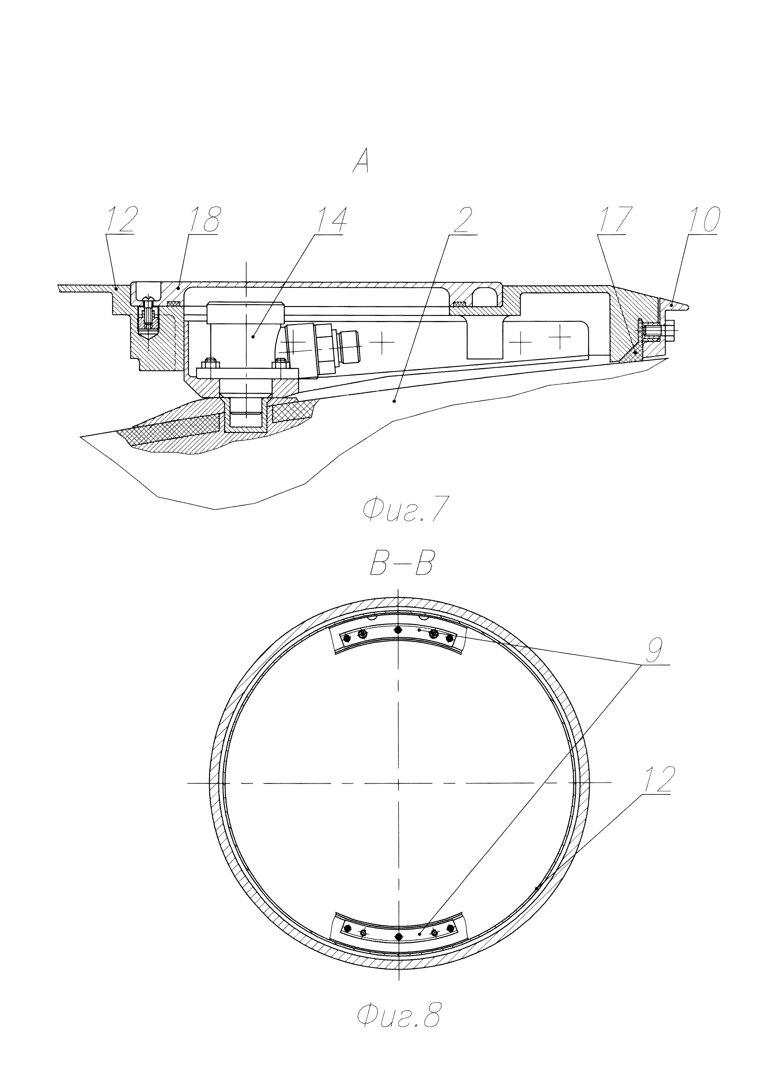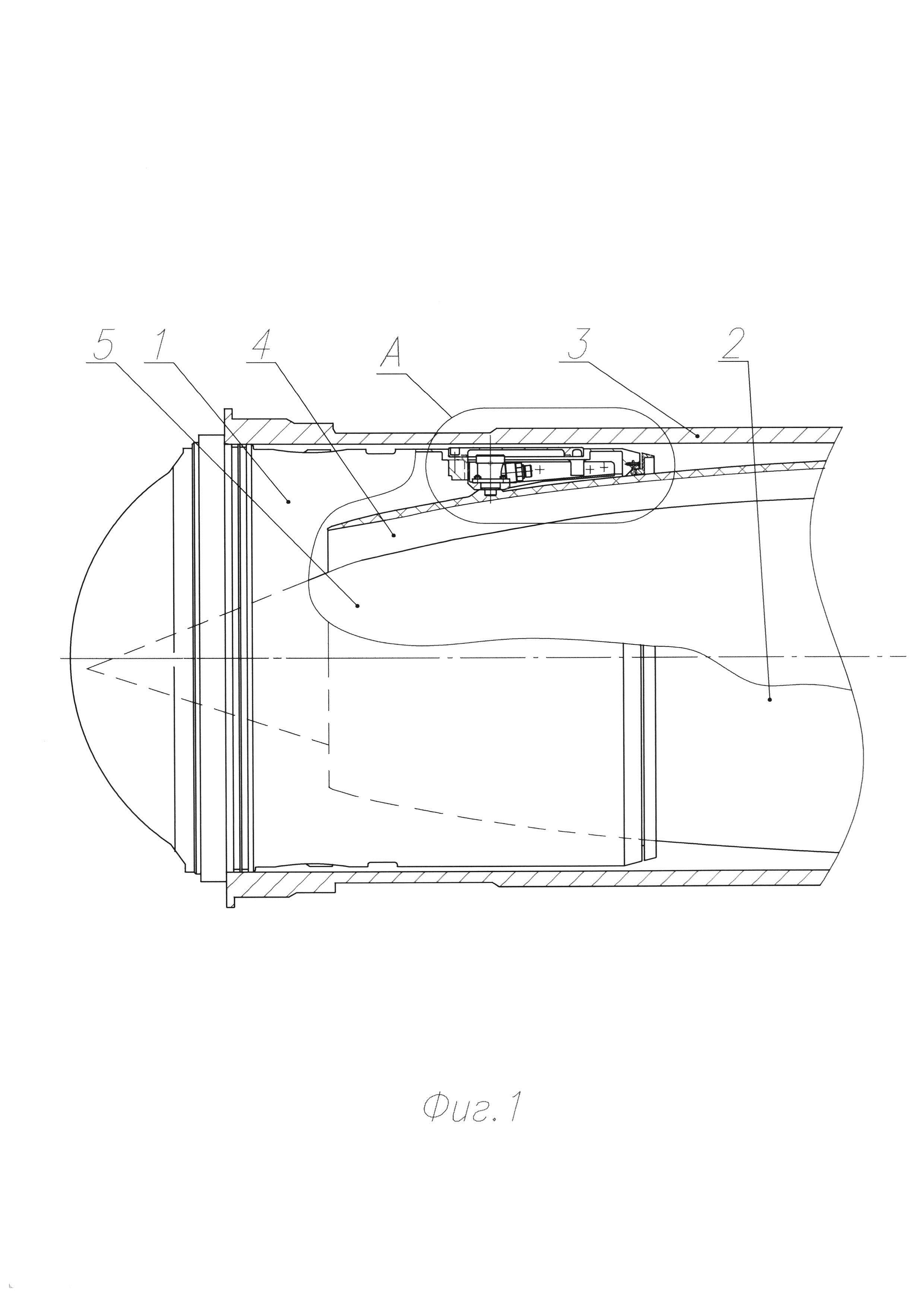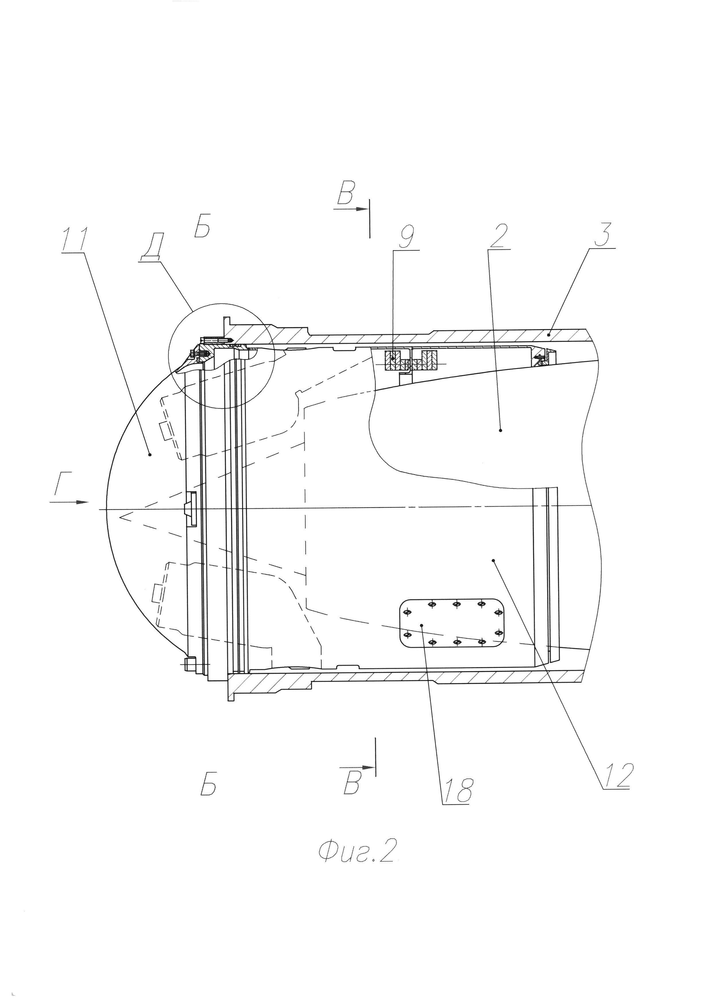 Заявляемое техническое решение относится к области летательных аппаратов (ЛА), а именно к устройствам, обеспечивающим компактное размещение и требуемые условия эксплуатации ЛА в транспортно-пусковых контейнерах (ТПК), и может найти применение на ЛА, преимущественно сверхзвуковых, разрабатываемых, в том числе, под условия подводного старта. Известен ЛА в ТПК по патенту РФ №2215981, содержащий осесимметричный фюзеляж, оборудованный воздухозаборником воздушно-реактивного двигателя ЛА и снабженный складывающимися крыльями и оперением, соосно скрепленную с фюзеляжем стартово-разгонную ступень, при этом воздухозаборник расположен в носовой части фюзеляжа и снабжен носовым обтекателем (НО), посредством которого ЛА крепится в контейнере в продольном направлении и осуществляется герметизация внутренних полостей как ЛА, так и ТПК. На боковой поверхности обтекателя цилиндроконической формы выполнен уступ, опирающийся на передний торец ТПК, и установлены кольца уплотнения, контактирующие с его внутренней поверхностью, при этом обтекатель скреплен с ТПК посредством срезных элементов. НО ЛА по патенту РФ №2215981 имеет следующие недостатки: - отсутствие переходной детали между НО и ТПК требует совместной разделки отверстий под срезные элементы в НО и ТПК. Тем самым снижается технологичность конструкции и повышается трудоемкость работ на заключительных этапах сборки, а также не обеспечивается взаимозаменяемость таких трудоемких в изготовлении агрегатов, как НО и ТПК; - НО выполнен как одно целое, без съемного днища и эксплуатационных люков, что приводит к значительным трудностям в ходе сборочных и электромонтажных работ; - не представлено техническое решение установки пиростопоров для фиксации НО относительно носовой части ЛА; - не представлено техническое решение герметизации НО с носовой частью ЛА; - не представлено техническое решение установки внутри НО системы двигателей разворота ЛА на цель и увода НО после его расфиксации от ЛА; - отсутствует возможность регулировки положения центра масс НО, что очень важно для правильной и надежной работы системы двигателей; - отсутствуют узлы, обеспечивающие такелажные работы с НО, с НО вместе с ЛА, а также с НО вместе с ЛА внутри ТПК. Данное устройство принято за ближайший аналог. Технической задачей, на решение которой направлено заявляемое техническое решение, является: увеличение плотности компоновки путем рационального использования внутренних объемов НО; - введение перестыковочного кольца между НО и ТПК, при этом срезные элементы устанавливаются в перестыковочном кольце, что значительно снижает трудоемкость сборочных работ на заключительных этапах сборки и обеспечивает взаимозаменяемость НО и ТПК путем замены кольца, если это необходимо; уменьшение энергозатрат путем использования двигателей, установленных внутри НО, обеспечивающих разворот ЛА на цель и увод НО после его расфиксации вместе с этими двигателями от ЛА; - повышение точности и надежности отделения и увода НО и разворота ЛА путем регулировки положения центра масс НО; - обеспечение для НО дополнительной функциональности путем разделения его на корпус и днище и введения эксплуатационных люков для установки и обслуживания узлов и агрегатов, размещенных внутри НО; - установка на НО такелажных узлов для работ не 