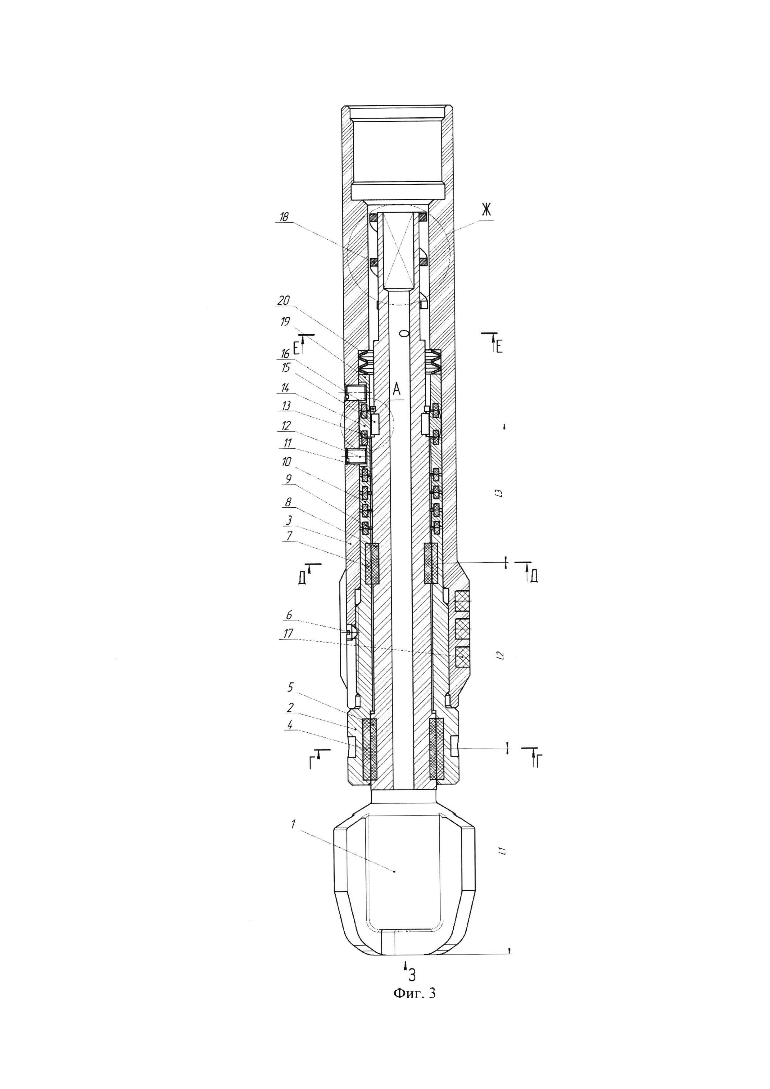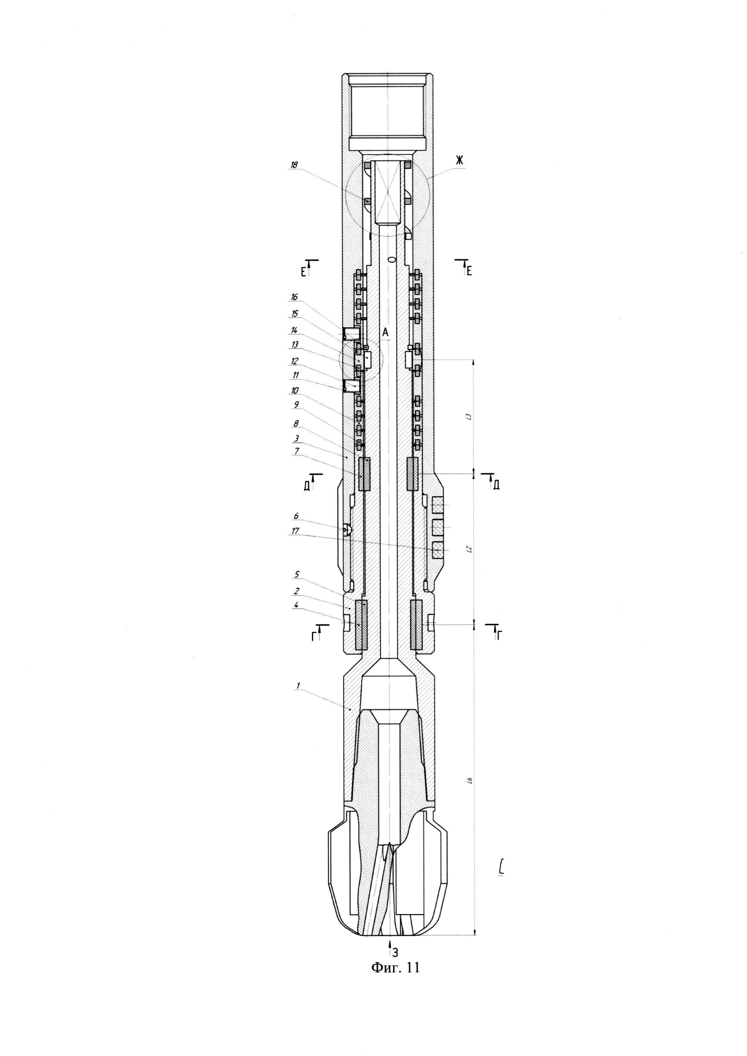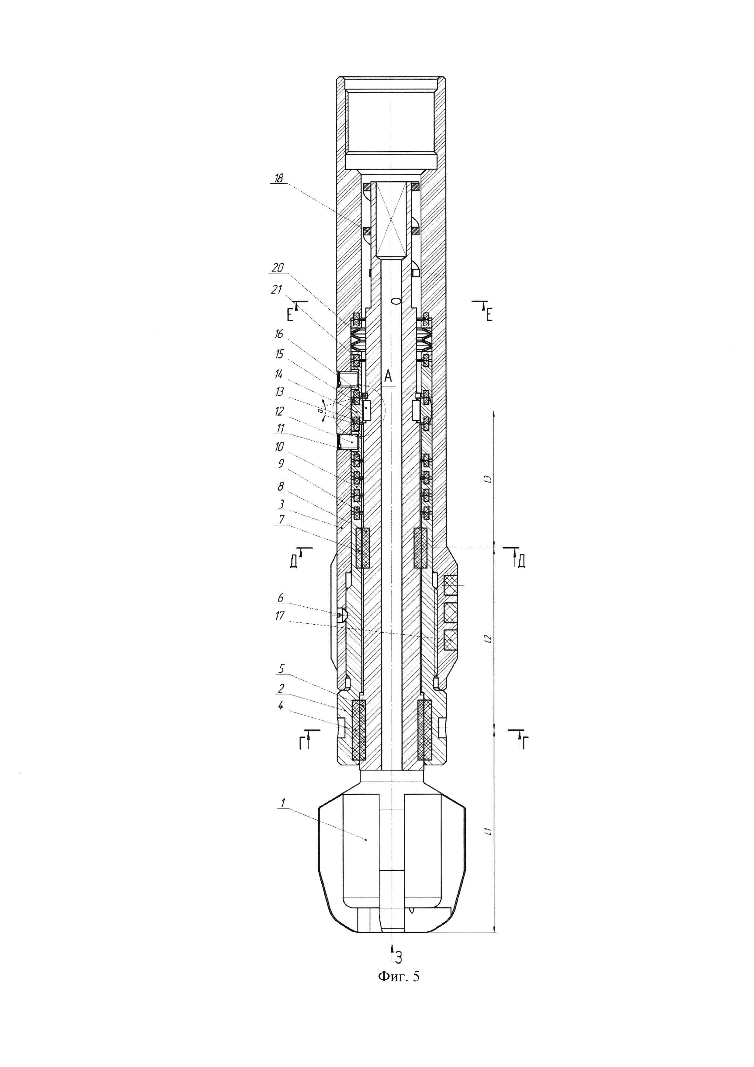 где Рс - допустимая статическая осевая нагрузка на забойный двигатель, а е - расчетная конструктивная деформация быстросъемного комплекта виброгасителей (ход сжатия) эластомера, также путем подбора динамического модуля упругости эластомера Ед=10…100 кгс/см2 в соответствии с твердостью по Шору, где первое значение - для твердых и последнее - для мягких пород, а так же аналитически и конструктивным выбором степеней свободы эластомера.