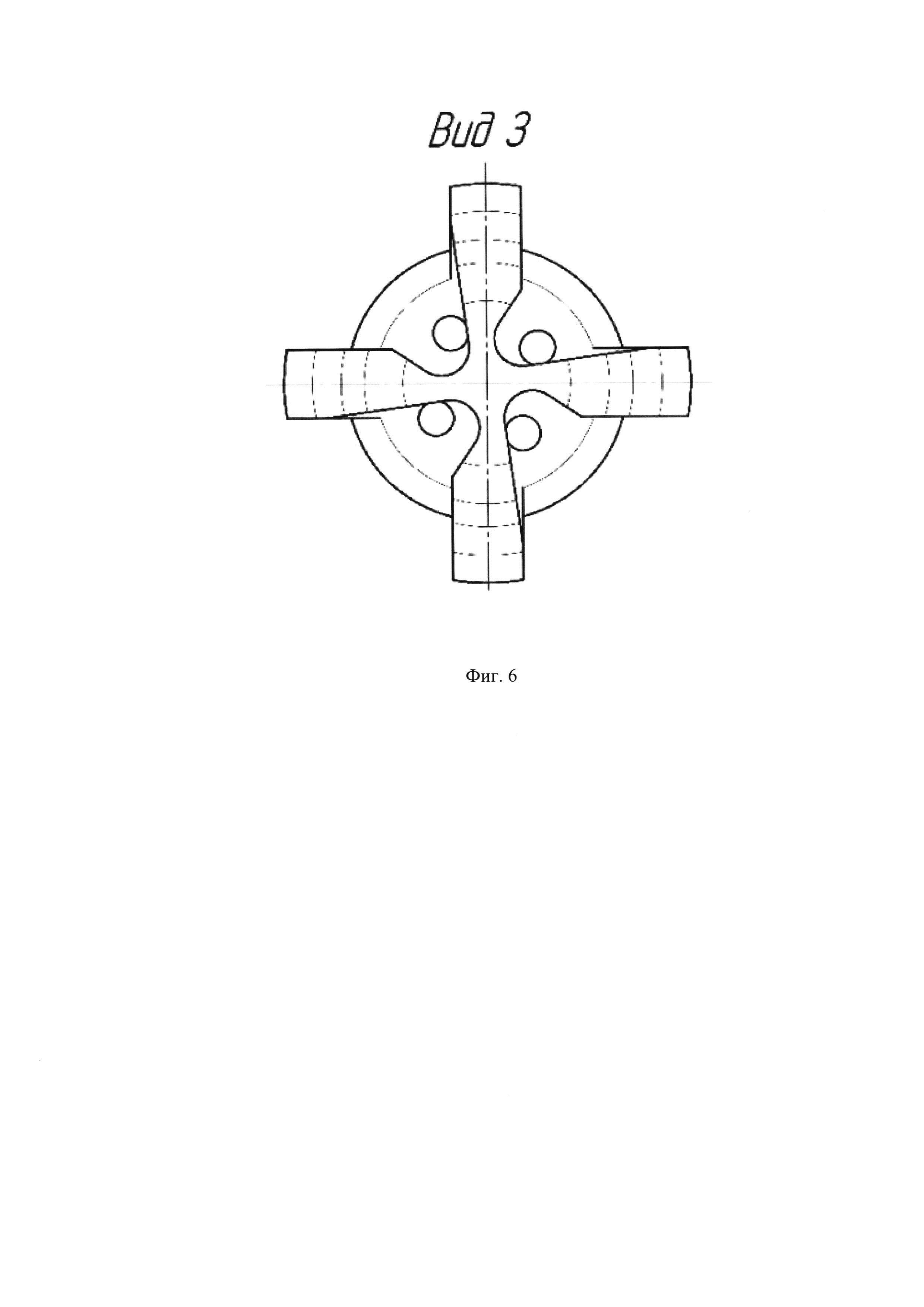 возникающей при разрушении долотной головки забоя конкретной породы, а так же с возможностью восприятия и передачи осевых динамических сил от долота, и от силовых секций малогабаритного забойного двигателя к бурильной компоновки и обратно, одни из которых скомплектованы с наибольшей жесткостью (податливостью), другие - со средней, а третьи с наименьшей или упруго-вязкими, но всегда собственная частота, которая подобранная аналитически, должна быть ниже установленной экспериментально частоты возмущения и с оптимальными коэффициентами передачи и динамичности, при этом вал с проточным осевым каналом, изготовлен за одно целое с долотом, а узел соединения вала с карданной передачей выполнен в виде профилированного многогранника, например квадрата, шестигранника или шлицевым, на наружной поверхности которого (вала), в месте размещения соединительного узла, образована право или лево направленная спиральная одно или многозаходная лопасть, наружная образующая поверхность которой выполнена касательно склоненной к соответственно направленным входным радиальным отверстиям, а те в свою очередь расположены тангенциально к проточному осевому каналу вала и направлены в одну сторону с лопастями, причем осевые опоры скольжения выполнены радиально-упорными, и размещенными с углом установки торцевых поверхностей подпятников с ответными сопрягаемыми поверхностями пяты больше угла трения, а пята размещена на валу либо жестко на резьбе с фиксацией, либо с возможностью осевого, радиального и углового перемещения по средством шпоночного или шлицевого соединения с регламентированными посадочными зазорами, обеспечивающими необходимую степень свободы, а подпятники: верхний - с регламентированным осевым и угловым перемещением относительно вала в соответствии с аналитически и конструктивно подобранной податливостью виброгасителей, нижний - либо тоже установлен свободно-подвижно, либо, при необходимости, жестко вмонтирован на торце ниппеля со степенью свободы равном нулю.