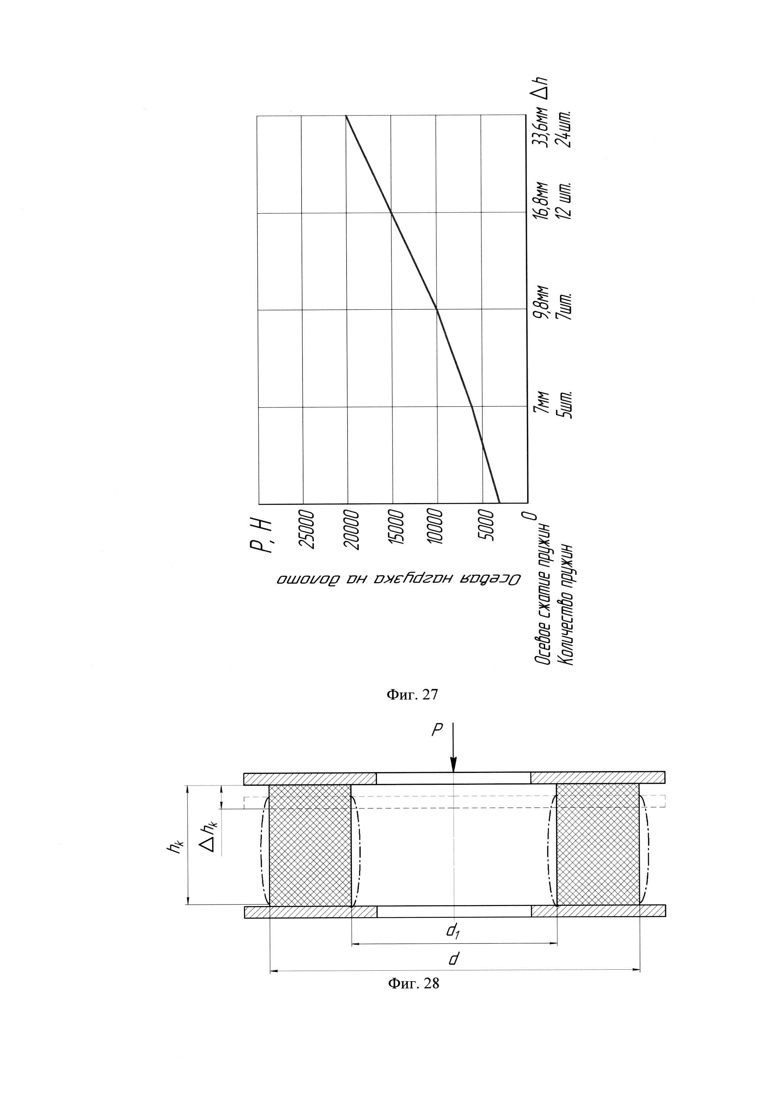 , путем подбора жесткости (податливости) быстросъемного комплекта Кж=Р/(е n), где Р - допустимая статическая осевая нагрузка на забойный двигатель, е - расчетный прогиб одной пружины, а n - количество пружин.