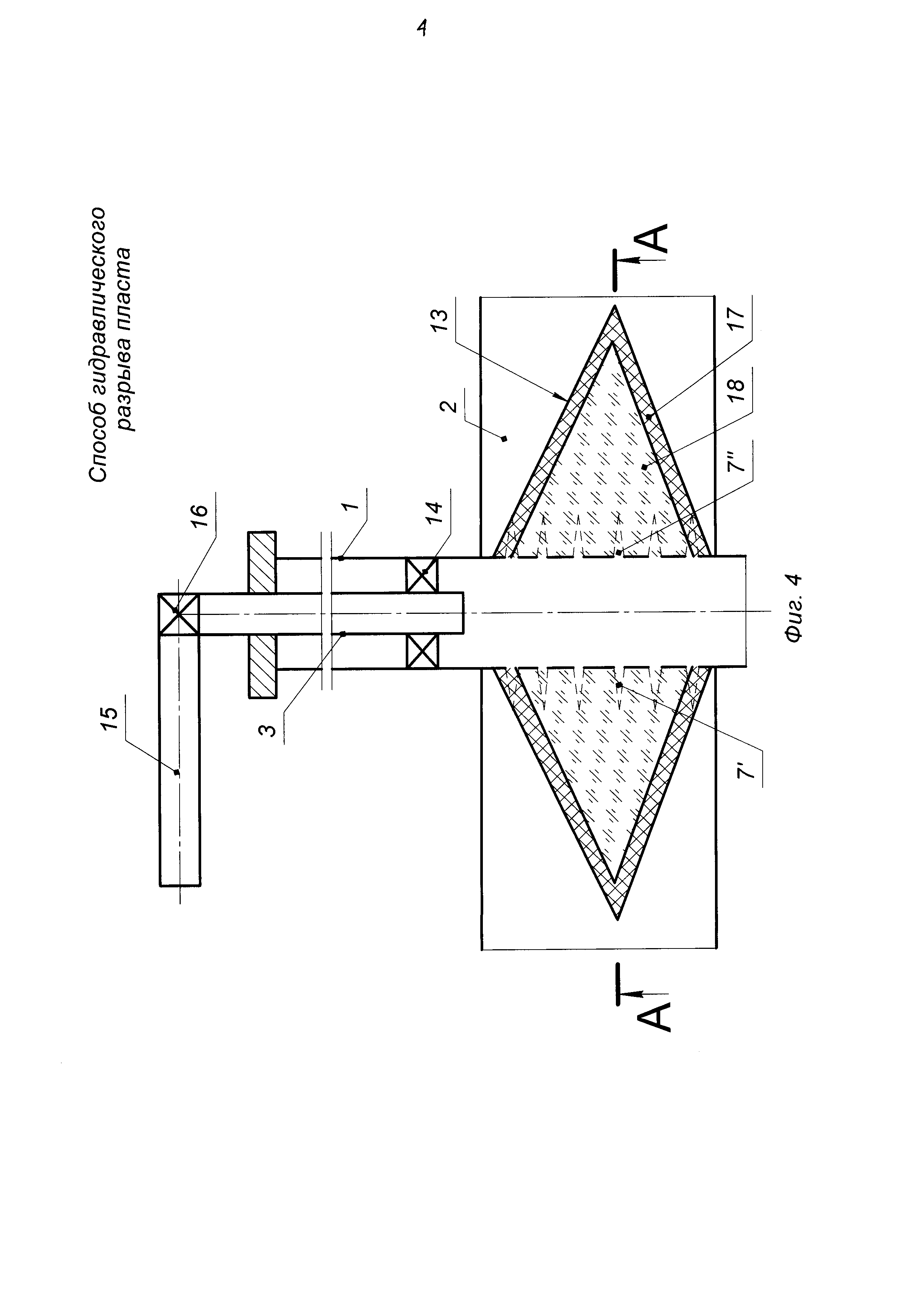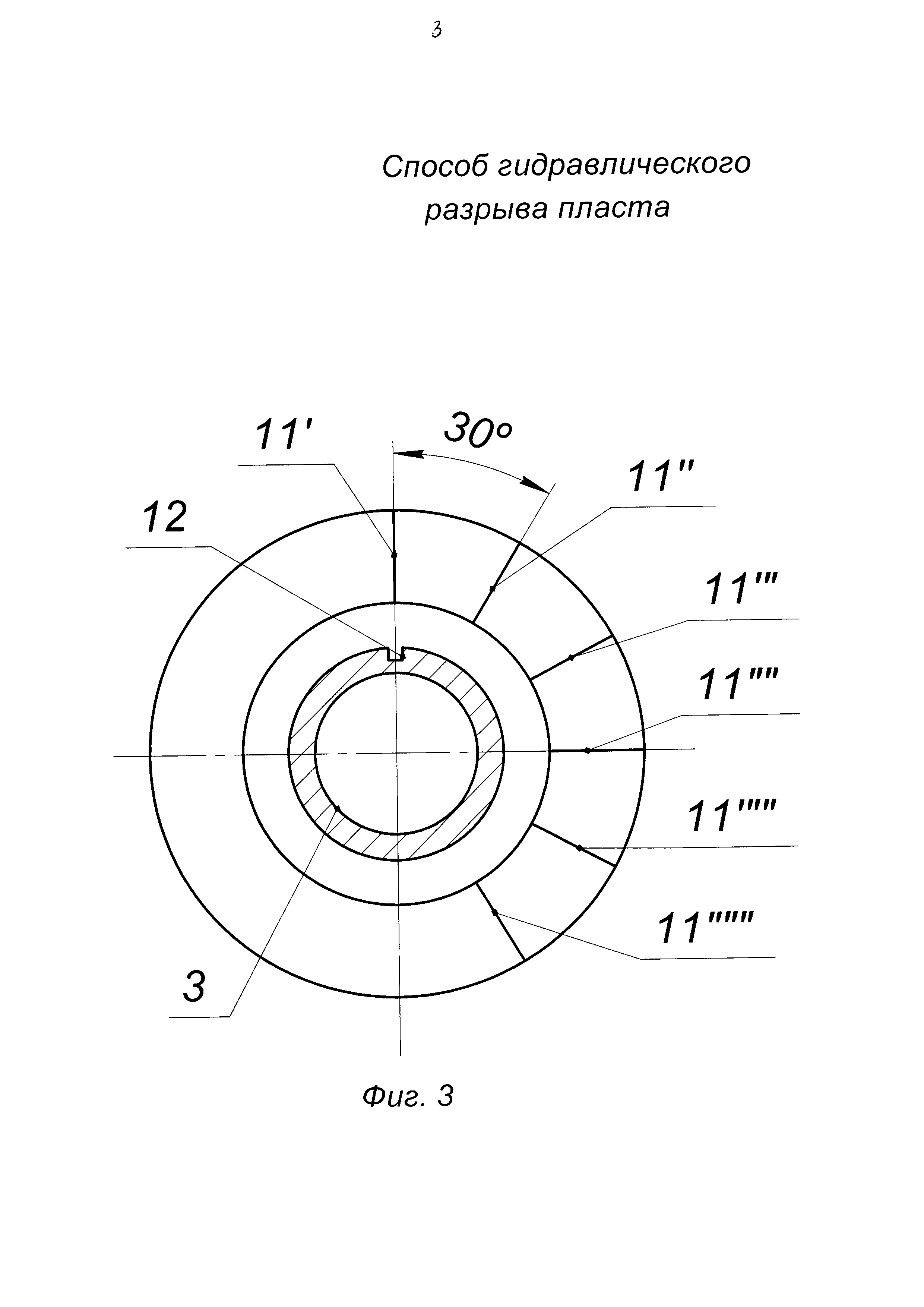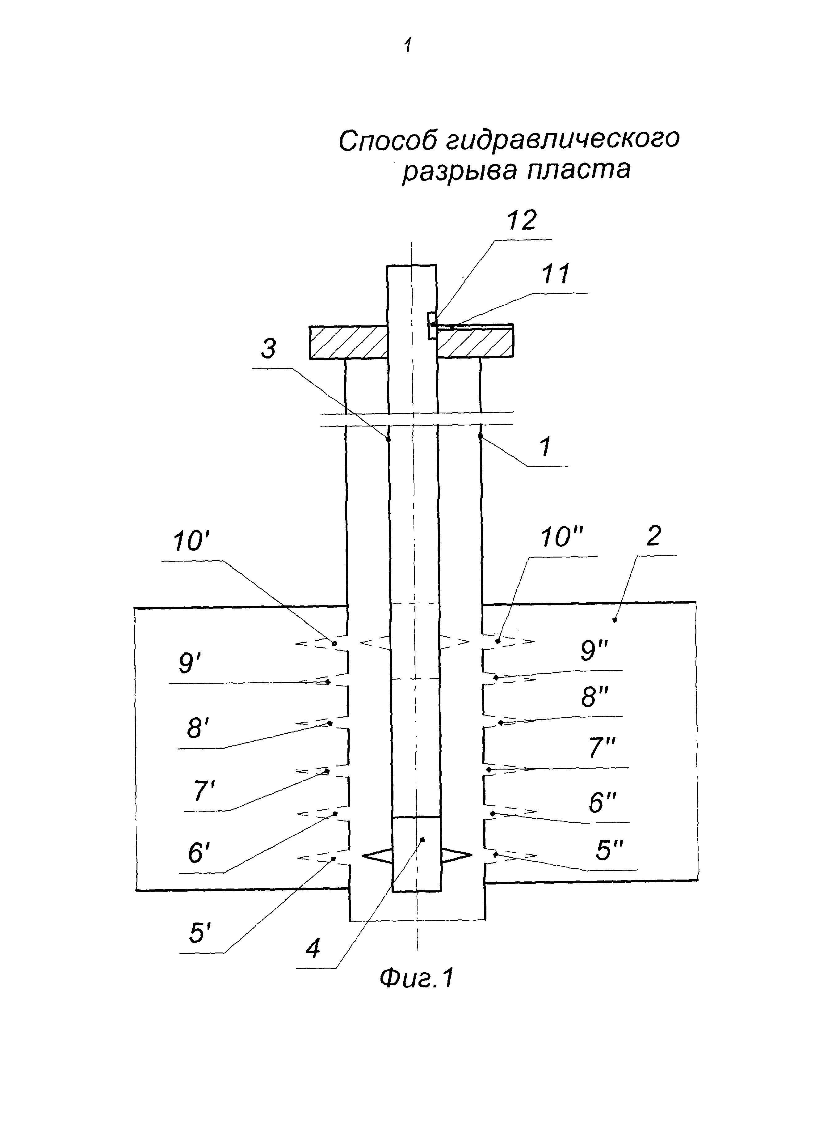 Способ гидравлического разрыва пласта - ГРП, включающий выполнение перфорации в интервале пласта скважины, ориентированной в направлении главного максимального напряжения, спуск колонны насосно-компрессорных труб - НКТ с пакером в скважину, посадку пакера, проведение ГРП закачиванием гидроразрывной жидкости по колонне НКТ с пакером через интервал перфорации в продуктивный пласт с образованием и последующим креплением трещины проппантом, стравливание давления из скважины, отличающийся тем, что для выполнения перфорации в скважину до интервала подошвы пласта спускают гидромеханический перфоратор на колонне НКТ, выполняют пары перфорационных отверстий по периметру скважины от подошвы к кровле пласта со смещением на угол 30° при выполнении каждой пары перфорационных отверстий, после выполнения перфорации колонну НКТ с перфоратором извлекают из скважины, затем в скважину спускают колонну НКТ с пакером и производят посадку пакера в скважине, перед проведением ГРП последовательно определяют объемы гидроразрывной жидкости для образования трещины, эластомера, добавляемого в гидроразрывную жидкость, проппанта для крепления трещины, далее производят ГРП, при этом в качестве гидроразрывной жидкости применяют гелированную нефть, объем гелированной нефти делят на две равные порции, причем первой порцией закачивают первую половину объема гелированной нефти и проводят ГРП с образованием трещины, а второй порцией закачивают вторую половину объема гелированной нефти с добавлением гранулированного водонабухающего эластомера для создания водоизолирующего экрана по всей поверхности трещины из гранулированного водонабухающего эластомера, затем производят крепление трещины закачкой жидкости-носителя сшитого геля с проппантом сначала мелкой фракции 20/40 меш в количестве 55-60% от общей массы проппанта, а затем крупной фракции 16/20 меш в количестве 40-45% от общей массы проппанта со ступенчатым увеличением концентрации проппанта на 100 кг/м3, начиная от 200 кг/м3 до 1200 кг/м3.