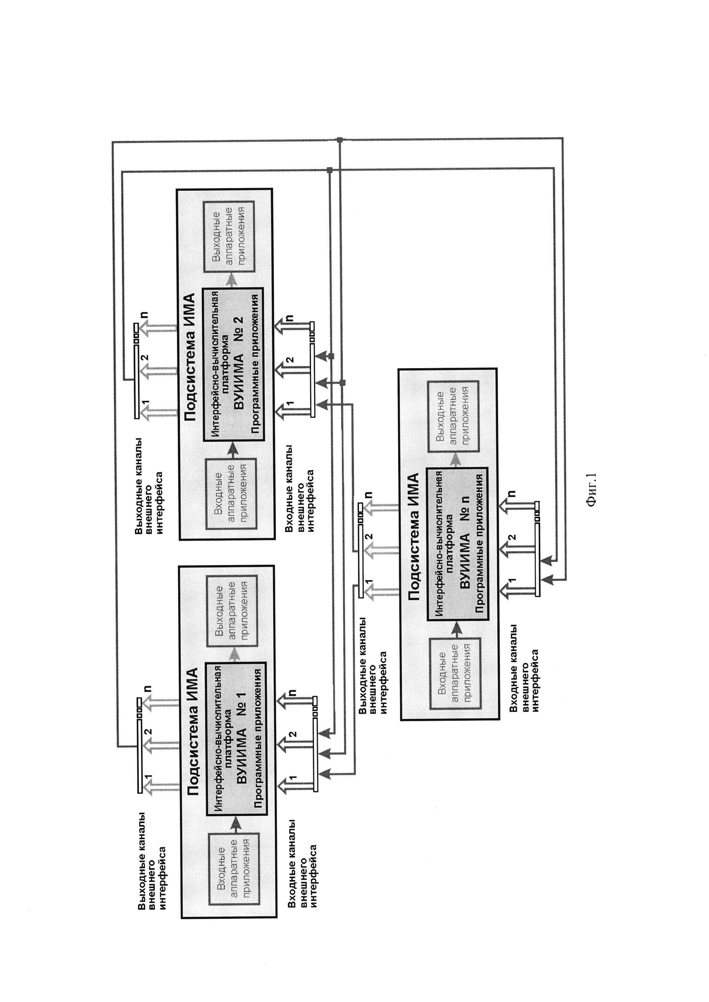 1. Архитектура системы отказоустойчивой коммутации информации, состоящая из N модулей, каждый из которых предназначен для формирования информации и состоит из входных аппаратных приложений, предназначенных для загрузки информации датчиков и радиотехнических средств в интерфейсно-вычислительную платформу, а также выходных аппаратных приложений для терминалов и исполнительных органов, интерфейсно-вычислительной платформы каждого модуля, включает четыре вычислительных узла и два коммутатора, предназначенных для коммутирования информации каждого из четырех каналов, обрабатываемой в каждом вычислительном узле, для осуществления коммутирования определяют исправный вычислительный узел путем мажоритарного сравнения информации, обрабатываемой в каждом вычислительном узле, и коммутируют ее на выходные каналы только с одного исправного вычислительного узла, при этом управление избыточностью модуля за счет четырех избыточных вычислительный узлов, управление временными циклограммами для обмена информацией между модулями по каждому типу интерфейса, а также определение исправного вычислительного узла путем мажоритарного сравнения информации осуществляют с помощью каждого вычислительного узла каждого модуля, обмен информацией между модулями реализуют коммутаторами интерфейсно-вычислительной платформы через выходы каждого модуля, которые соединены с соответствующими входами остальных модулей по принципу «точка-точка». 2. Архитектура системы по п. 1, отличающаяся тем, что каждый модуль может включать в себя n коммутаторов, обеспечивающих управление избыточностью модуля посредством его реконфигурации.