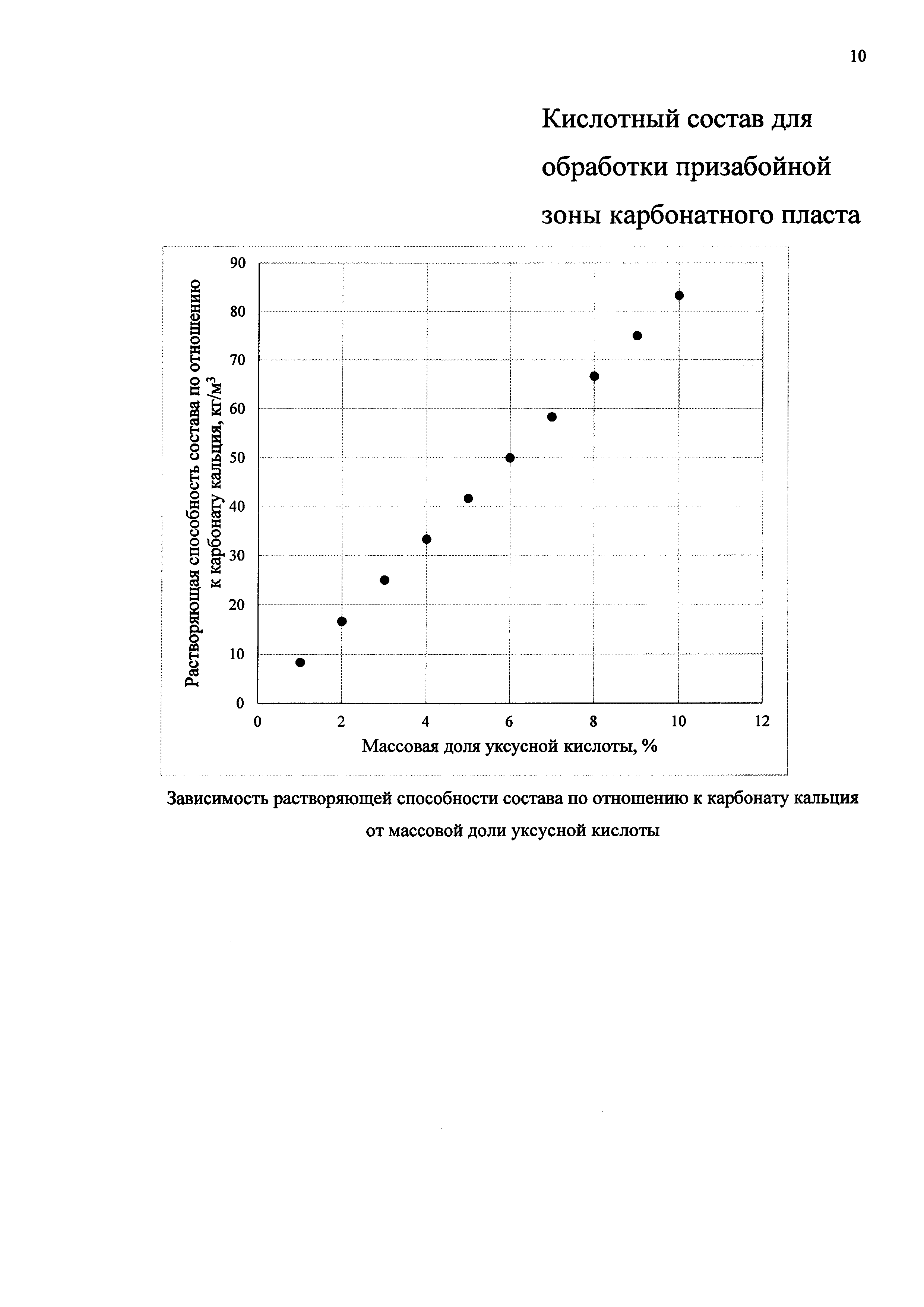 Изобретение относится к нефтедобывающей промышленности и может быть использовано при кислотной обработке призабойной зоны карбонатного пласта. Технический результат - повышение эффективности проведения кислотной обработки карбонатного пласта за счет снижения коррозионной активности по отношению к промысловому оборудованию, выполненному из стали, и повышение растворяющей способности кислотного состава по отношению к карбонатному пласту. Кислотный состав для обработки призабойной зоны пласта содержит, мас.%: сульфаминовую кислоту 5,0-15,0; поверхностно-активное вещество - ПАВ 0,05-1,5; уксуснокислый аммоний 0-6,0; уксусную кислоту 1,0-10,0; ингибитор коррозии и воду, отличающийся тем, что указанный состав дополнительно содержит уксусную кислоту 0,1-1,5; воду с минерализацией не более 1 г/дмостальное. В качестве ПАВ используют оксиэтилированный алкилфенол или водно-спиртовой раствор неионогенных ПАВ (моноалкилфениловый эфир полиэтиленгликоля 90 мас.% и алкилдиметилбензиламмоний хлорид 10 мас.%), в качестве ингибитора коррозии - карбамид, или тиомочевину, или смесь карбамида и тиомочевины в массовом соотношении 1:1, или нейтинг. 1 ил., 1 табл.