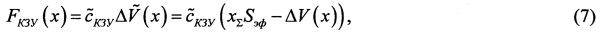 , сКЗУ - коэффициент жесткости, ΔV(x) - объем конструкции КЗУ, расположенный над уровнем топлива, КУС - коэффициент удерживающей способности КФР, Δpсум - суммарные потери напора топлива на КФР, учитывающие гидравлические потери, потери на воздействие вибраций и динамические потери.