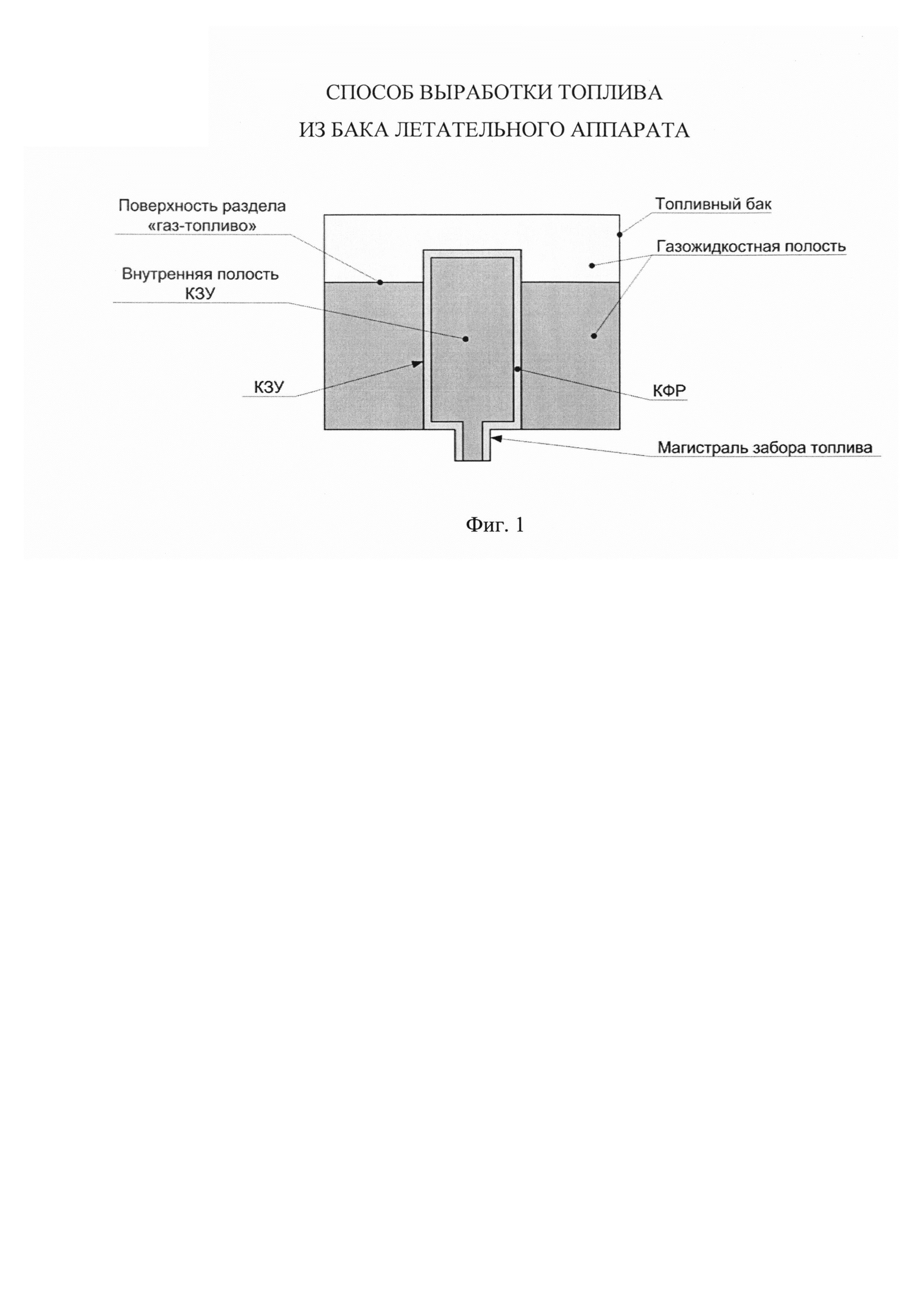 Изобретение относится к способам выработки топлива из бака высокоманевренного летательного аппарата (ЛА), использующего капиллярные заборные устройства (КЗУ). Известны способы выработки топлива из бака ЛА, основанные на использовании различных физических принципов: механического (инерционные, эластичные и металлические разделители газовой и жидкой фаз и др.), капиллярного (сеточные и пористые фазоразделители), комбинированного (сочетание механического и капиллярного способов) и другие, реализованные в различных устройствах. Известны способы выработки топлива из бака ЛА с использованием эластичных мешков, металлических диафрагм и сильфонов (Козлов Α.Α., Новиков В.Н., Соловьев Е.В. Системы питания и управления жидкостных ракетных двигательных установок. М.: Машиностроение, 1988. С. 291. Рис. 4.15, 4.16, 4.17). Они обеспечивают высокую степень выработки топлива, но практически неприменимы в конструкциях ЛА, имеющих сложную (кольцевую и т.п.) форму бака, например, в ЛА с прямоточным воздушно-реактивным двигателем с центральным воздухозаборником, внутренние полости бака которых загромождены агрегатами и транзитными трубопроводами. Широкое применение в ЛА нашли инерционные заборные устройства (Козлов Α.Α., Новиков В.Н., Соловьев Е.В. Системы питания и управления жидкостных ракетных двигательных установок. М.: Машиностроение, 1988. С. 290. Рис. 4.13, 4.14). Основным недостатком этих устройств является низкая чувствительность к воздействию малых и нечувствительность к нулевым перегрузкам, которые имеют место при маневрировании ЛА, что приводит к нарушению сплошности потока топлива на входе в маршевый двигатель (МД). Капиллярный способ выработки топлива нашел применение в космической технике (Капиллярные системы отбора жидкости из баков космических летательных аппаратов / В.В. Багров [и др.]. Под ред. проф. В.М. Поляева. М.: УНПЦ «Энергомаш», 1997), а также в атмосферных ЛА (Пневмогидравлические системы двигательных установок с жидкостными ракетными двигателями / В.Н. Челомей [и др.]. М.: Машиностроение, 1978. С. 26. Рис. 27). Вместе с тем, основным недостатком этого способа является существенная зависимость удерживающей способности КЗУ от перегрузок и изменения физических свойств топлива при изменении (росте) температуры в полете, характерном для функционирования атмосферных ЛА. Наиболее близким к предлагаемому является способ, реализованный в комбинированной инерционно-капиллярной системе выработки топлива, представленной в патенте РФ №2497724, который рассматривается в качестве ближайшего аналога. Расходный отсек бака (последний по выработке в баке) разделен на две соединенные последовательно емкости. В последней из них по выработке установлено КЗУ, в предыдущей - инерционные переливные устройства. Инерционные переливные устройства обеспечивают перелив топлива в емкость с КЗУ без газовых включений при воздействии перегрузок в процессе маневрирования ЛА. При смене знака перегрузок сплошность потока на входе в МД обеспечивается КЗУ. Преимущество такого способа выработки топлива заключается в том, что он может быть применен в баке сложной конфигурации, в том числе и в баке кольцевого сечения, внутри которого располагаются агрегаты системы наддува и магистральные трубопроводы. Недостатком такого способа является то, что остаток топлива в емкости, в кот