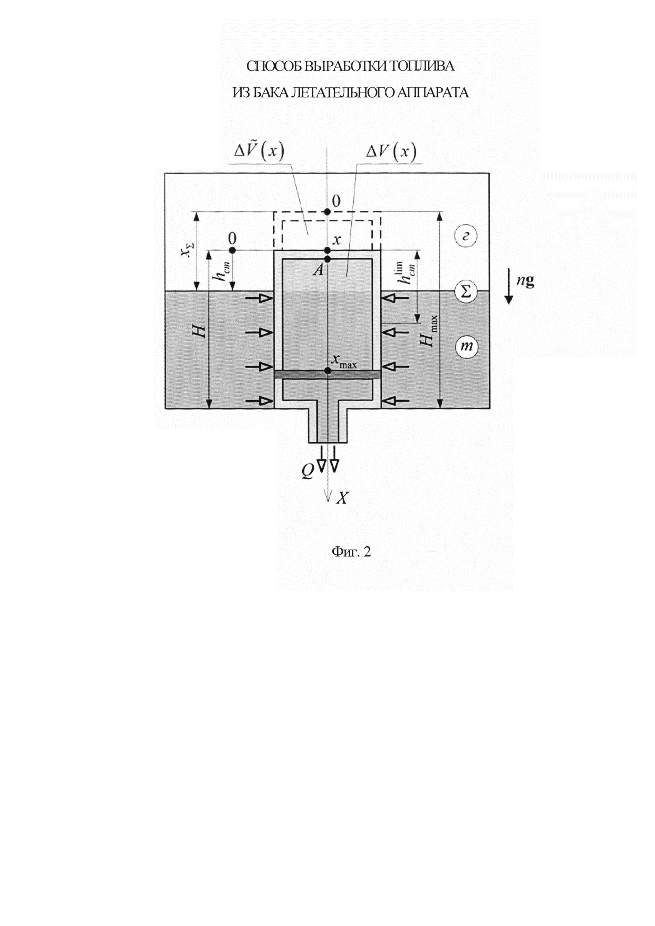 Изобретение относится к выработке топлива из бака летательного аппарата. Способ выработки топлива из бака летательного аппарата, оснащенного капиллярным заборным устройством, заключается в том, что выработку топлива из бака проводят через капиллярное заборное устройство до объема остатка топлива в баке. Объем остатка топлива определяется удерживающей способностью и гидравлическим сопротивлением капиллярного фазового разделителя. В процессе выработки топлива уменьшают объем КЗУ так, чтобы его высота над уровнем топлива в баке в направлении действия перегрузки () была меньше высоты гидростатического столба, удерживаемого силами поверхностного натяжения капиллярного фазового разделителя (). Изобретение позволяет обеспечить минимальный остаток при выработке топлива из бака в условиях эксплуатации летательного аппарата. 1 з.п. ф-лы, 3 ил.