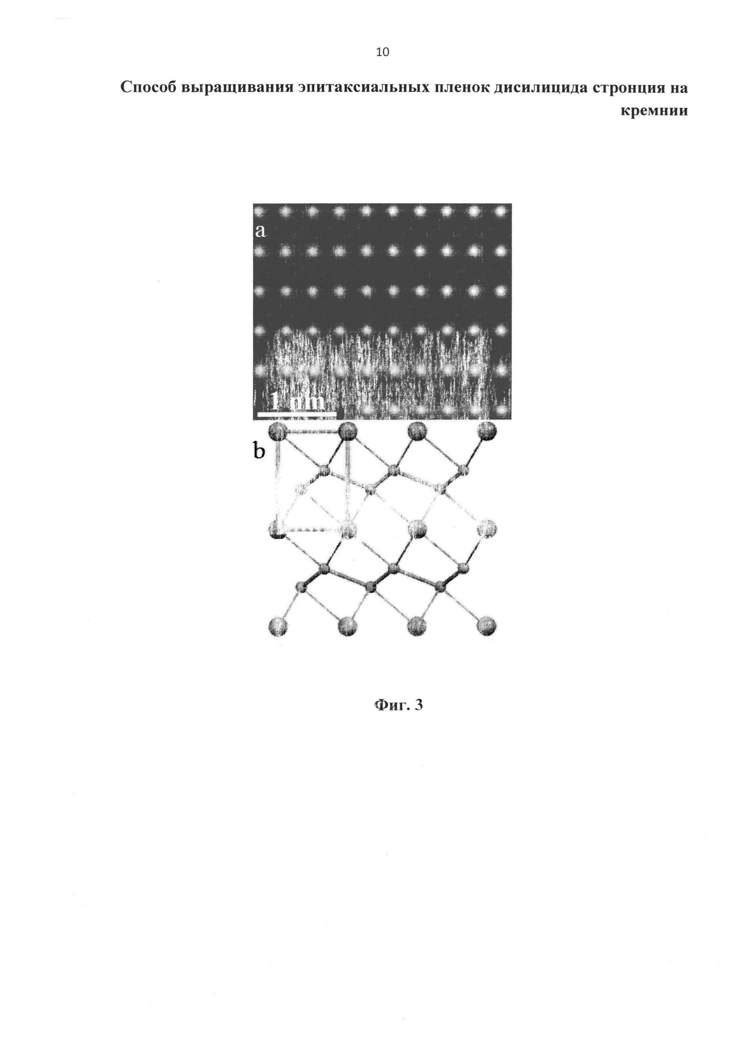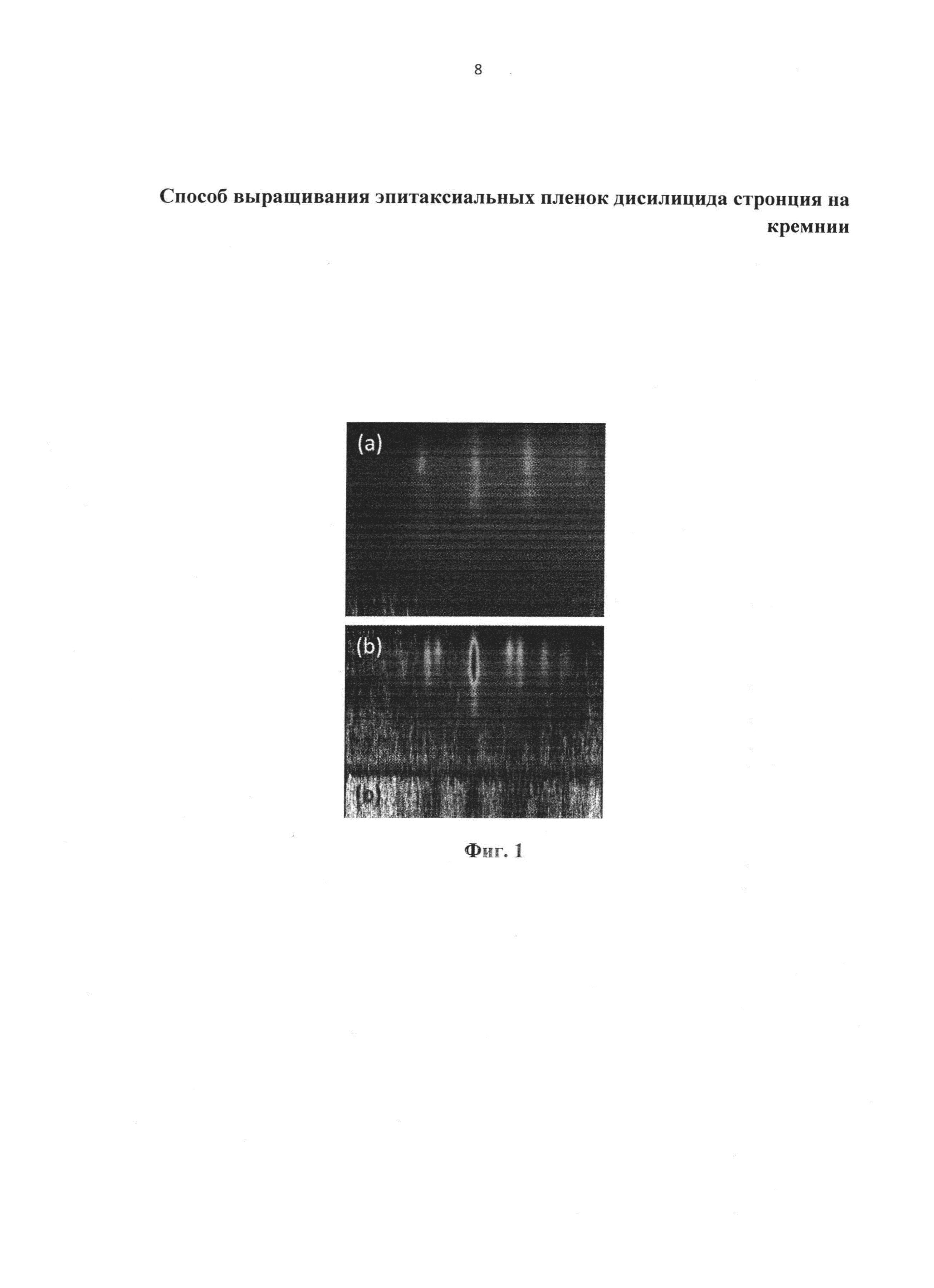 1. Способ выращивания эпитаксиальной пленки дисилицида стронция SrSi2 на кремниевой подложке методом молекулярно-лучевой эпитаксии, заключающийся в осаждении атомарного потока стронция с давлением PSr=(0,5÷3)×10-8 Торр на предварительно очищенную поверхность подложки кремния, нагретую до Ts=500±20°C до формирования пленки дисилицида стронция требуемой толщины. 2. Способ по п. 1, отличающийся тем, что кремний имеет ориентацию подложки Si(100). 3. Способ по п. 2, отличающийся тем, что кремний имеет ориентацию подложки Si(111).