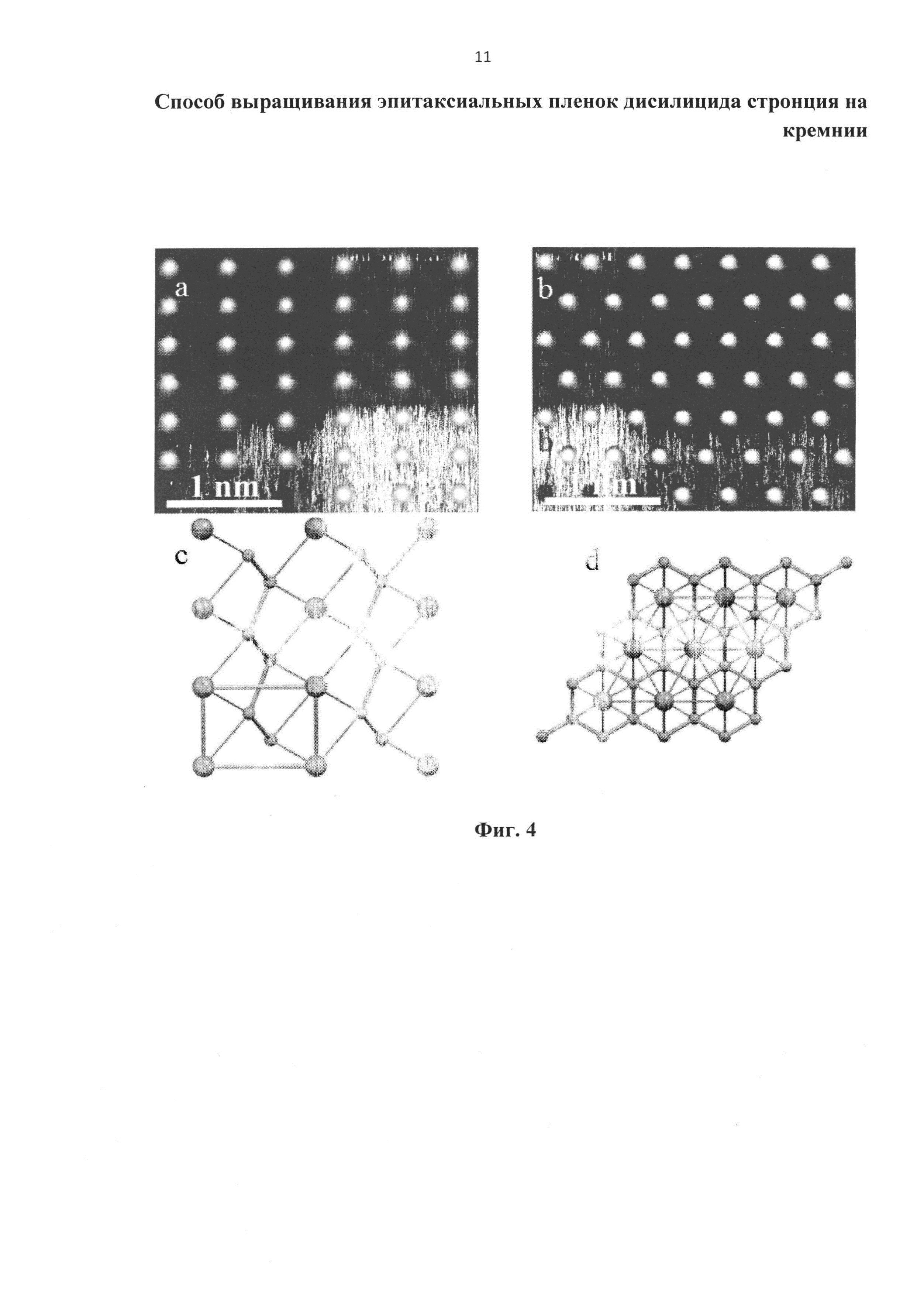 . Ростовой цикл длится до получения пленки необходимой толщины. Для предотвращения воздействия на SrSi2 воздуха при выносе образца из камеры, по окончании роста пленка закрывается сплошным защитным слоем, например оксидом кремния толщиной от 2 нм.