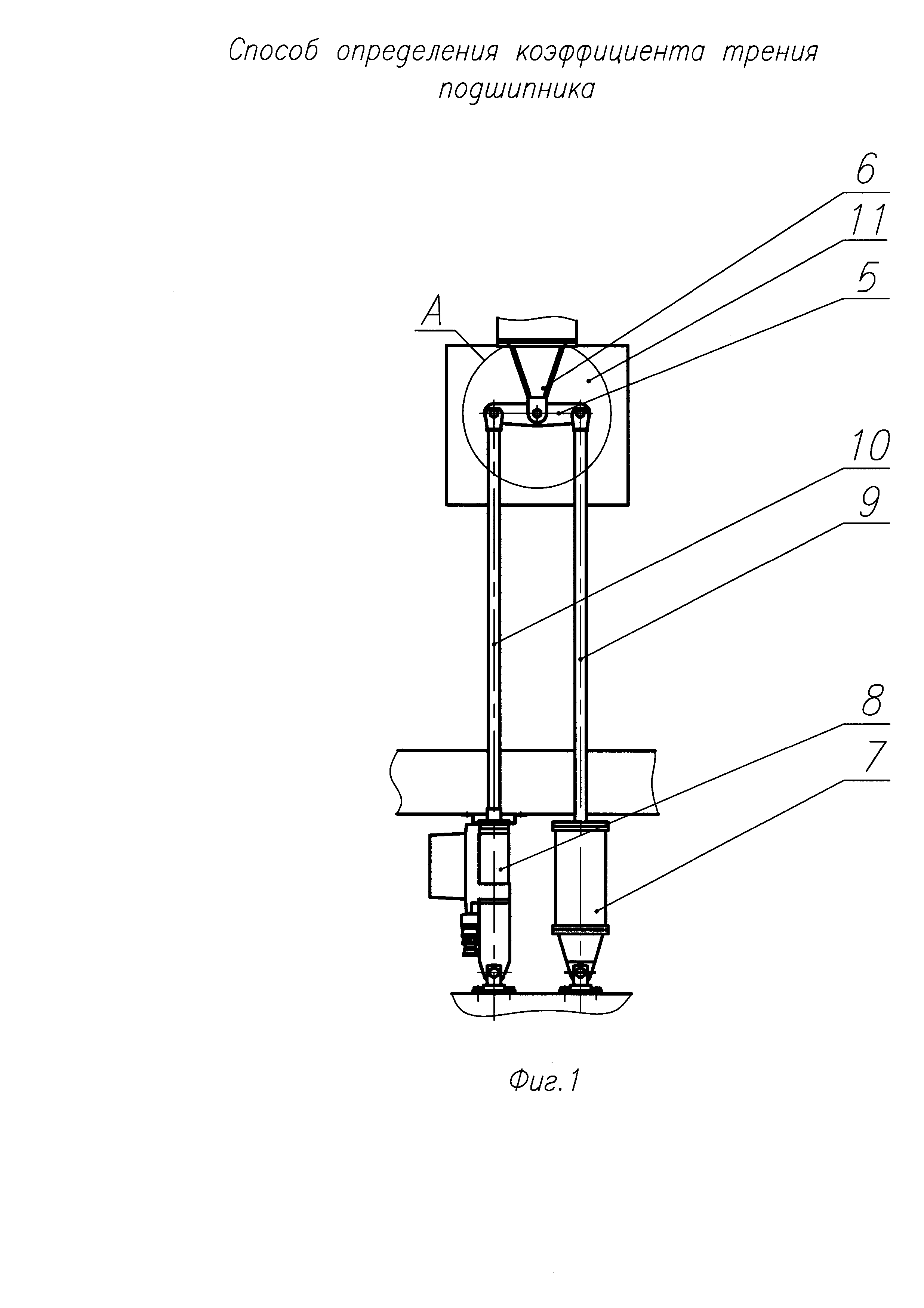 Способ определения коэффициента трения подшипника, заключающийся в создании усилия на подшипник от нагрузочного устройства, отличающийся тем, что создается дополнительное усилие от силовозбудителя, причем усилия, приложенные к подшипнику от нагрузочного устройства и от силовозбудителя, создаются на равных, но противоположных плечах с последующим расчетом коэффициента трения по формуле: