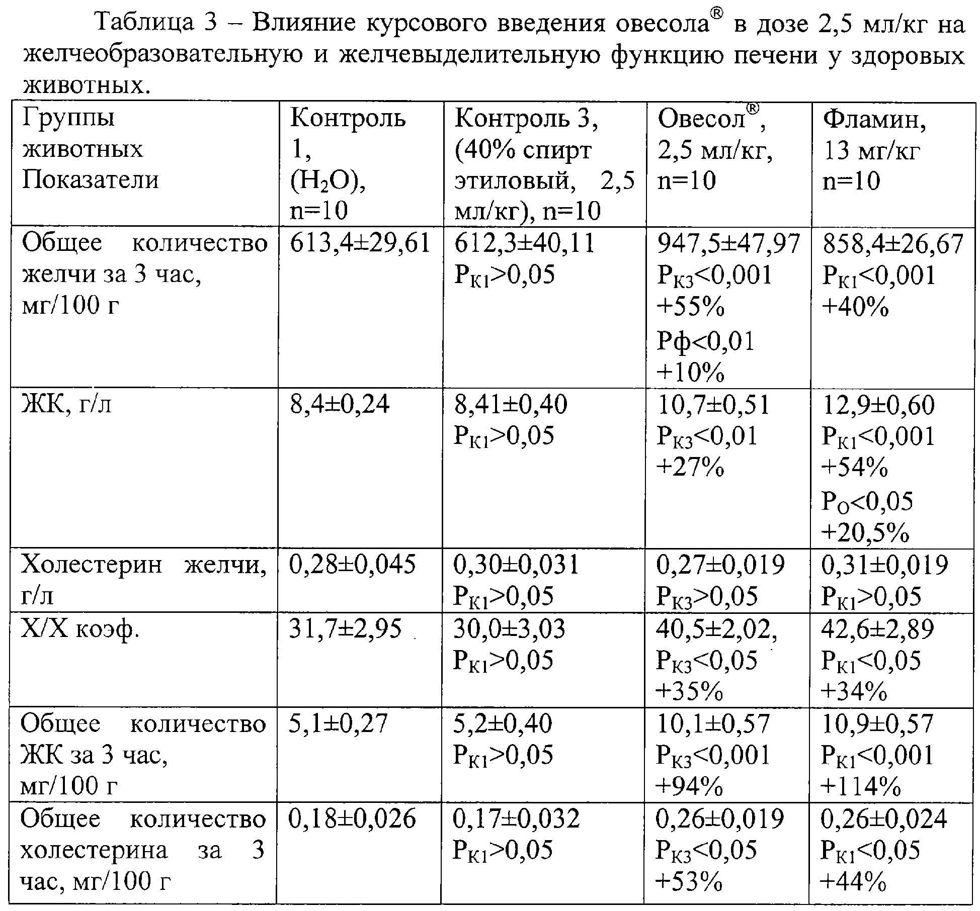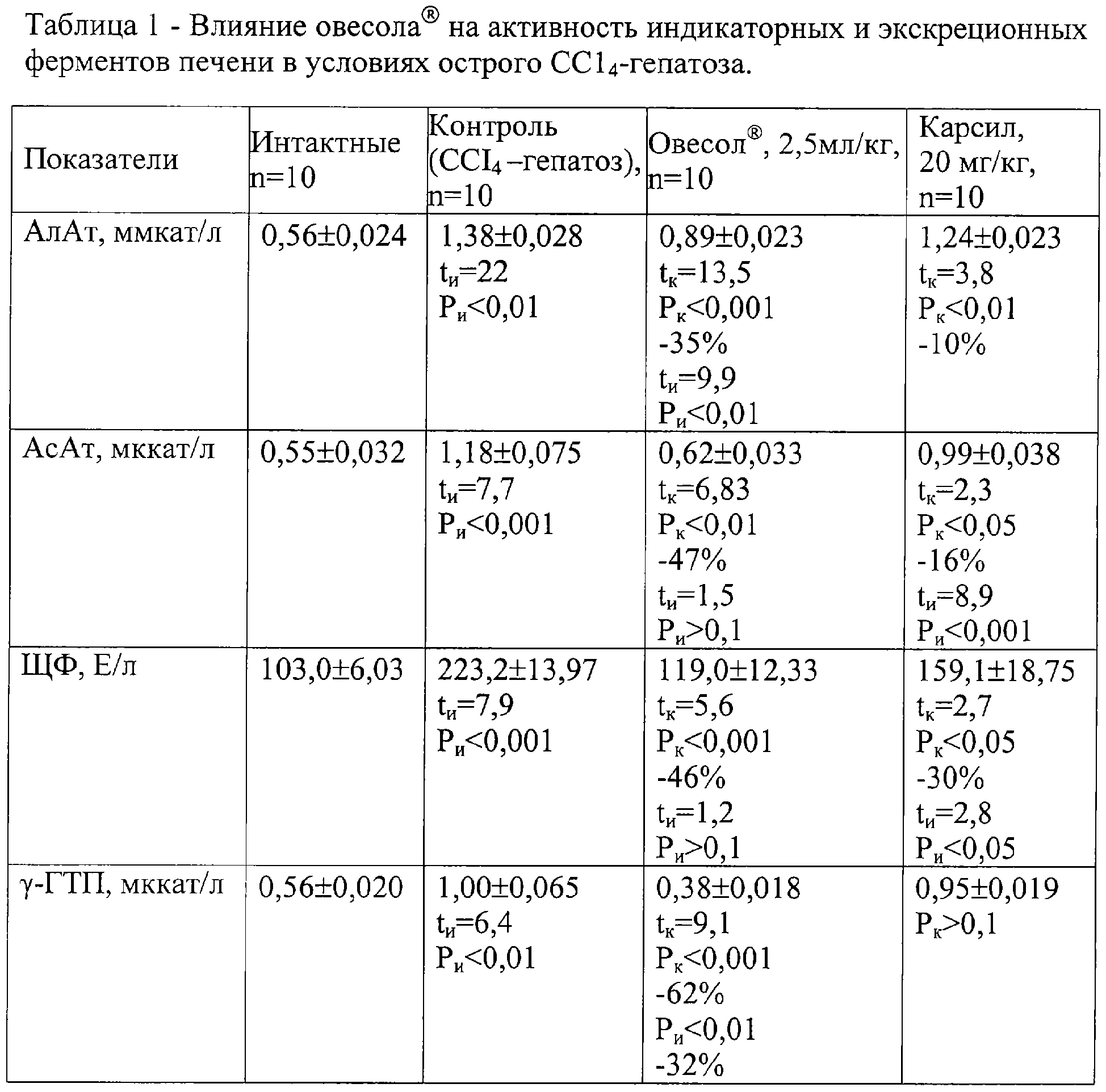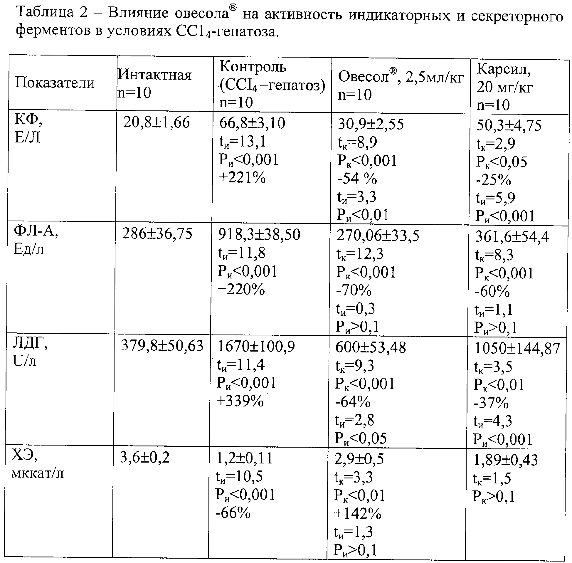 Результаты приведены в таблице. Курсовое введение овесола в дозе 2,5 мл/кг