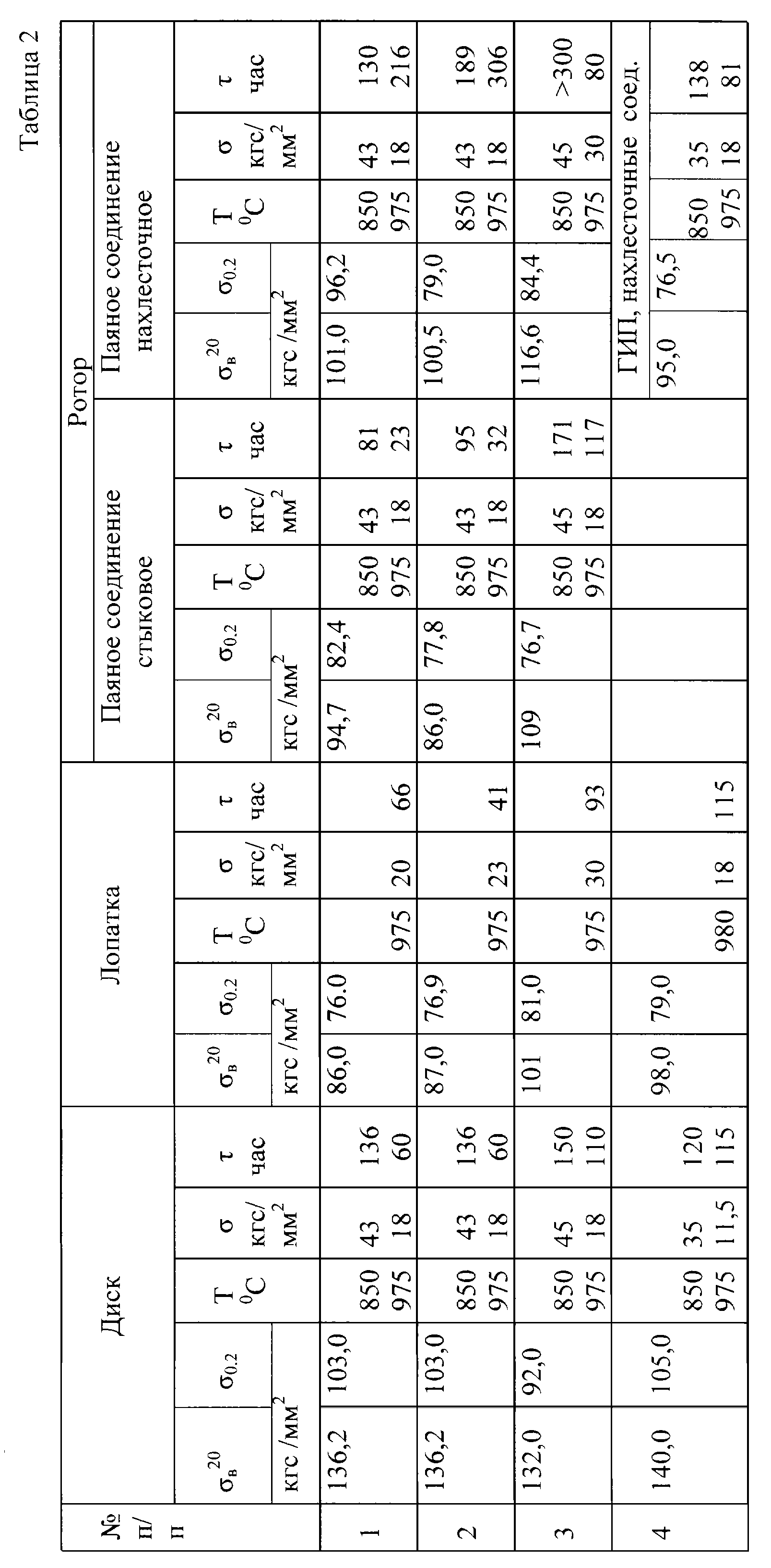прочность при максимальной рабочей температуре обода диска - 850oС и рабочей температуре лопатки - 975oС. В таблице 2 представлены свойства предлагаемого ротора и
