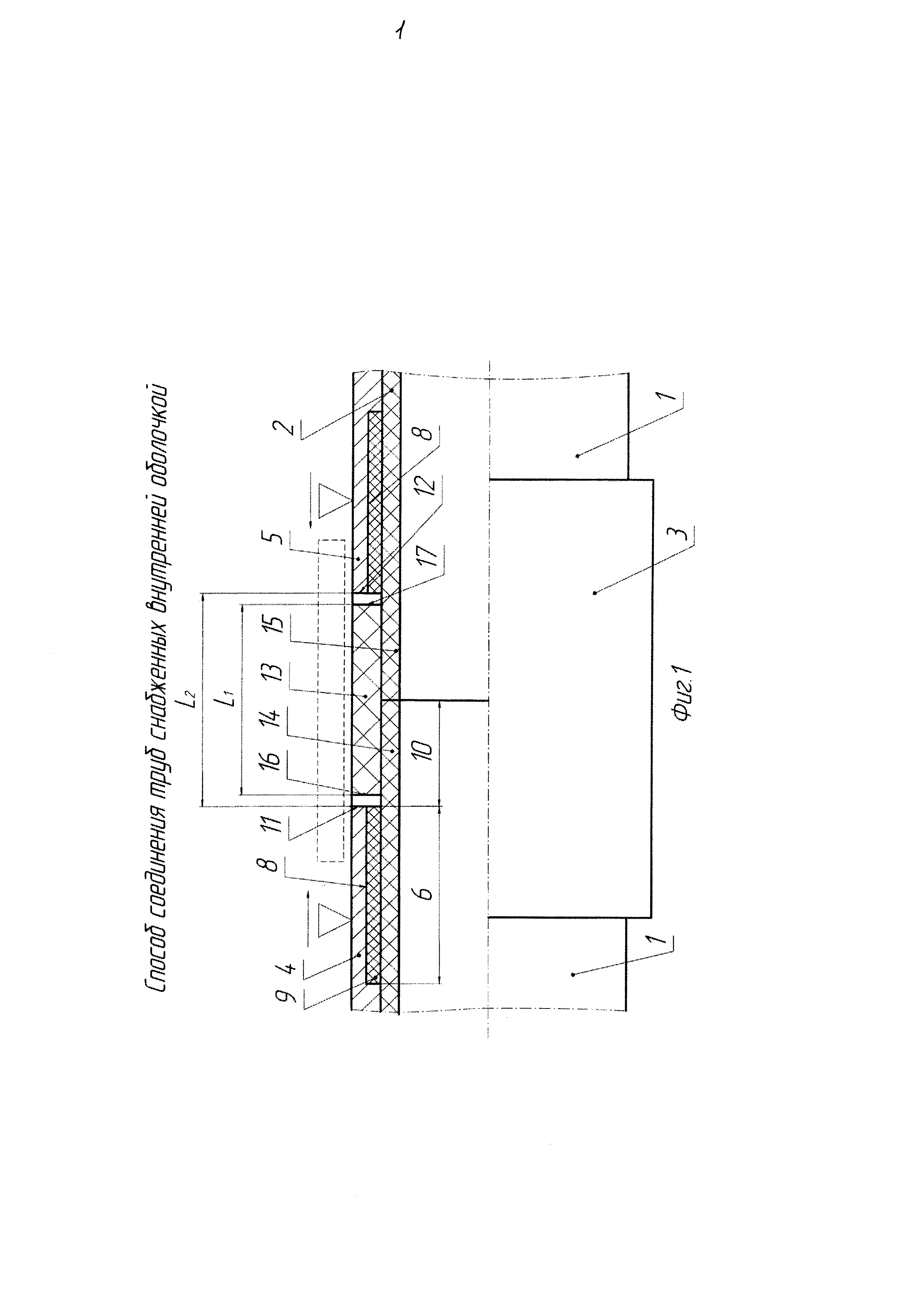 Изобретение относится к технологии соединения труб с внутренним покрытием. Известен способ соединения труб, снабженных внутренней оболочкой (патент RU №2236628, МПК F16L 13/02, опубл. 20.09.2004 г. в бюл. №26), включающий герметичное соединение внутренних оболочек с последующим соединением труб стаканом при помощи сварки, причем перед соединением труб стаканом на концах труб на длину зоны активного термического влияния сварки между внутренней поверхностью трубы и внутренней оболочкой размещают термоизоляционный материал, при этом внутренняя оболочка выступает за концы труб на длину, достаточную для герметичного соединения внутренних оболочек, затем стыкуют внутренние оболочки с последующим их герметичным соединением, например свариванием, после чего для придания монолитности конструкции внутреннее пространство между торцами труб заполняют непластичным материалом, причем стакан устанавливают снаружи на место соединения труб с равномерным перекрытием концов труб, а концы стакана присоединяют к трубам сваркой, при этом в качестве оболочки используют все материалы, предназначенные для футерования внутренней поверхности труб. Недостатками данного способа являются: - во-первых, высокая стоимость осуществления способа, связанная с необходимостью точного изготовления непластичного материала для его плотного прилегания к торцам труб, причем делается это индивидуально каждого стыка в отдельности; - во-вторых, низкая надежность данного способа, связанная с тем, что соединение непластичного материала происходит только по одному стыку, что может привести к потере герметичности трубопровода при последующей его эксплуатации. Также известен способ соединения металлических труб, снабженных внутренней оболочкой из термопластического материала (патент SU №1188437, МПК F16L 13/11, опубл. 30.10.1985 г. в бюл. №40), включающий сварку внутренних оболочек с последующей герметизацией металлических труб, при этом с целью повышения надежности соединения после сварки смежных концов оболочек срезают наплыв шва, смыкают концы металлических труб и герметизируют. Данный способ осуществляют следующим образом: после стыковки внутренней оболочки ее герметично соединяют сваркой, затем срезают наплыв сварного шва и смыкают концы металлических труб и их герметизируют наружным стаканом при помощи сварки либо резьбового соединения. Недостатками данного способа являются негарантируемая надежность и долговечность соединения внутренней термопластичной оболочки из-за наличия внутреннего напряжения, которое приводит к отслоению и возникновению вздутостей оболочки на концах труб, что приводит при большом количестве стыков в результате перепадов давления во внутритрубном пространстве к отслоению оболочки от металлической трубы и, как следствие, к разрушению внутренней оболочки в результате ее "схлопывания", то есть к втягиванию оболочки к центру трубы с перекрытием проходного ее сечения. Наиболее близким по технической сущности является способ соединения труб, снабженных внутренней оболочкой (патент RU №2232334, МПК F16L 13/02, опубл. 10.07.2004 г. в бюл. №19), включающий герметичное соединение внутренних оболочек с последующим соединением труб стаканом при помощи сварки, причем перед соединением труб стаканом на концах труб на длину зоны активного термического влияни
