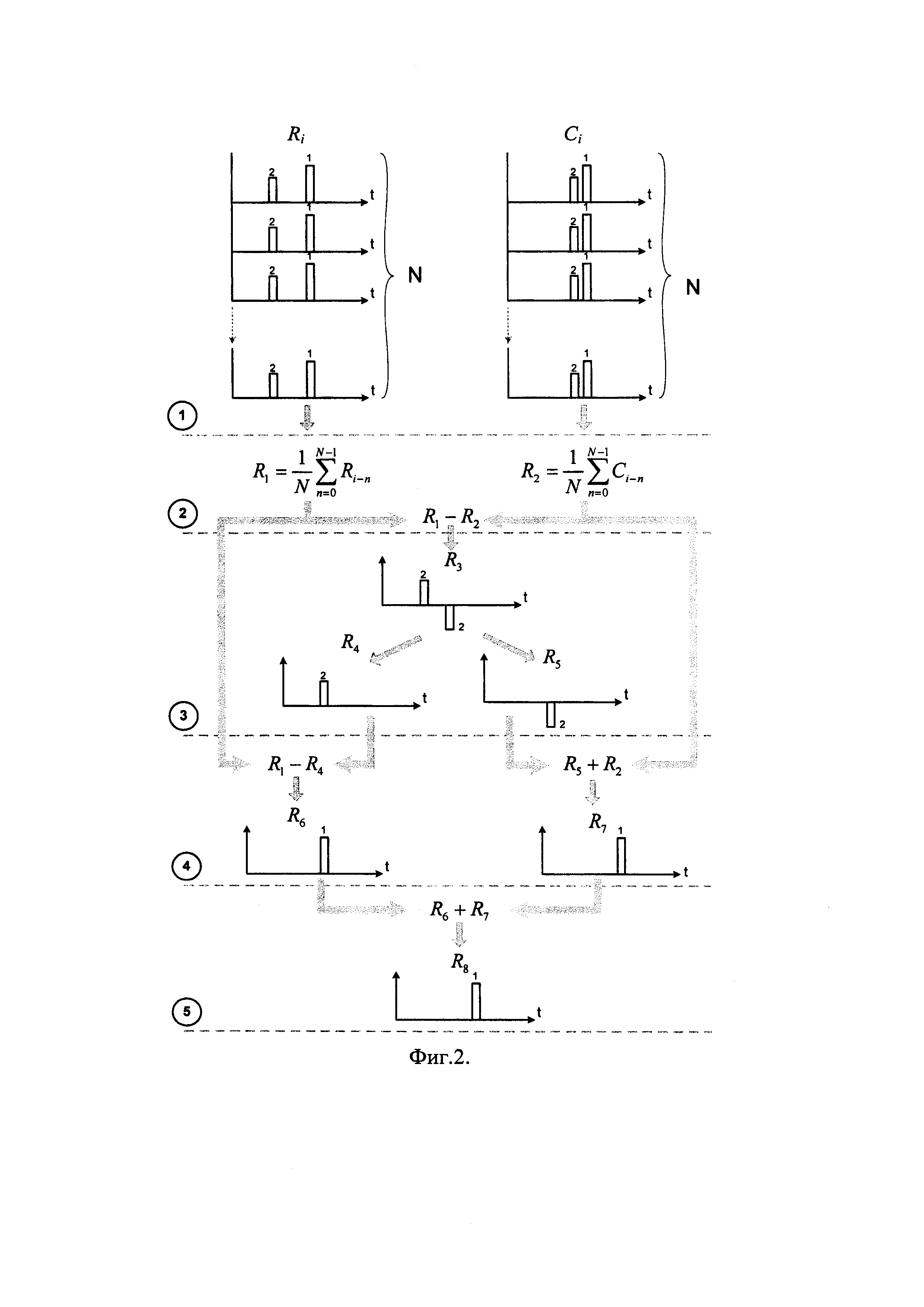 Изобретение относится к области активной радиолокации и предназначено для использования в обзорных радиолокационных станциях (РЛС). Достигаемый технический результат - подавление отметок от целей, расположенных за пределами зоны однозначной оценки дальности обзорной РЛС, а также отметок, обусловленных несинхронной импульсной помехой. Указанный результат достигается путем изменения периода повторения импульсного зондирующего сигнала на некоторую величину ±ΔТ и сравнительного анализа двух соседних реализаций амплитуды отраженного сигнала, при этом знак величины ΔT меняется от импульса к импульсу. 2 н.п. ф-лы, 4 ил.