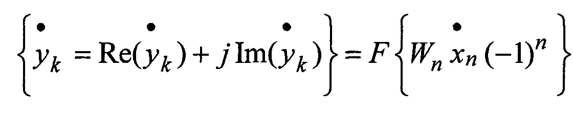 , накопленных в подпачках, обеспечивающее последующий сдвиг отсчетов суммарных сигналов, принимаемых моноимпульсной РЛС, в середину анализируемой частотной области (см. ниже);