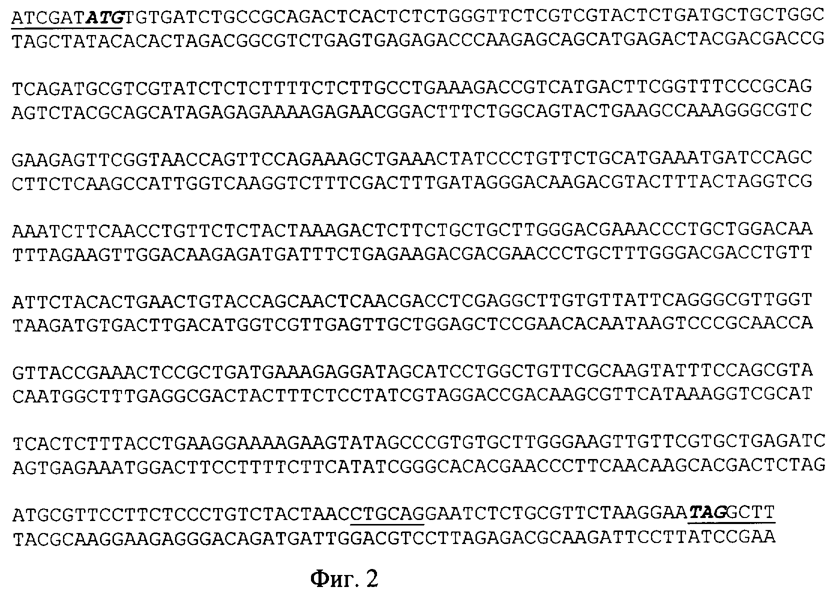 HindIII. Структуру клонированного гена в отобранных клонах подтверждают определением нуклеотидной последовательности с использованием набора Cycle ReaderTM DNA Sequencing Kit (Fermentas, Литва), как
